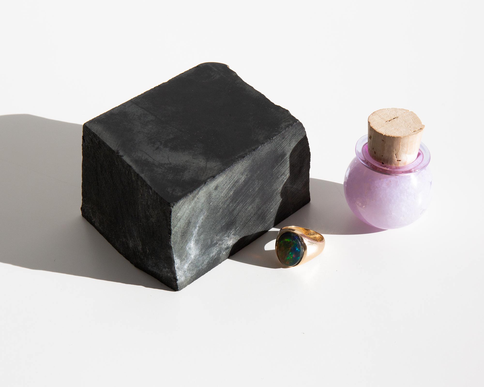 A large piece of cut natural black jade. Place on a bedside table or as an ornament around the house to harness the energy associated with jade. For centuries the stone has been used as a talisman of good luck and to dispel negative energy and bring about increased self awareness. Also thought to bring calm to chaos, jade can be placed on a desk or in places of higher stress because some say stroking a piece of jade can help to soothe frayed nerves and bring about more peaceful respiration.
