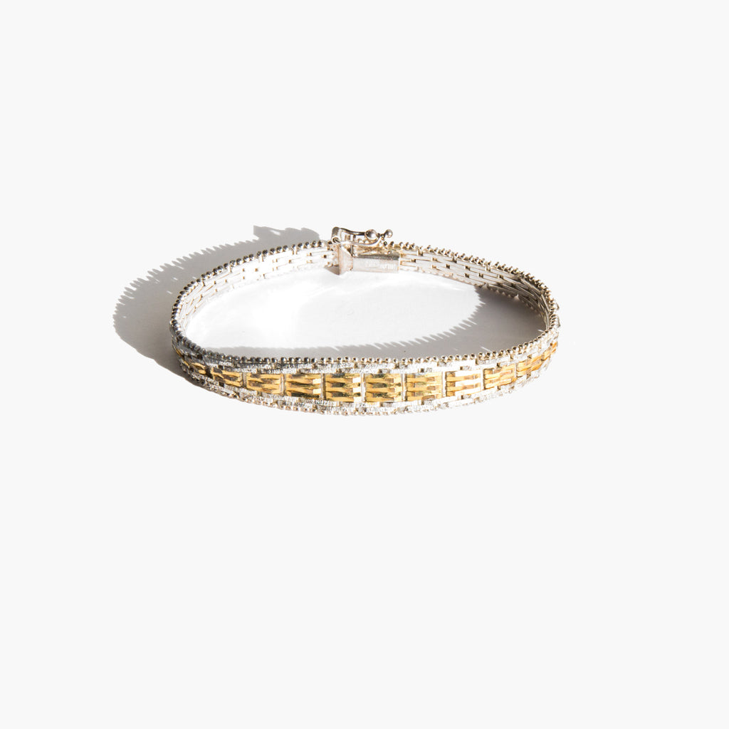 Two-tone sterling silver chain bracelet.