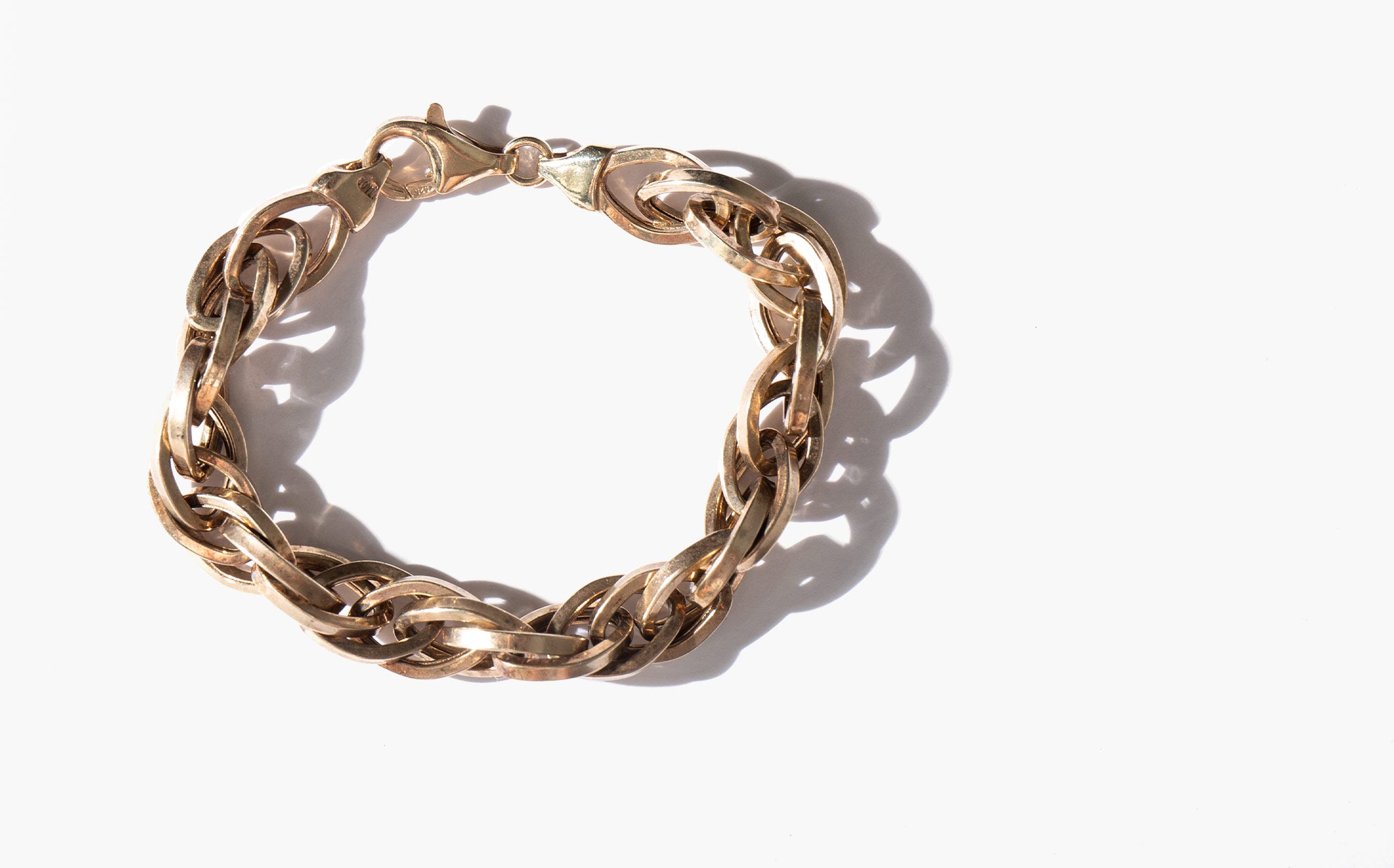 Striking, lightweight gold plated sterling silver link bracelet, made in Italy.