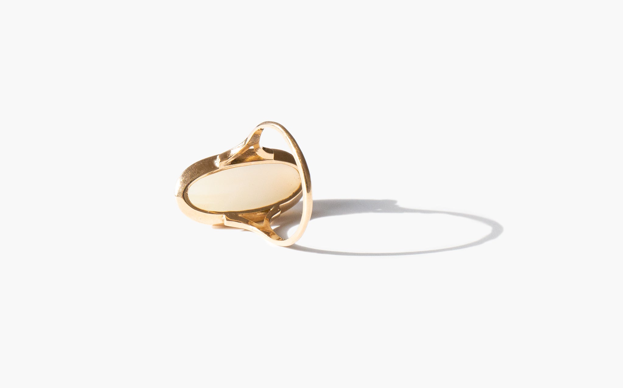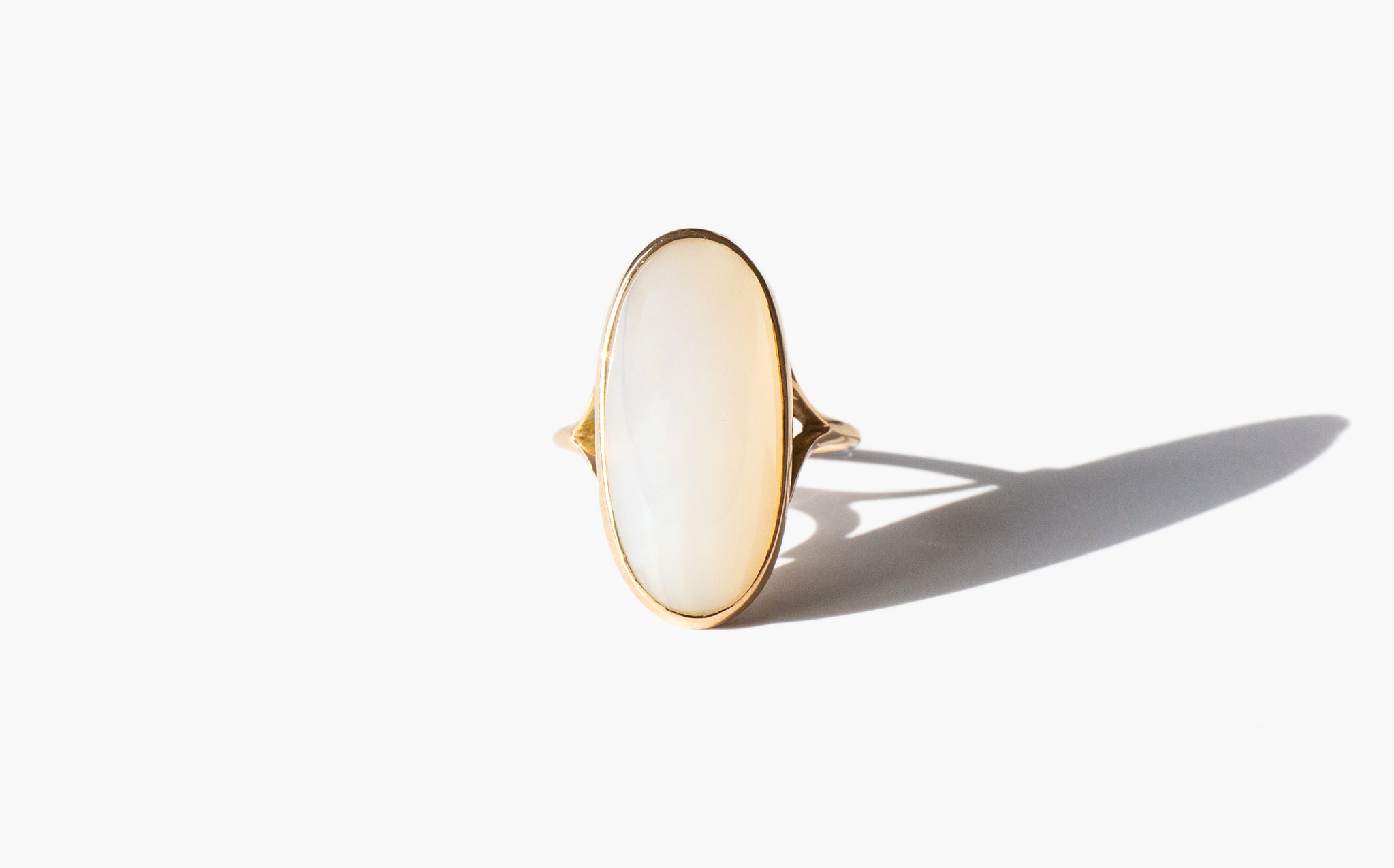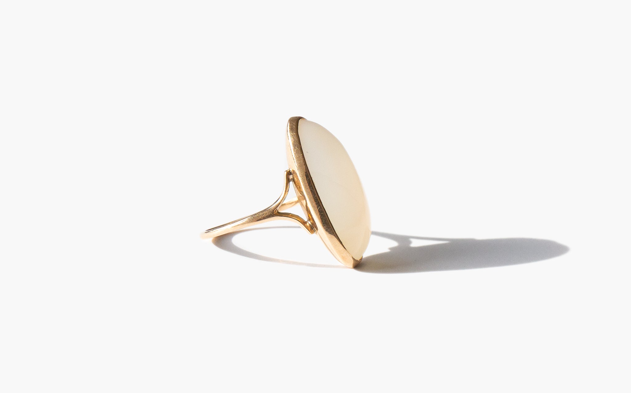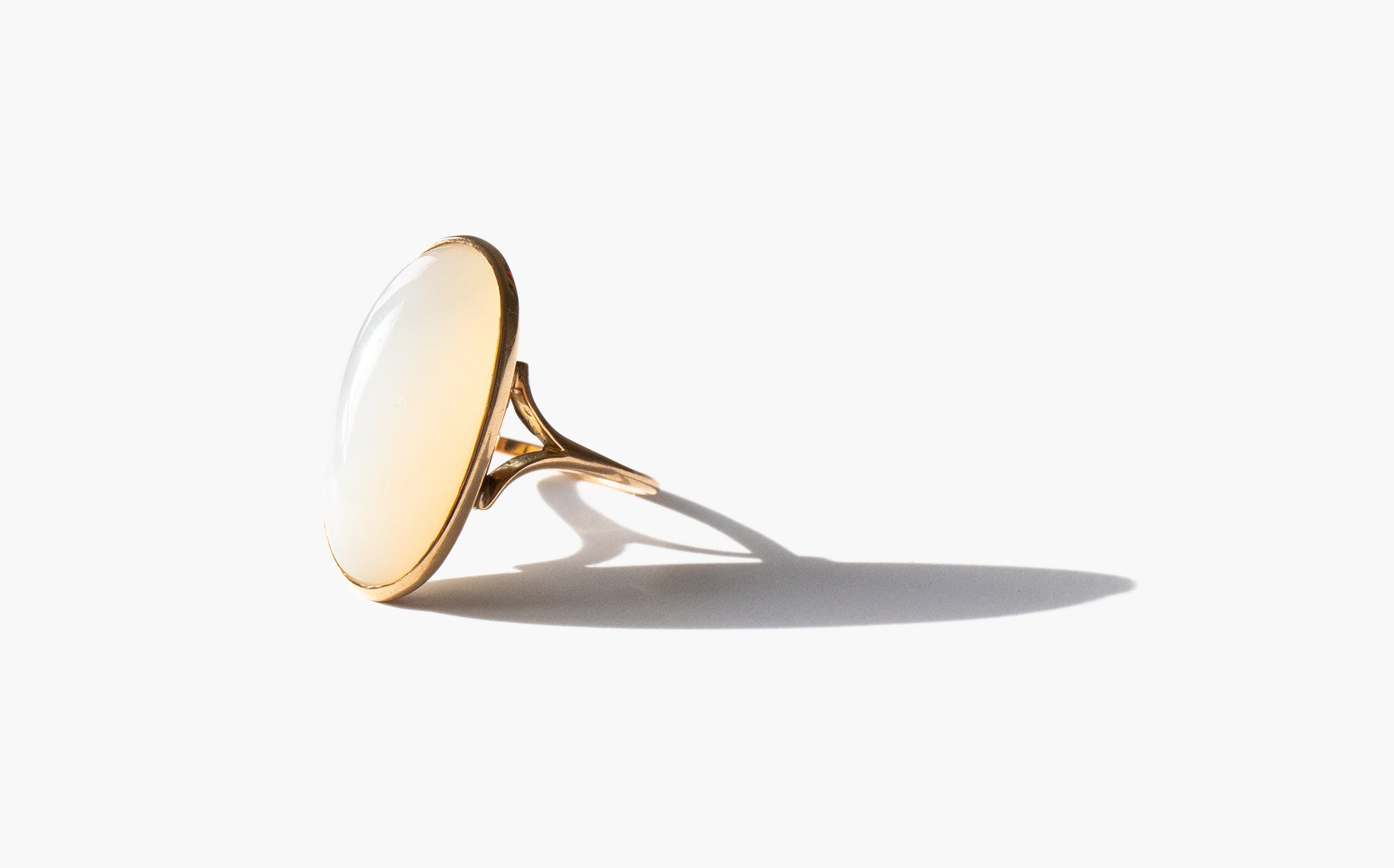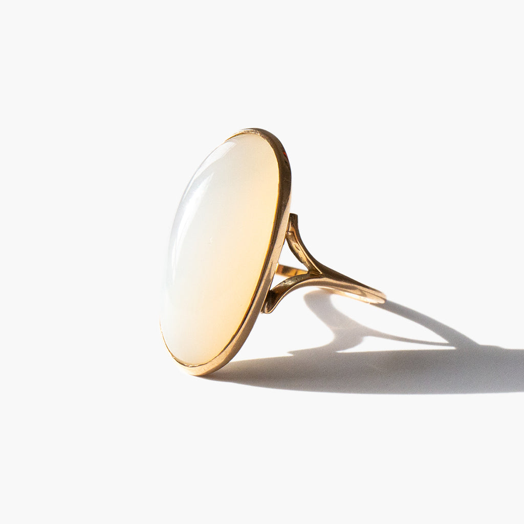 Simple, elegant white agate stone set in 14k gold. Agate is known to be a powerful protector and is associated with strength and courage.