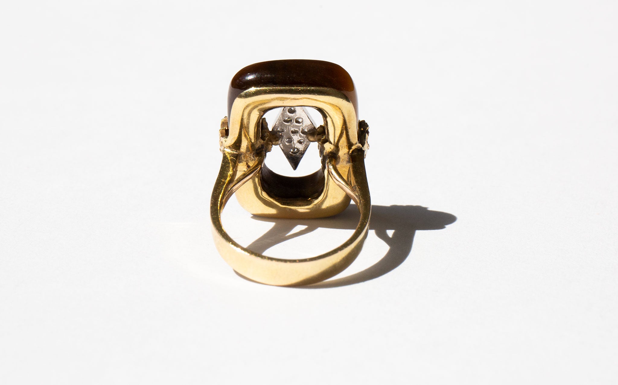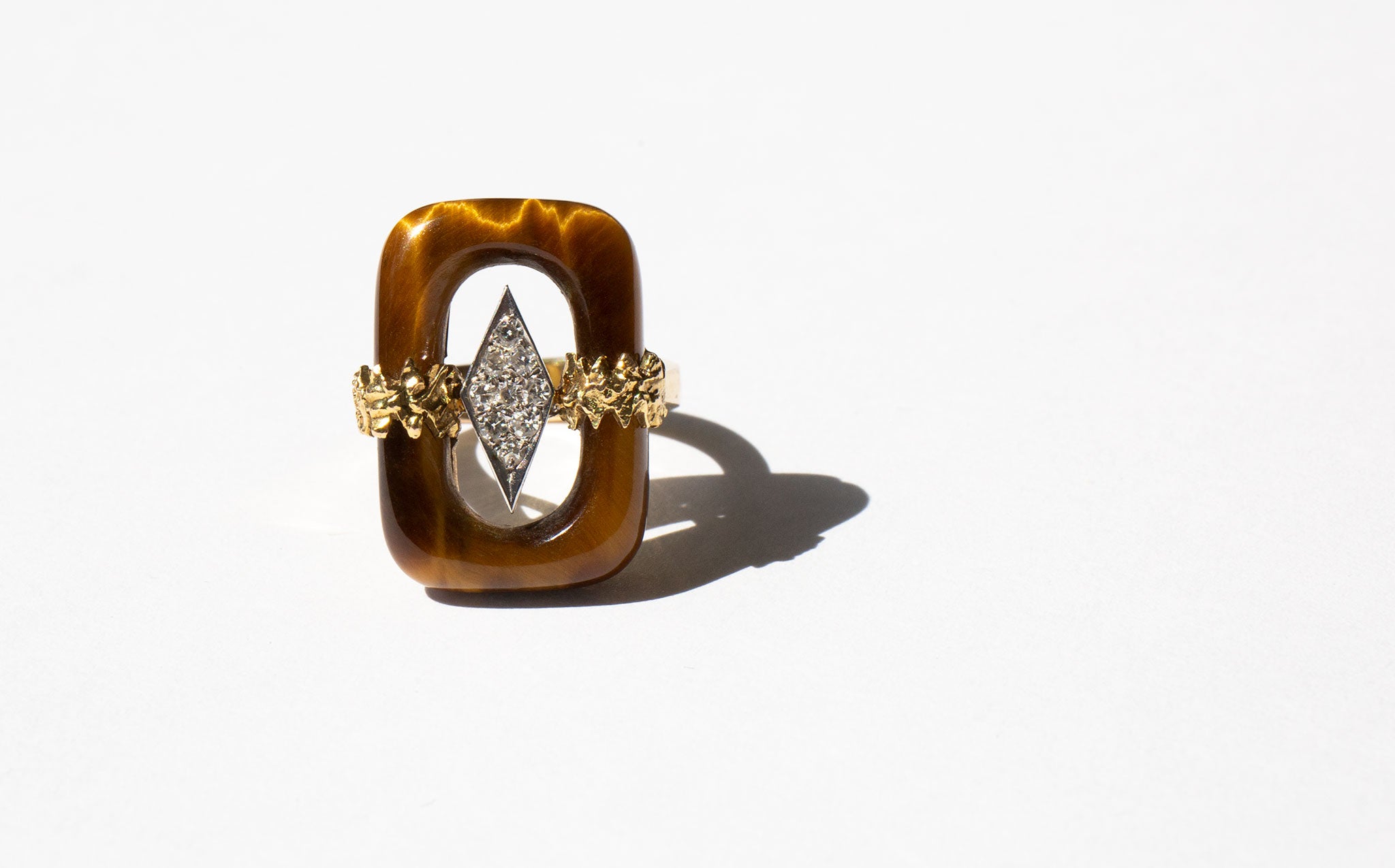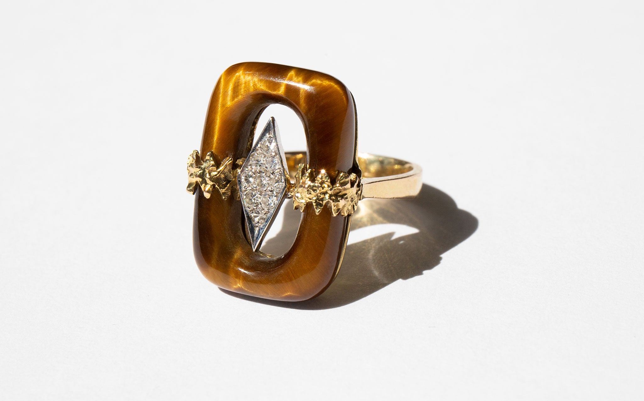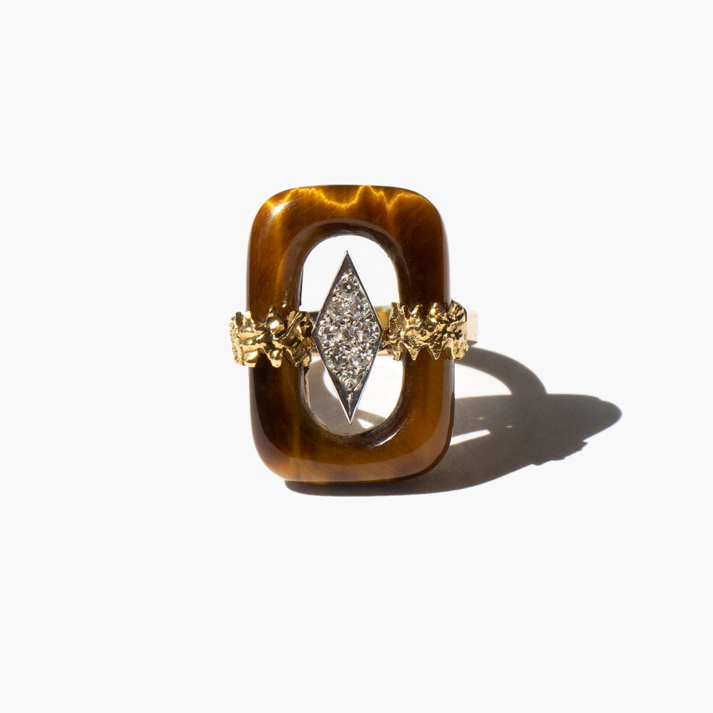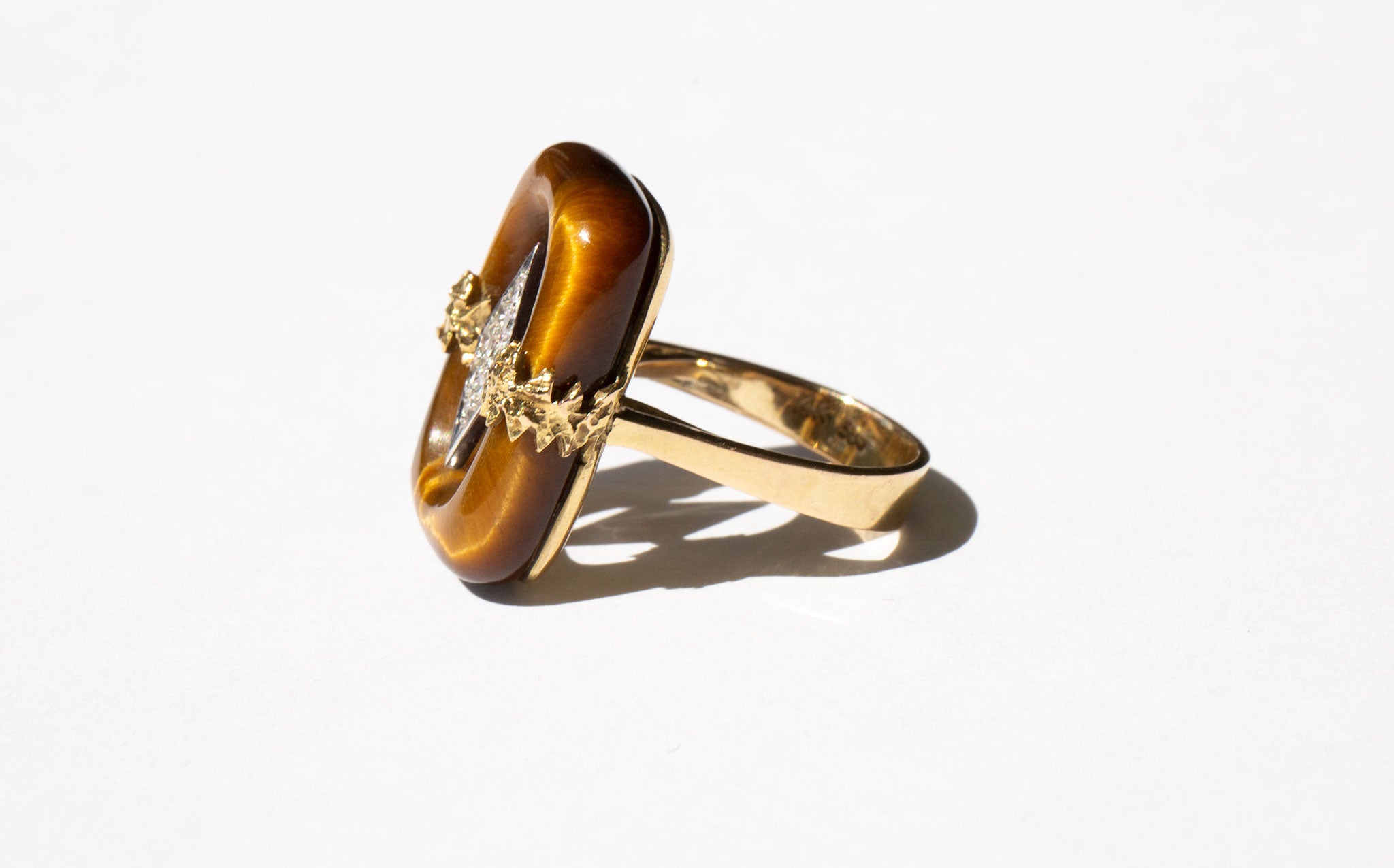 Mid-century 14k gold, tiger's eye, and diamond ring.