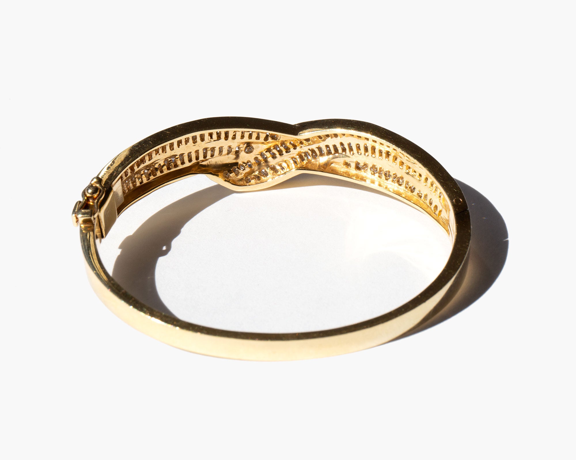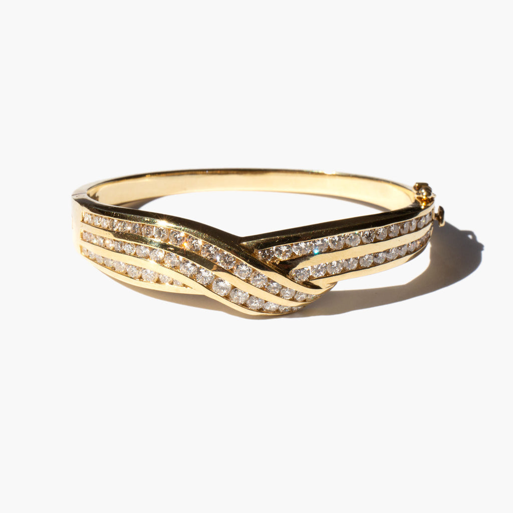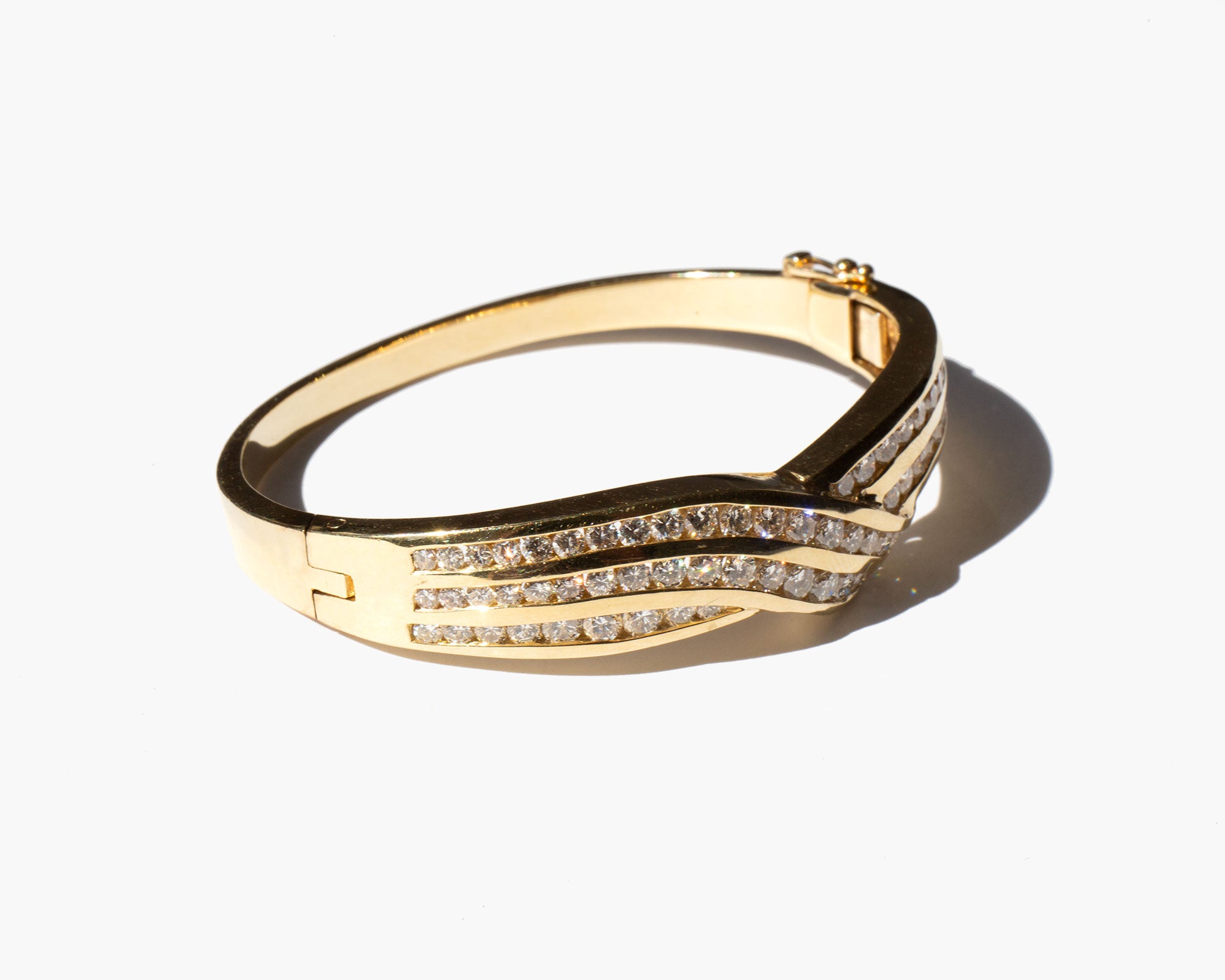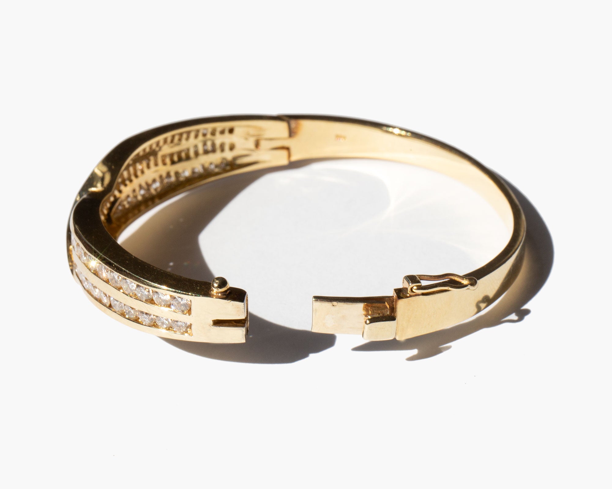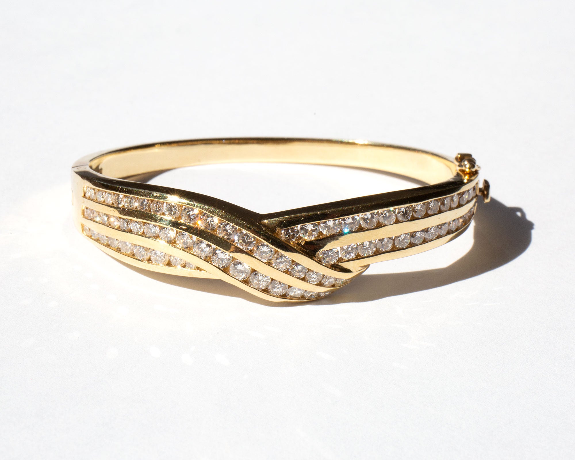 Ravishing and weighty 14k gold bracelet studded with 4 carats of shimmering diamonds.