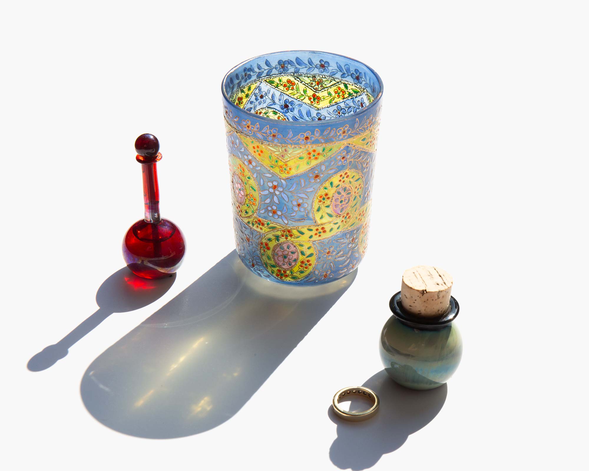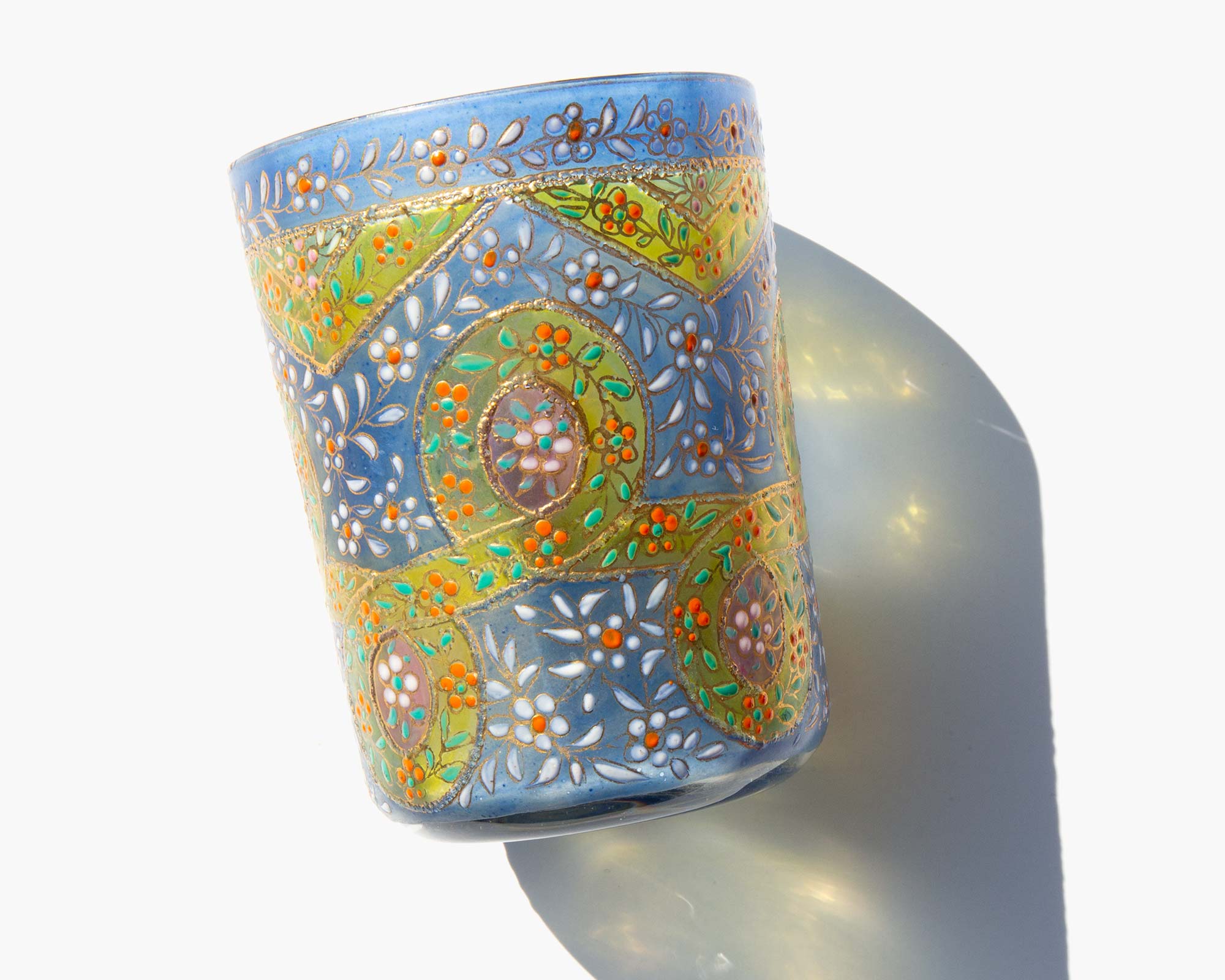 Hand painted Russian enameled vanity tumbler.