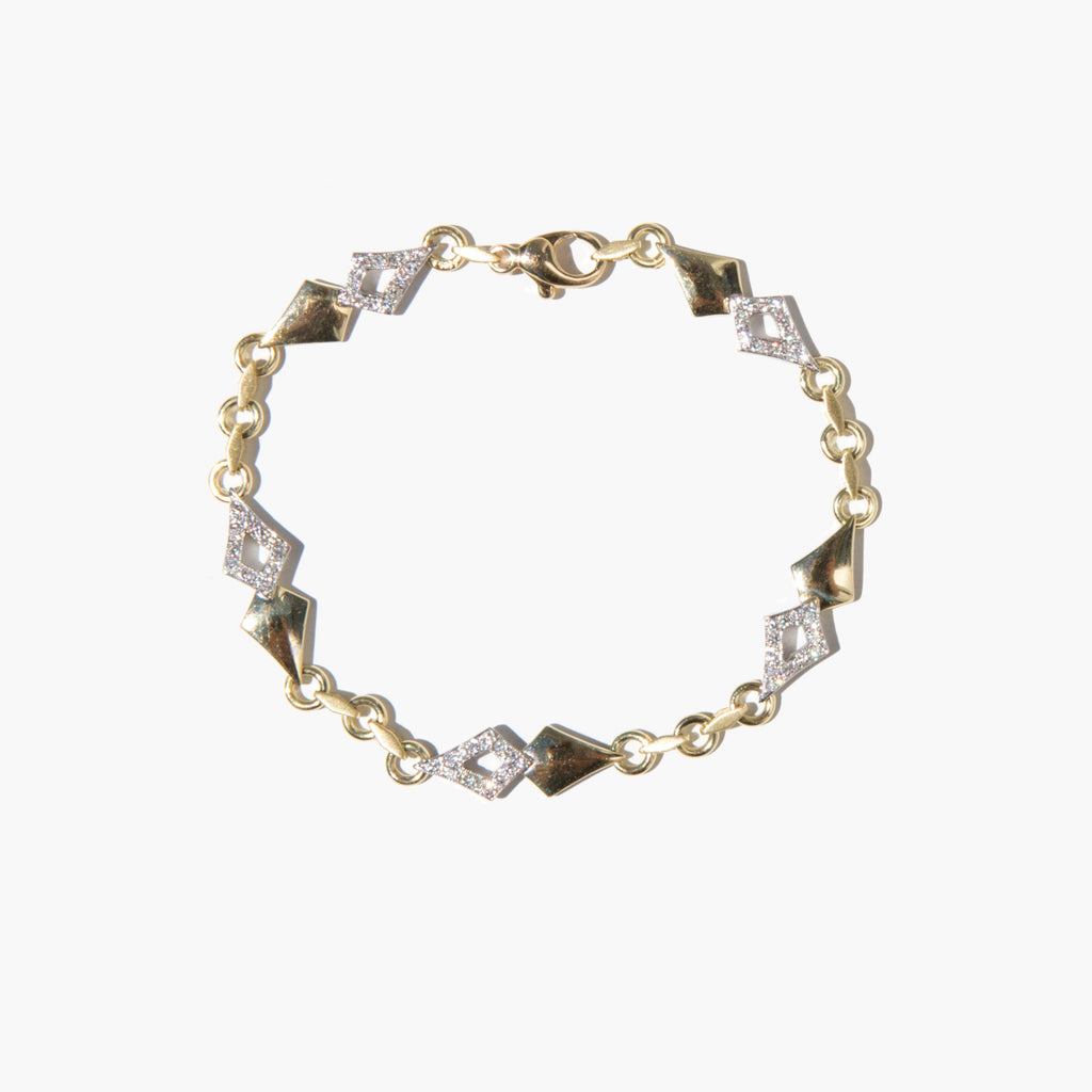 Geometric 14k gold and diamond link bracelet with a total of 1ct of diamonds.