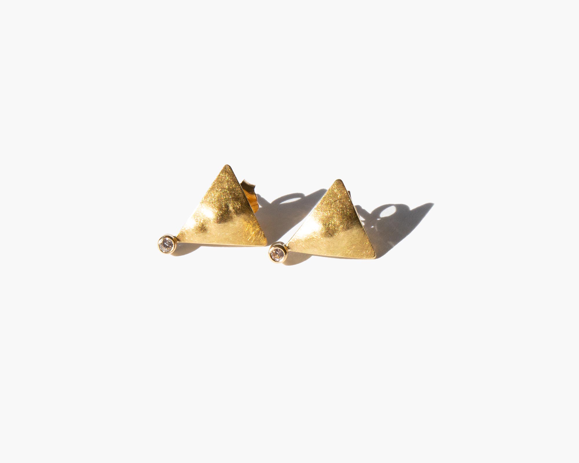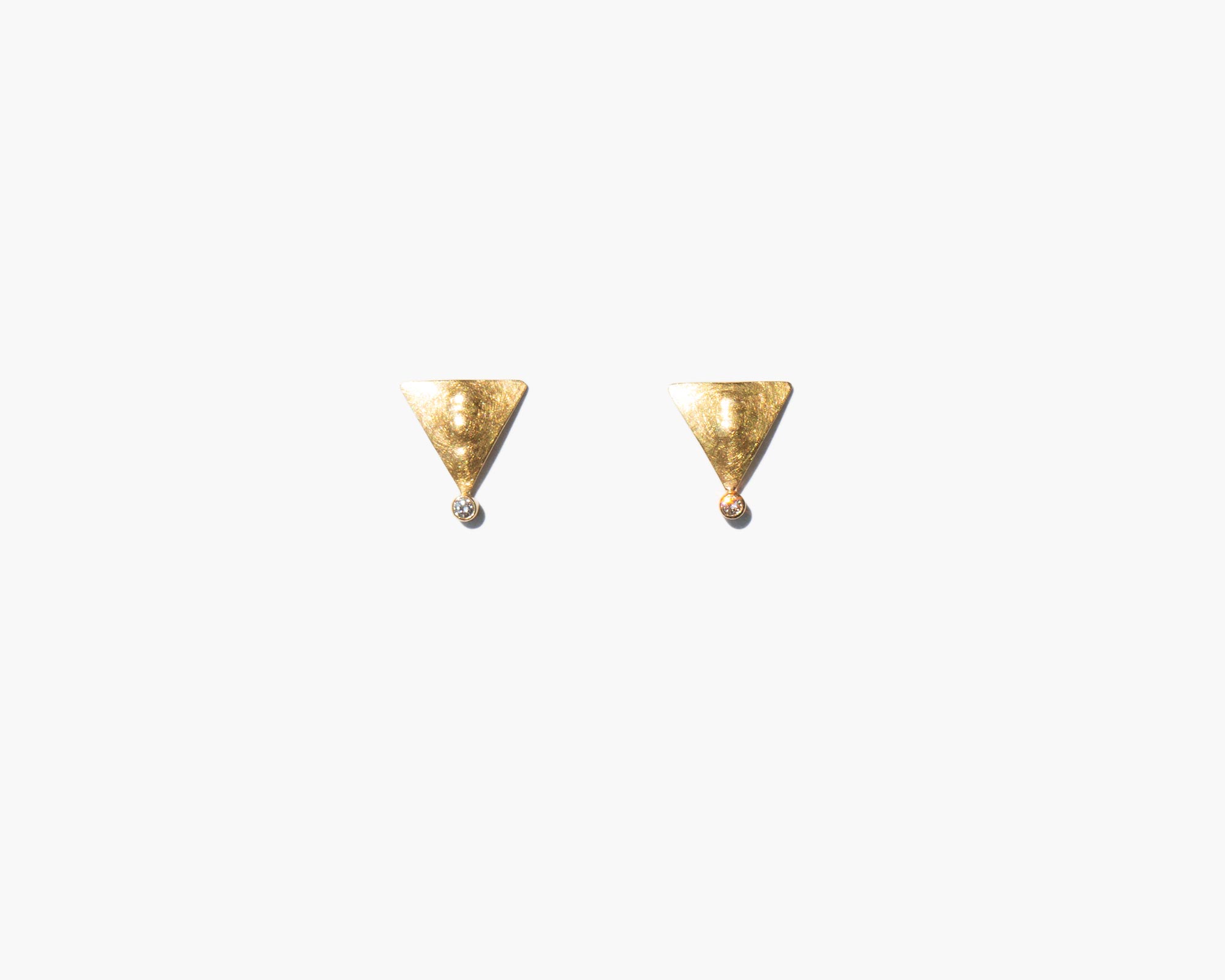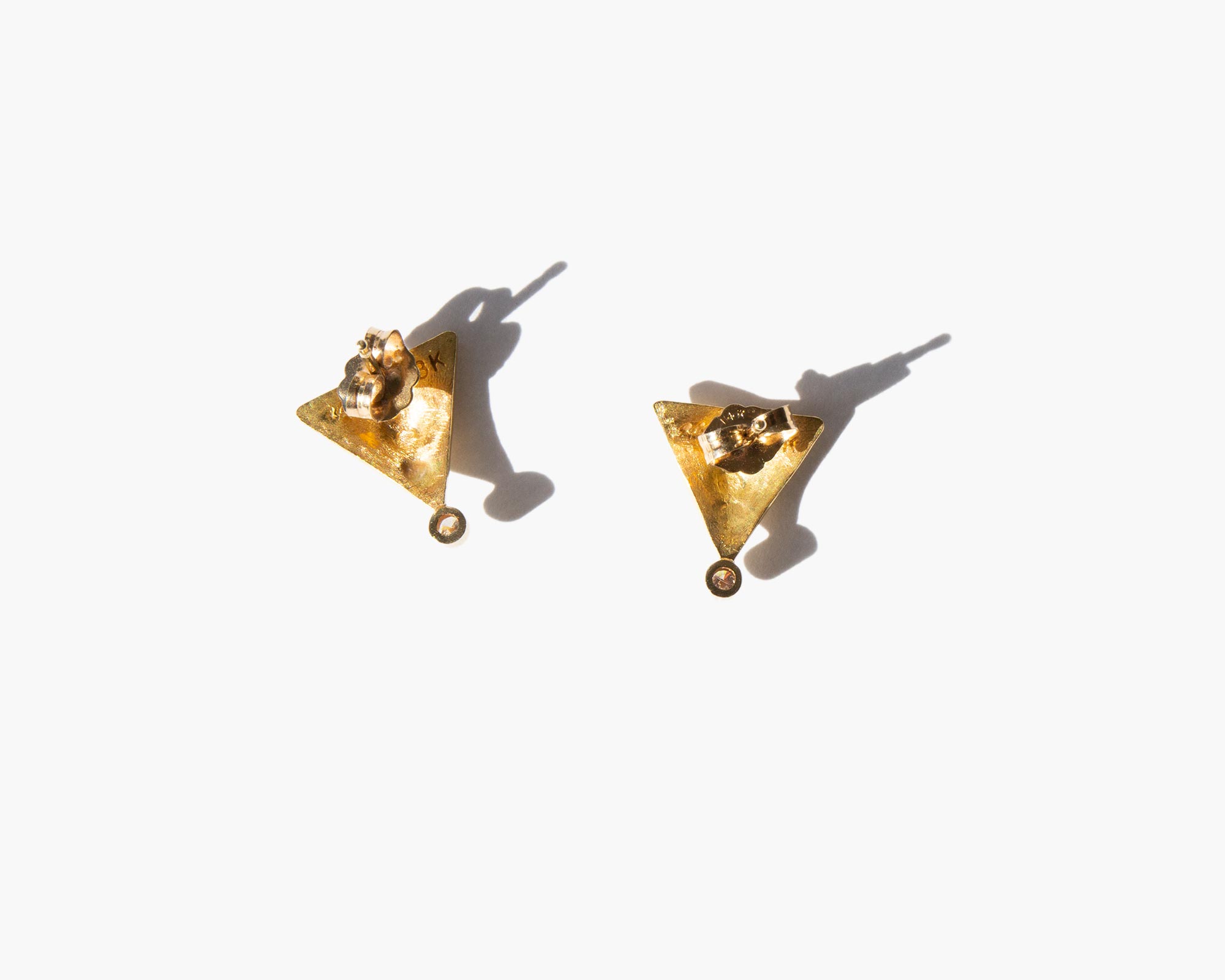 Handmade 1980's 14k and 18k gold artisan crafted earrings with small diamond accents.