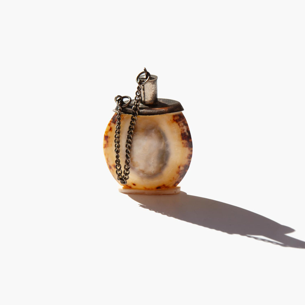 Antique seashell chatelaine perfume bottle.