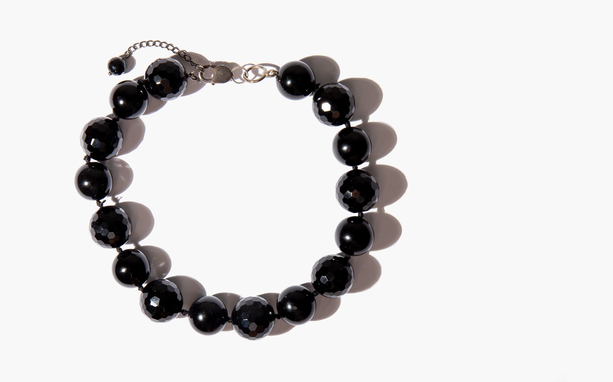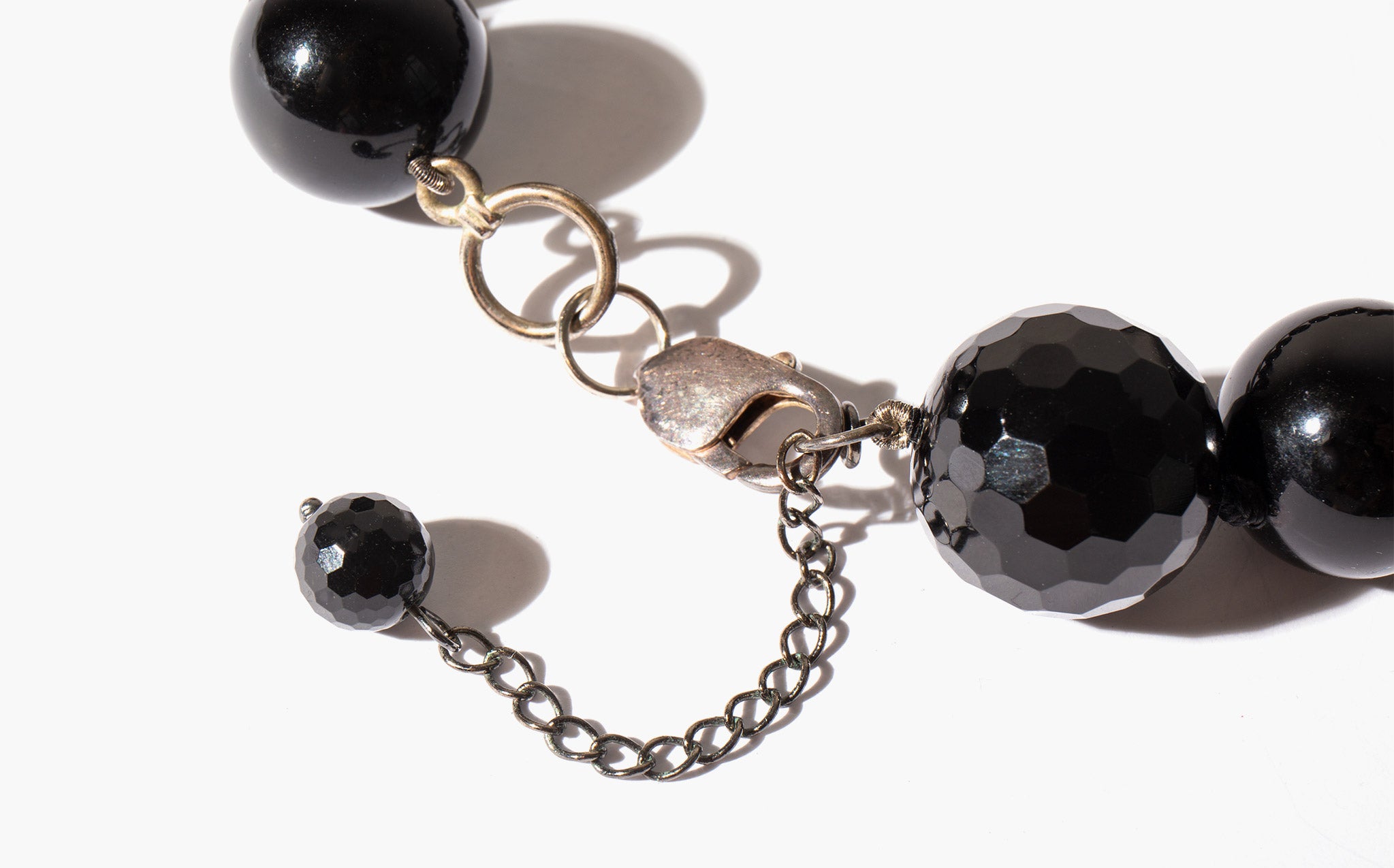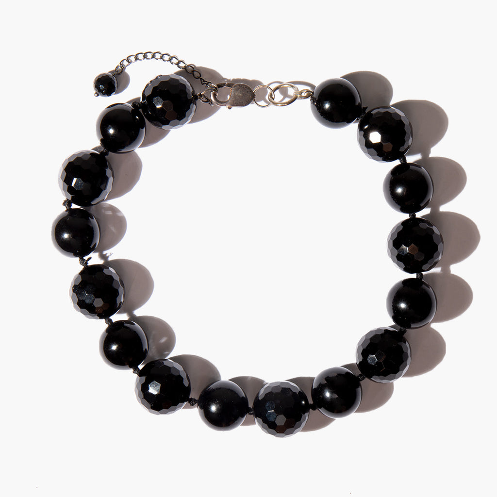 Ravishing choker of raven black glass beads with a sterling silver closure.