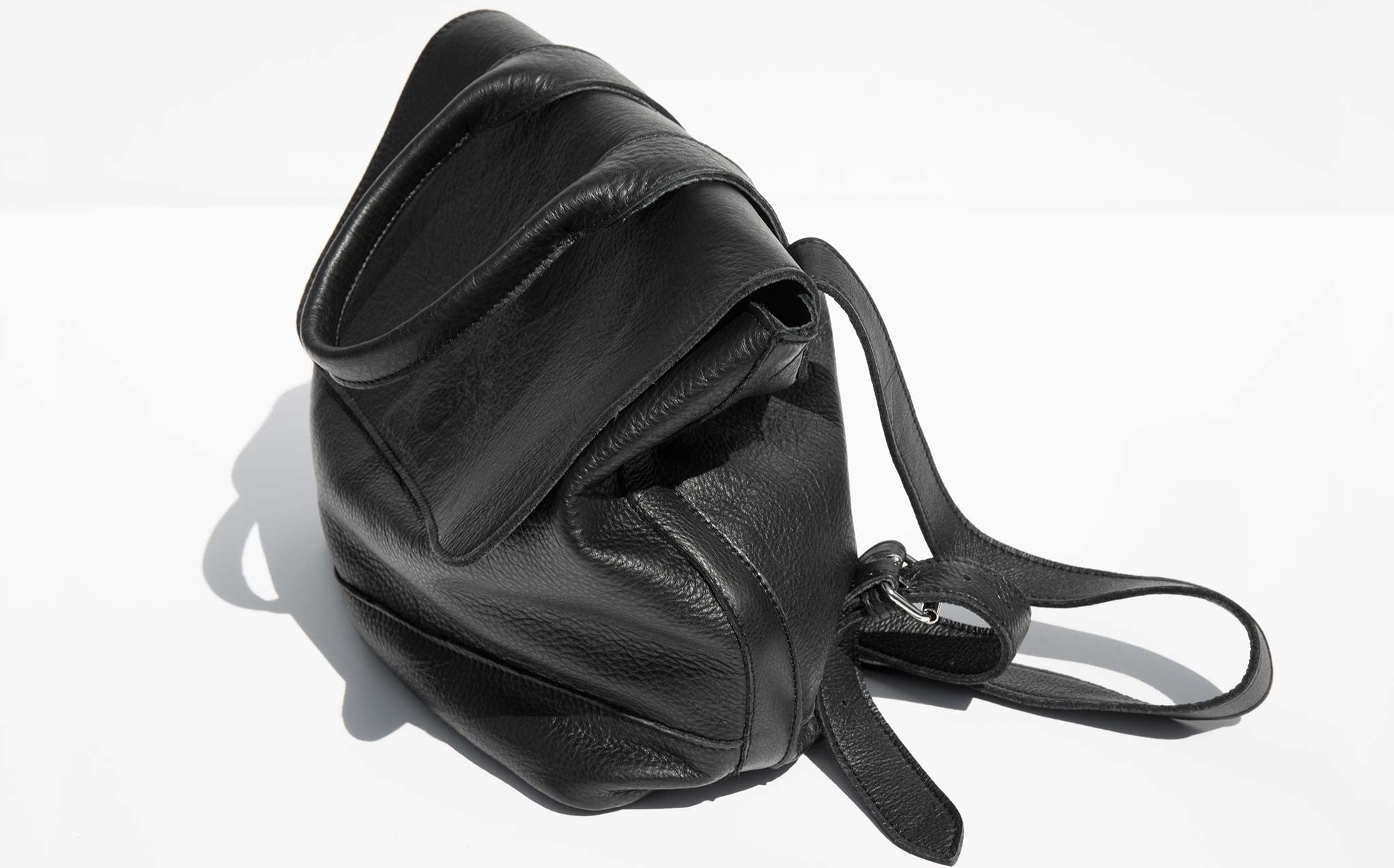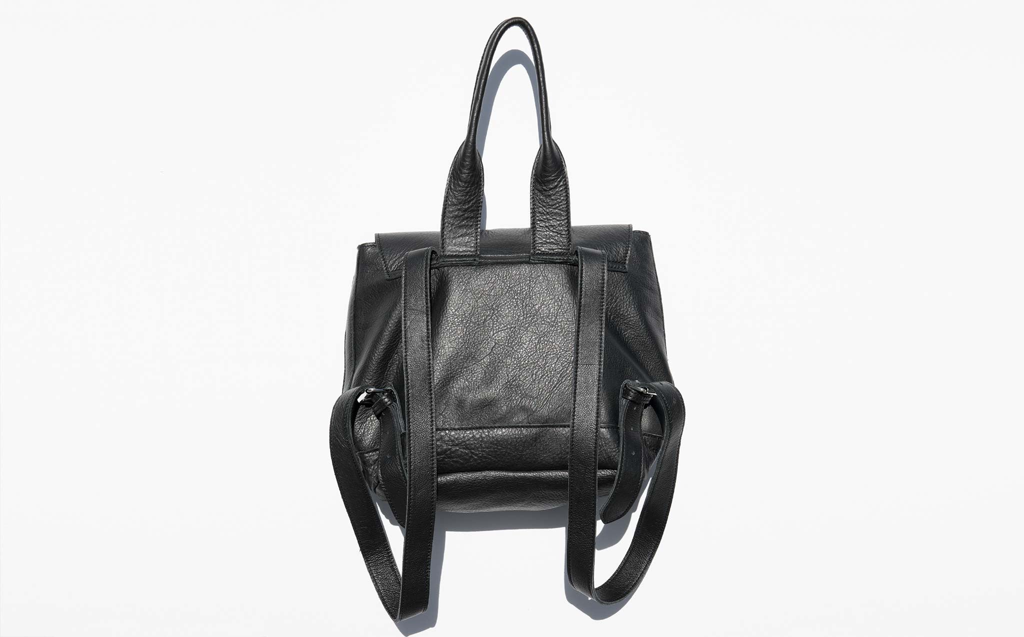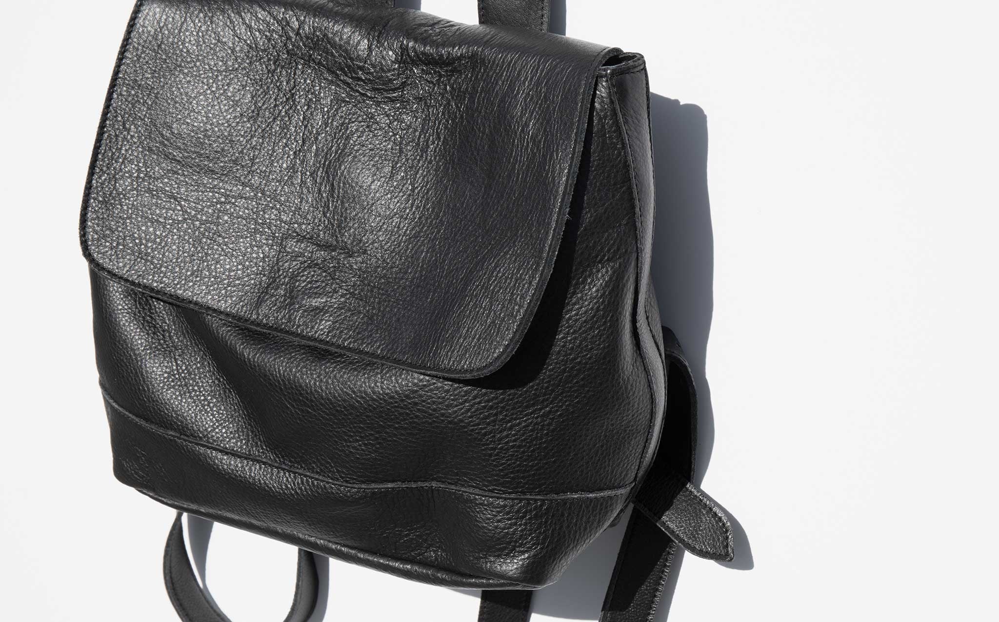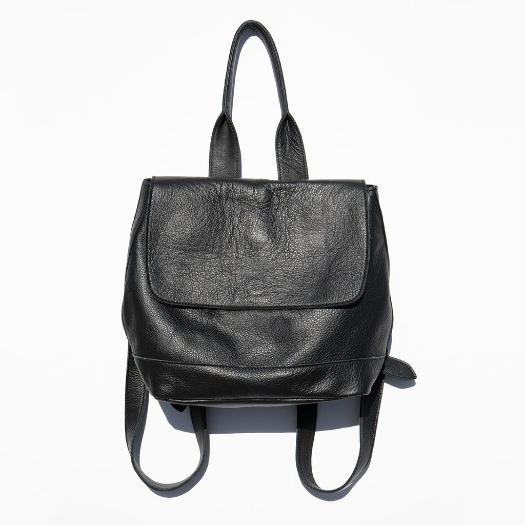 Mini leather backpack with cotton lining and adjustable back straps. The Clyde Small Room Backpack can also be worn as a tote with the roomy drop of the top handle.