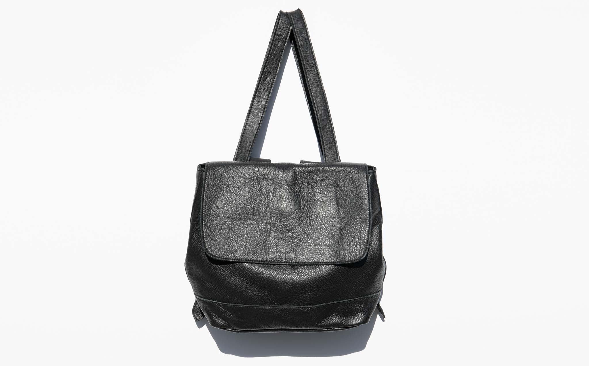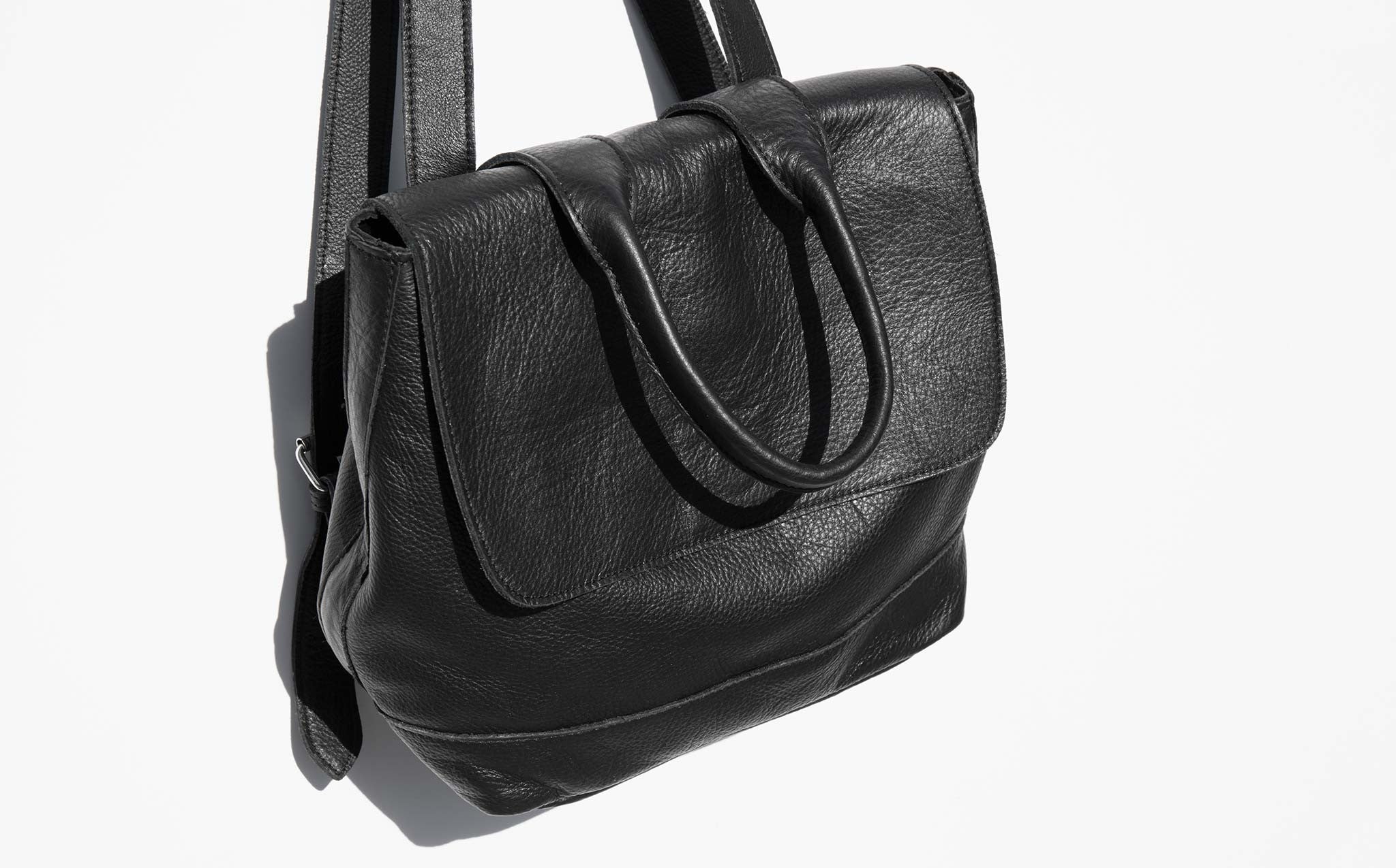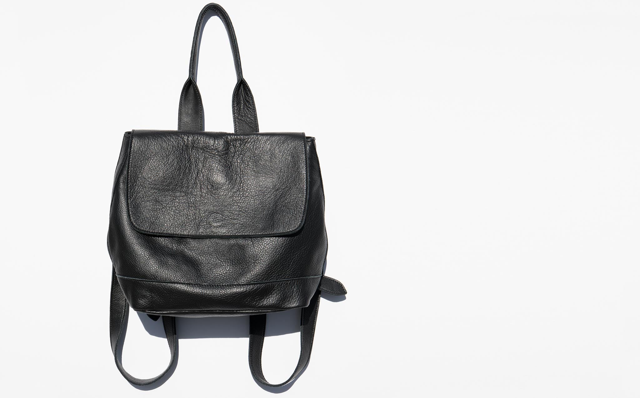 Mini leather backpack with cotton lining and adjustable back straps. The Clyde Small Room Backpack can also be worn as a tote with the roomy drop of the top handle.