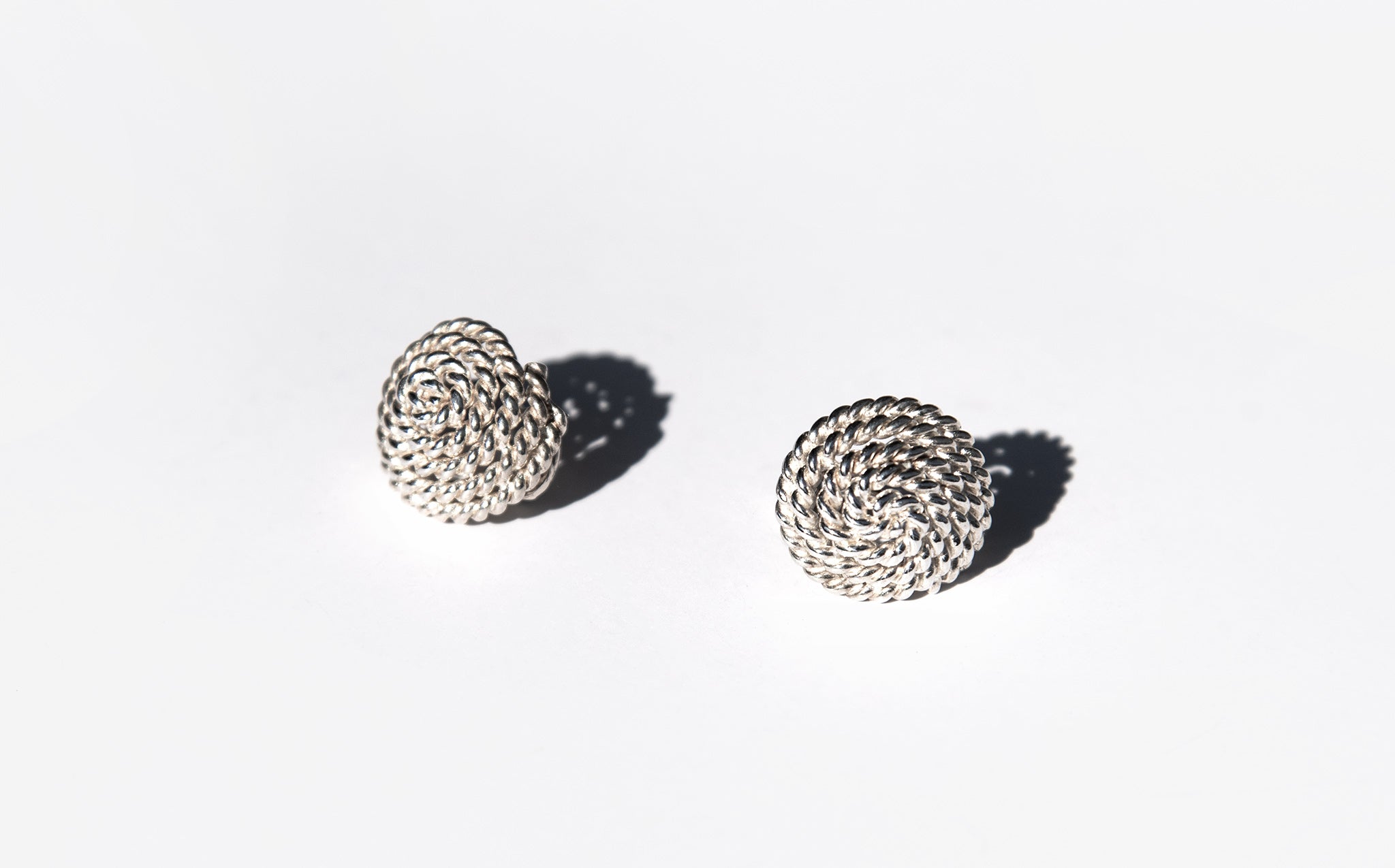 Sterling silver coiled stud earrings.