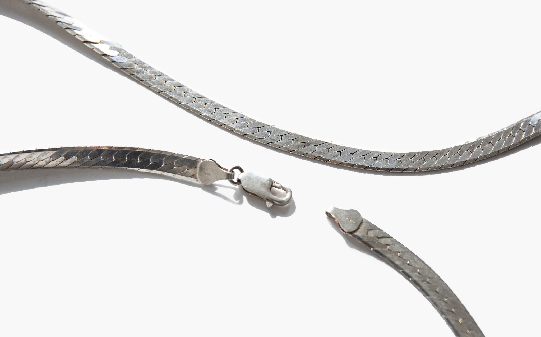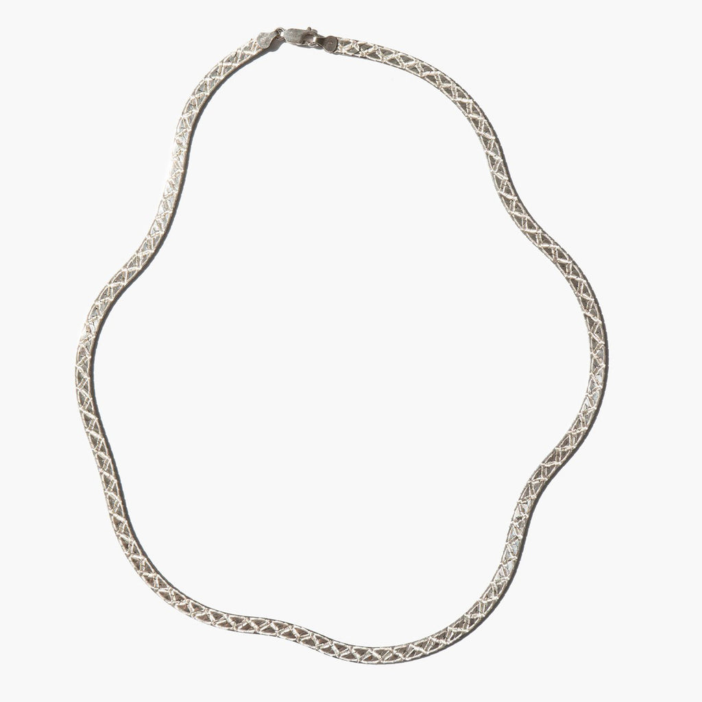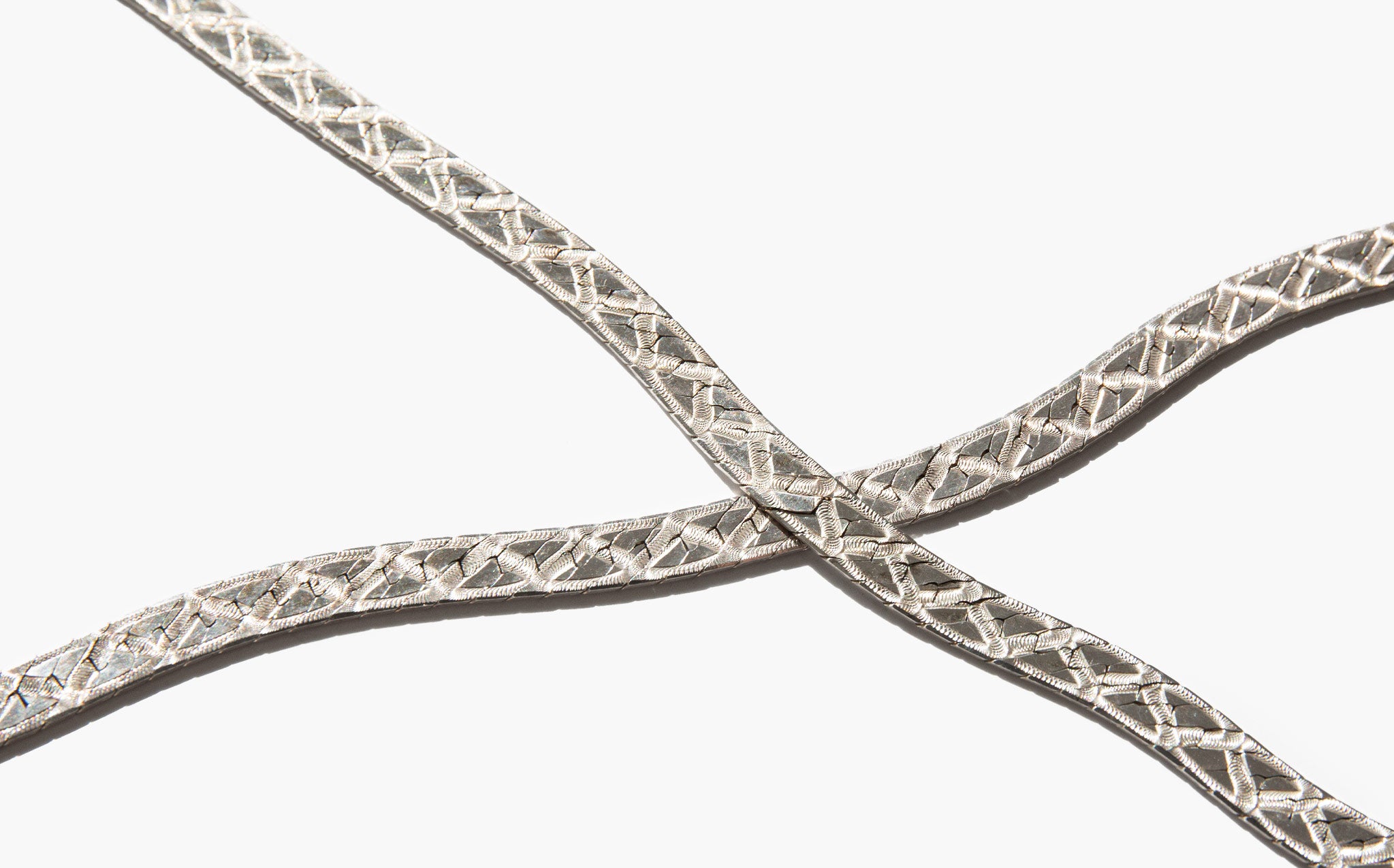 Striking and thick Italian sterling silver herringbone chain with geometric detailing. A chic piece worn alone and perfect for layering with other chains.