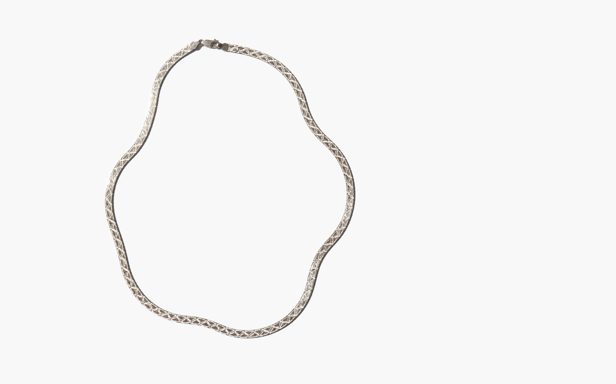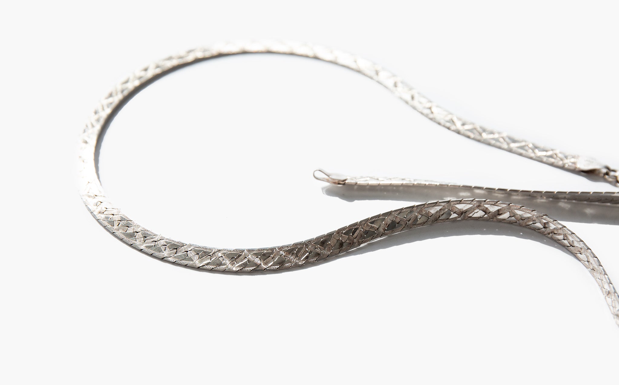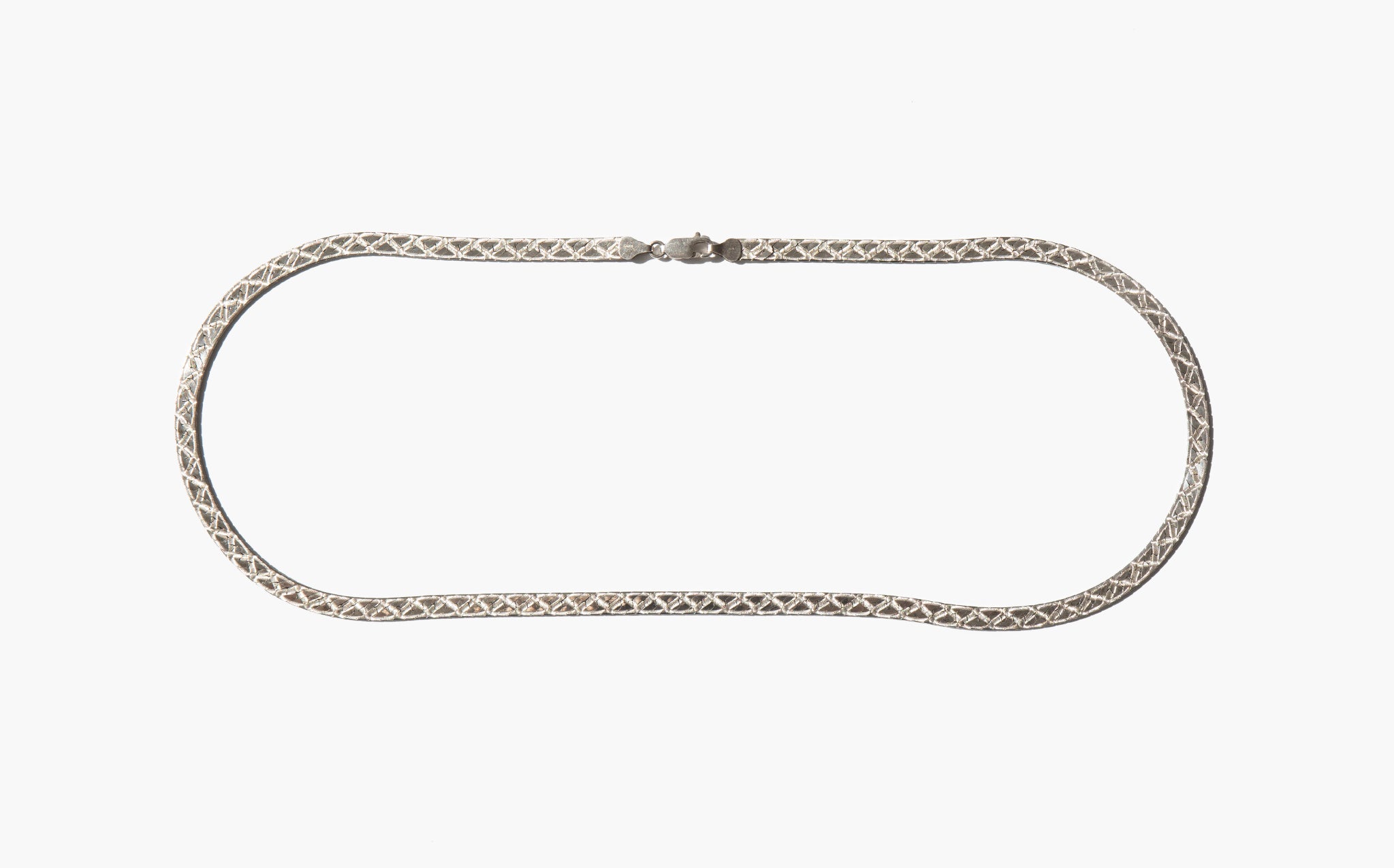 Striking and thick Italian sterling silver herringbone chain with geometric detailing. A chic piece worn alone and perfect for layering with other chains.