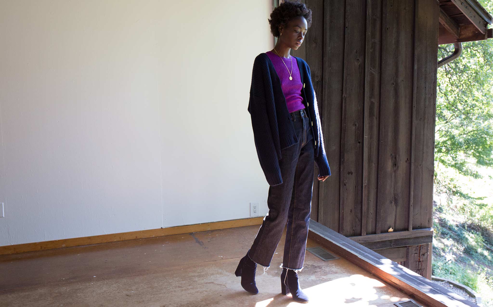 The Creatures of Comfort Boxy Cashmere Cardigan is an oversized, long sleeved, v-neck sweater made with fine cashmere wool. A generous, boxy fit, size x-small will fit XS-M and size small will fit sizes S-L, depending on how oversized you'd like it.
