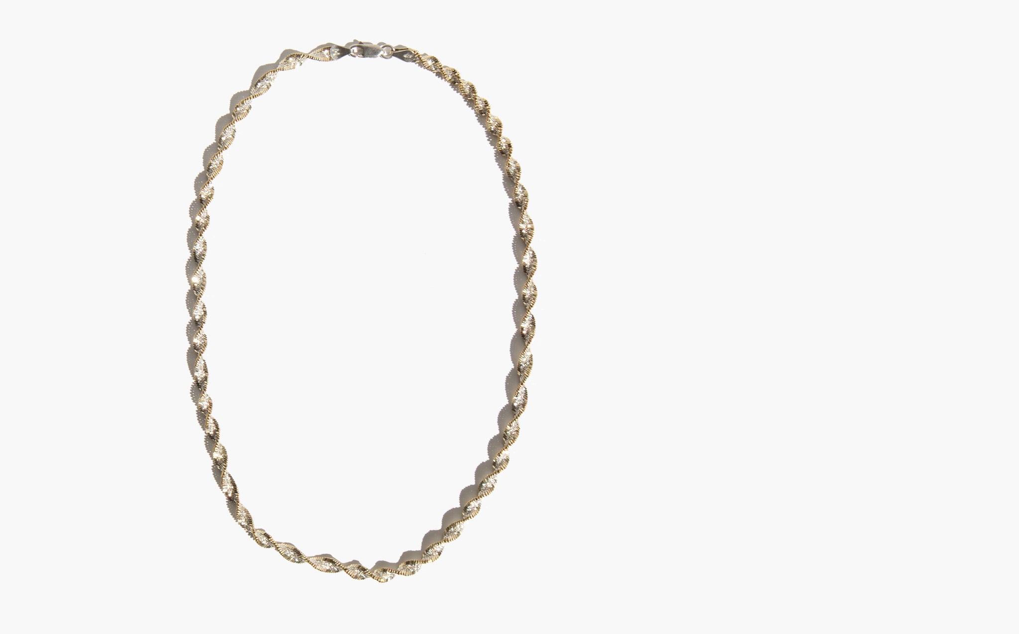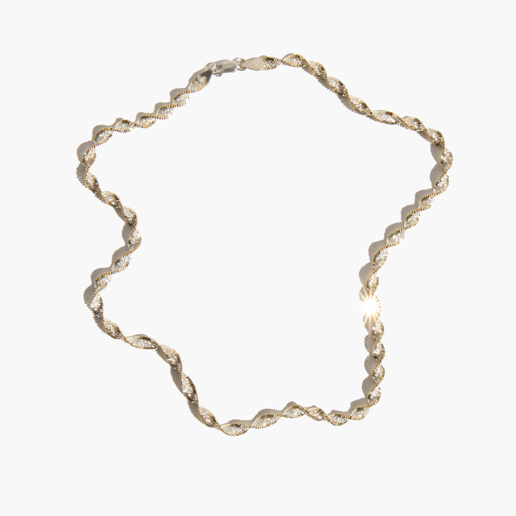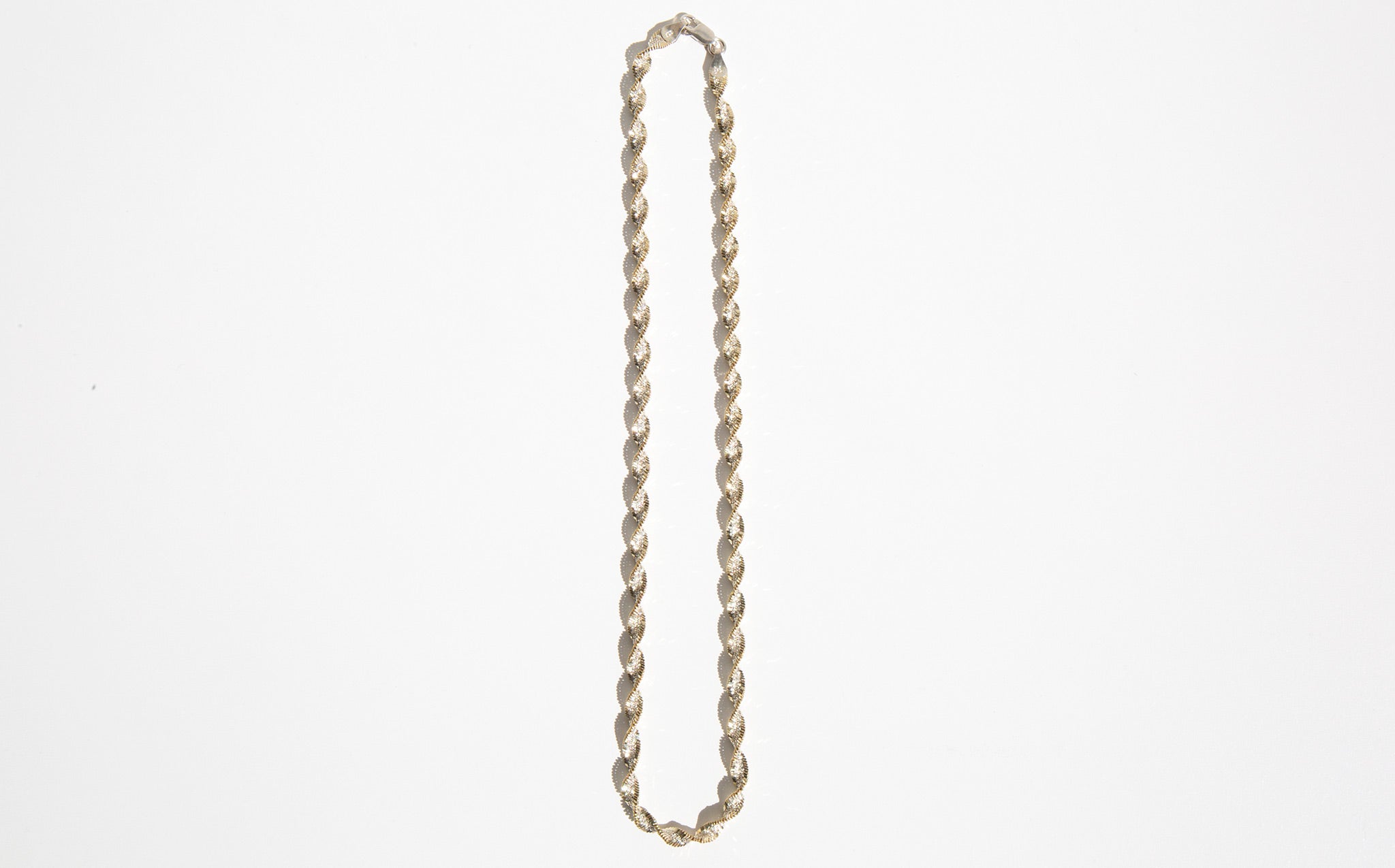 Strikingly sparkly, sterling silver rope chain with gold tone detailing – a perfect, eye catching accent worn alone and a fantastic layering piece for both gold and silver.