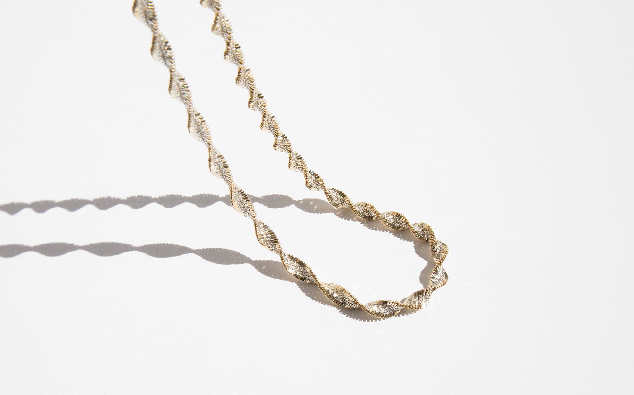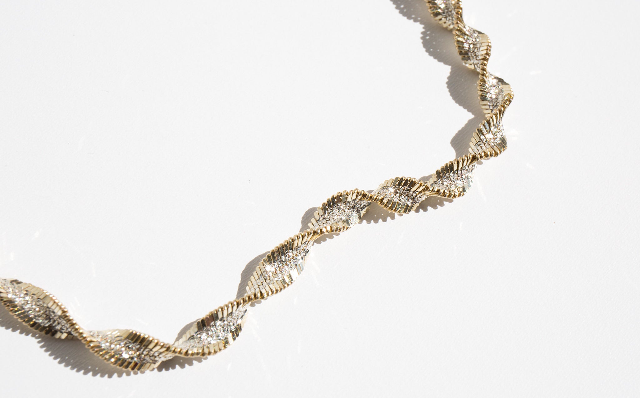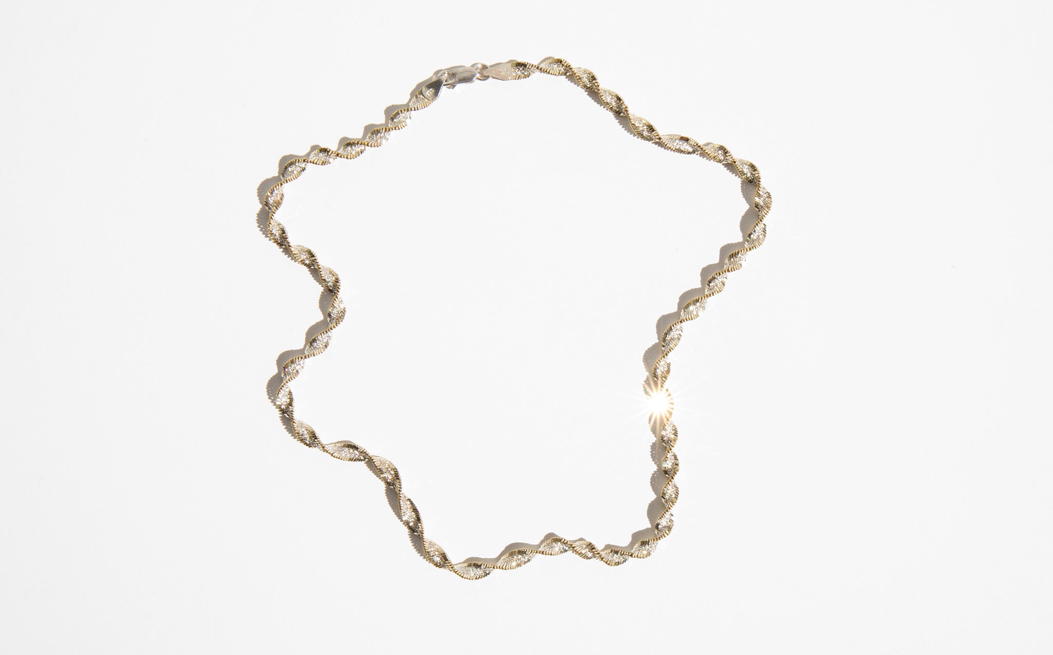 Strikingly sparkly, sterling silver rope chain with gold tone detailing – a perfect, eye catching accent worn alone and a fantastic layering piece for both gold and silver.
