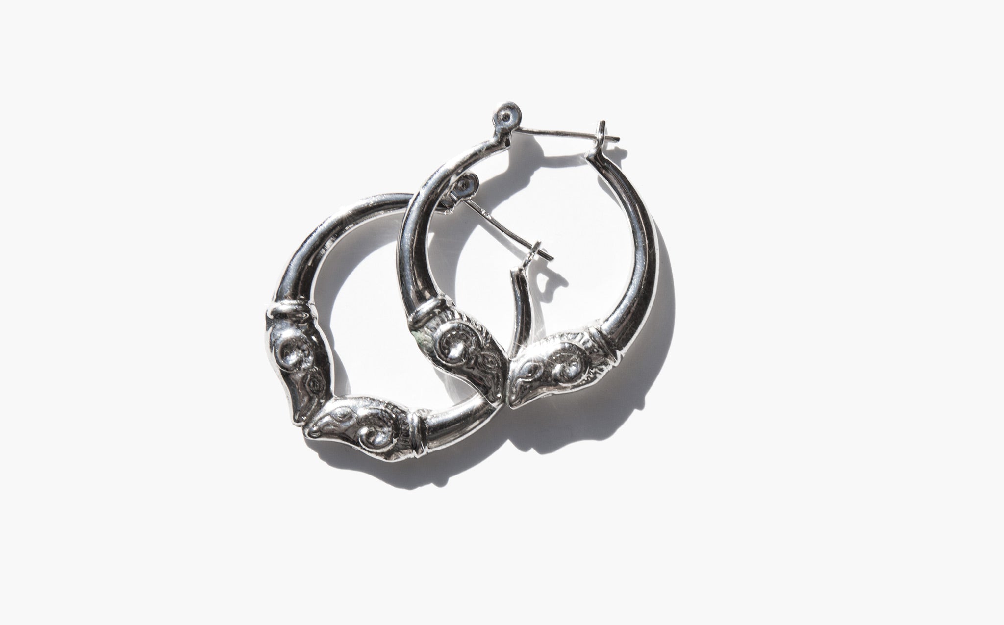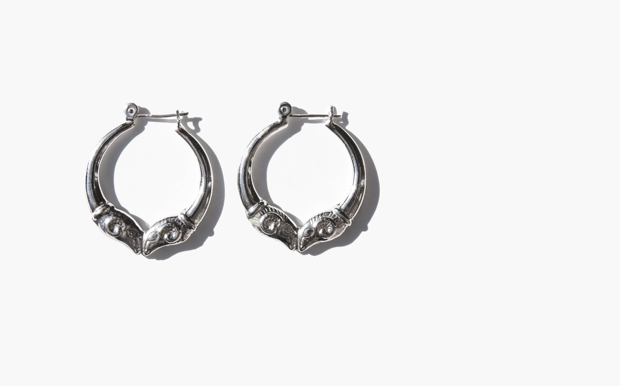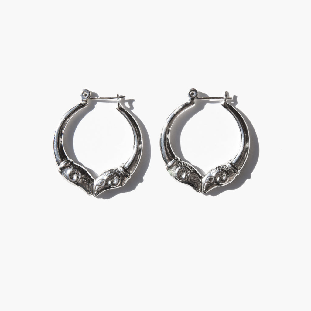 Sterling silver double rams head earrings – symbols of leadership and strength since ancient times.