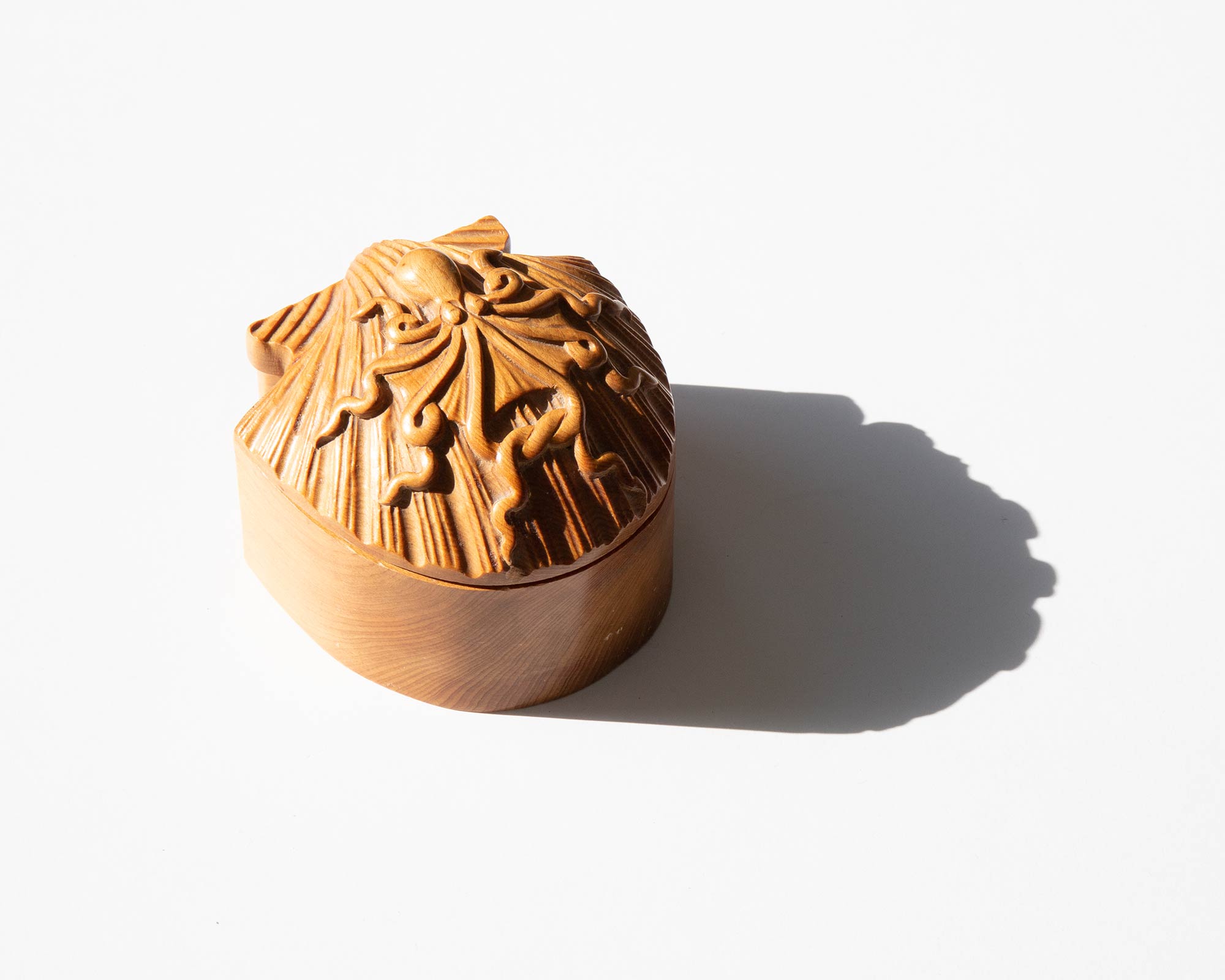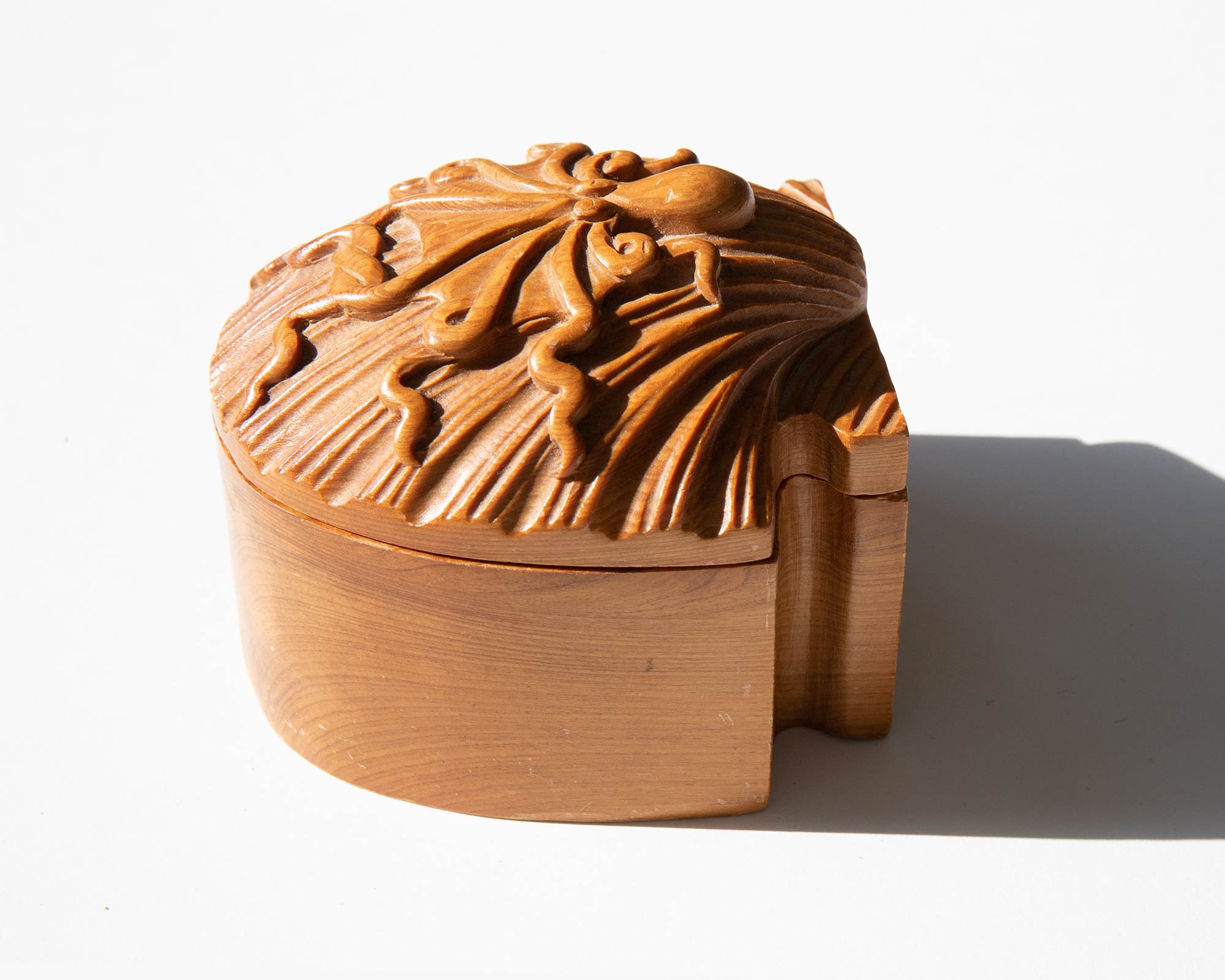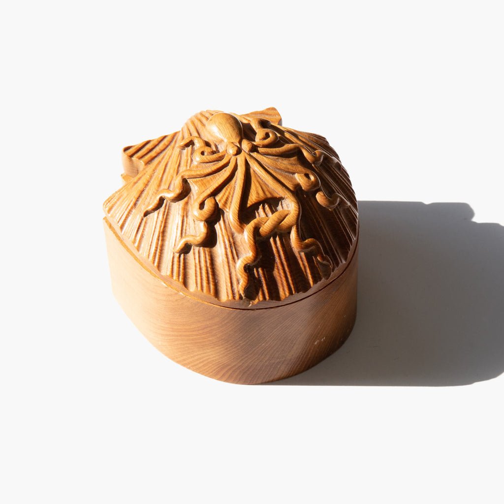 1970's carved wooden shell and octopus box.