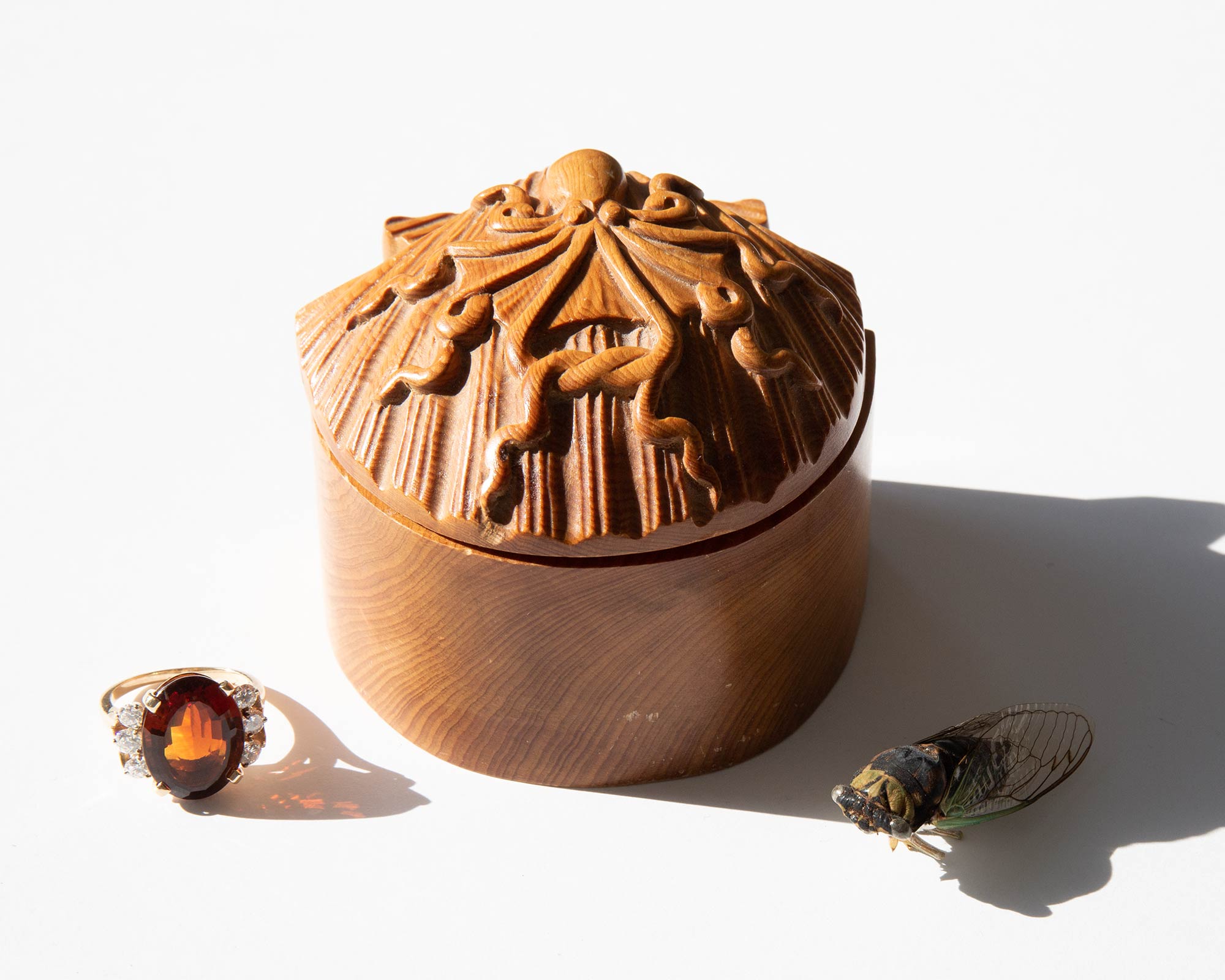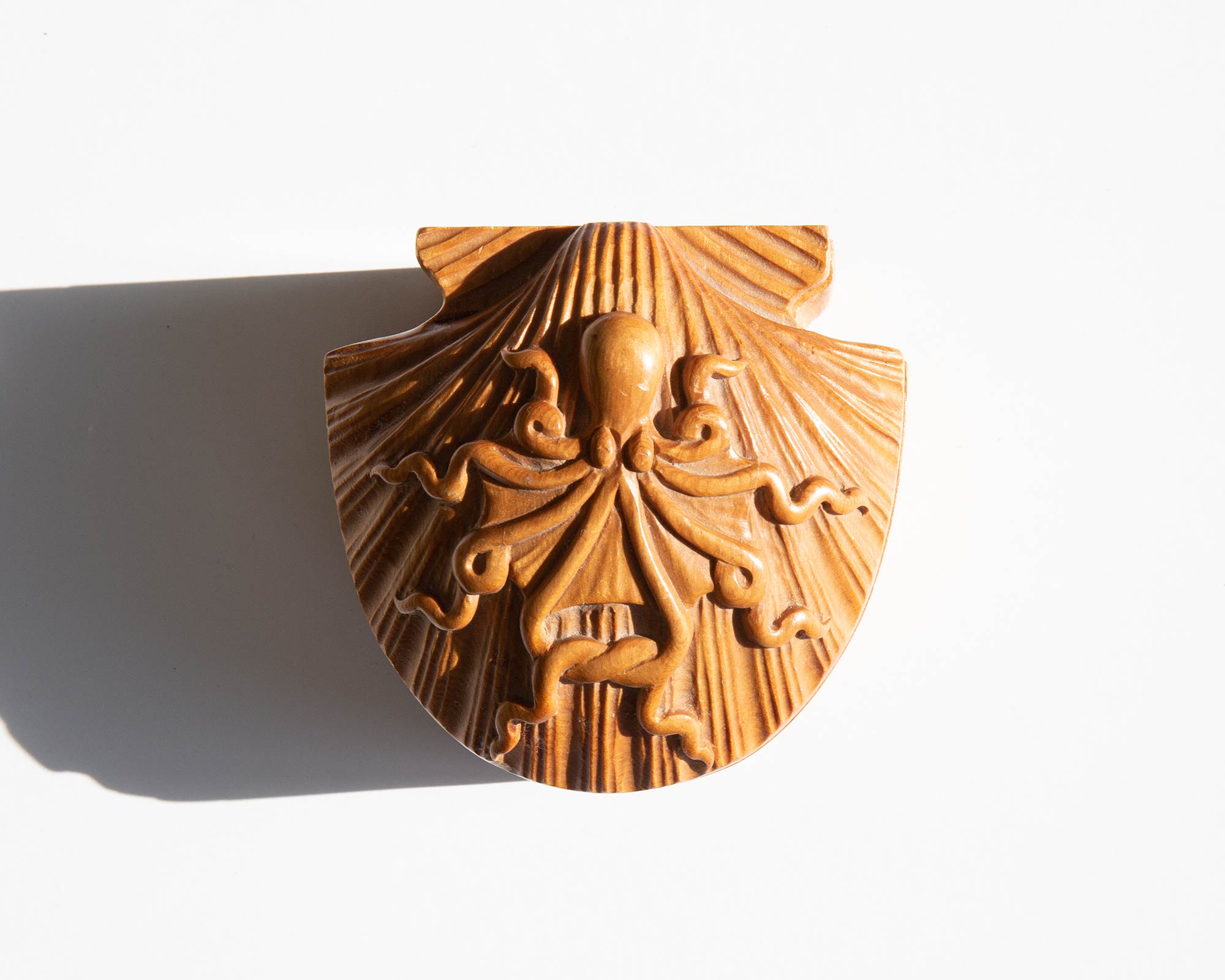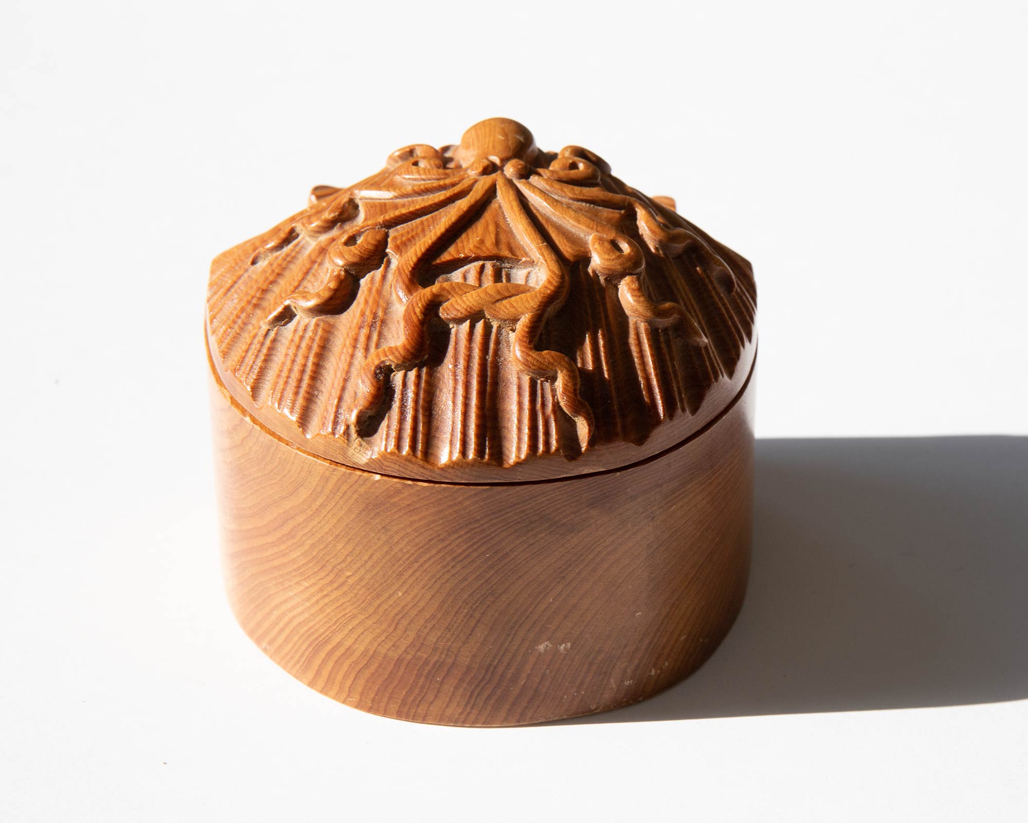 1970's carved wooden shell and octopus box.