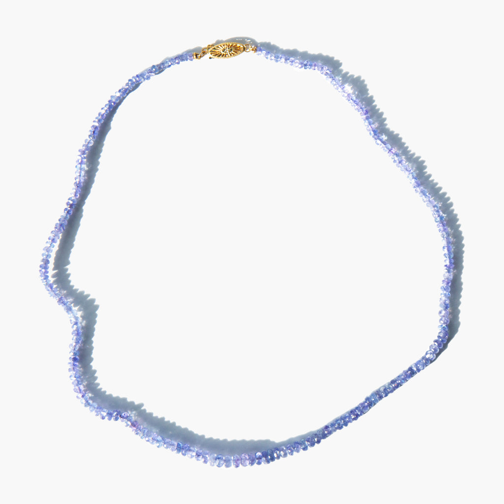 Pale lavender iolite bead strand with a 14k gold catch. Known as the "viking's compass" iolite is thought to embody a spirit of wonder, curiosity, and exploration and is known to be a guide for both physical and spiritual journeys.