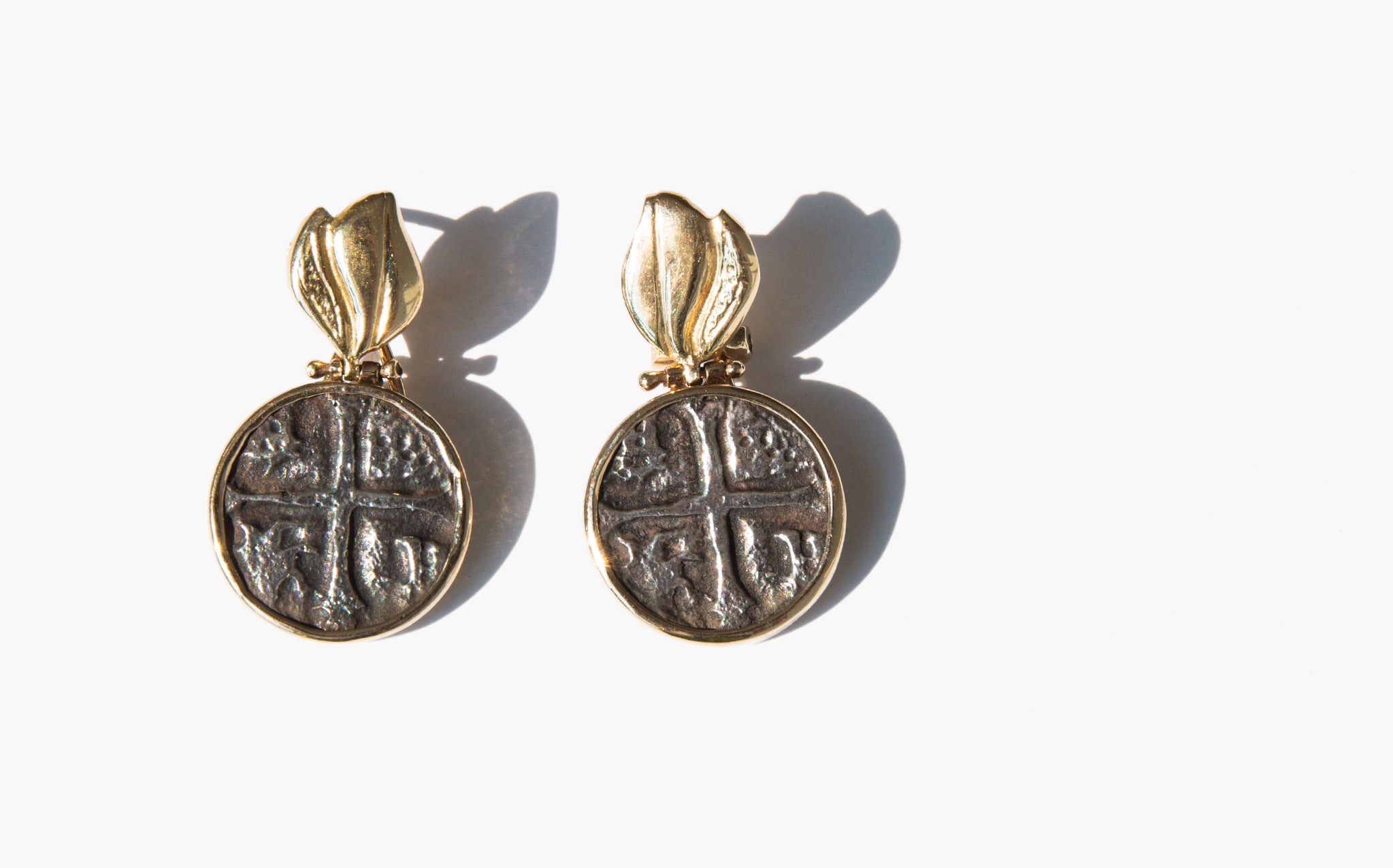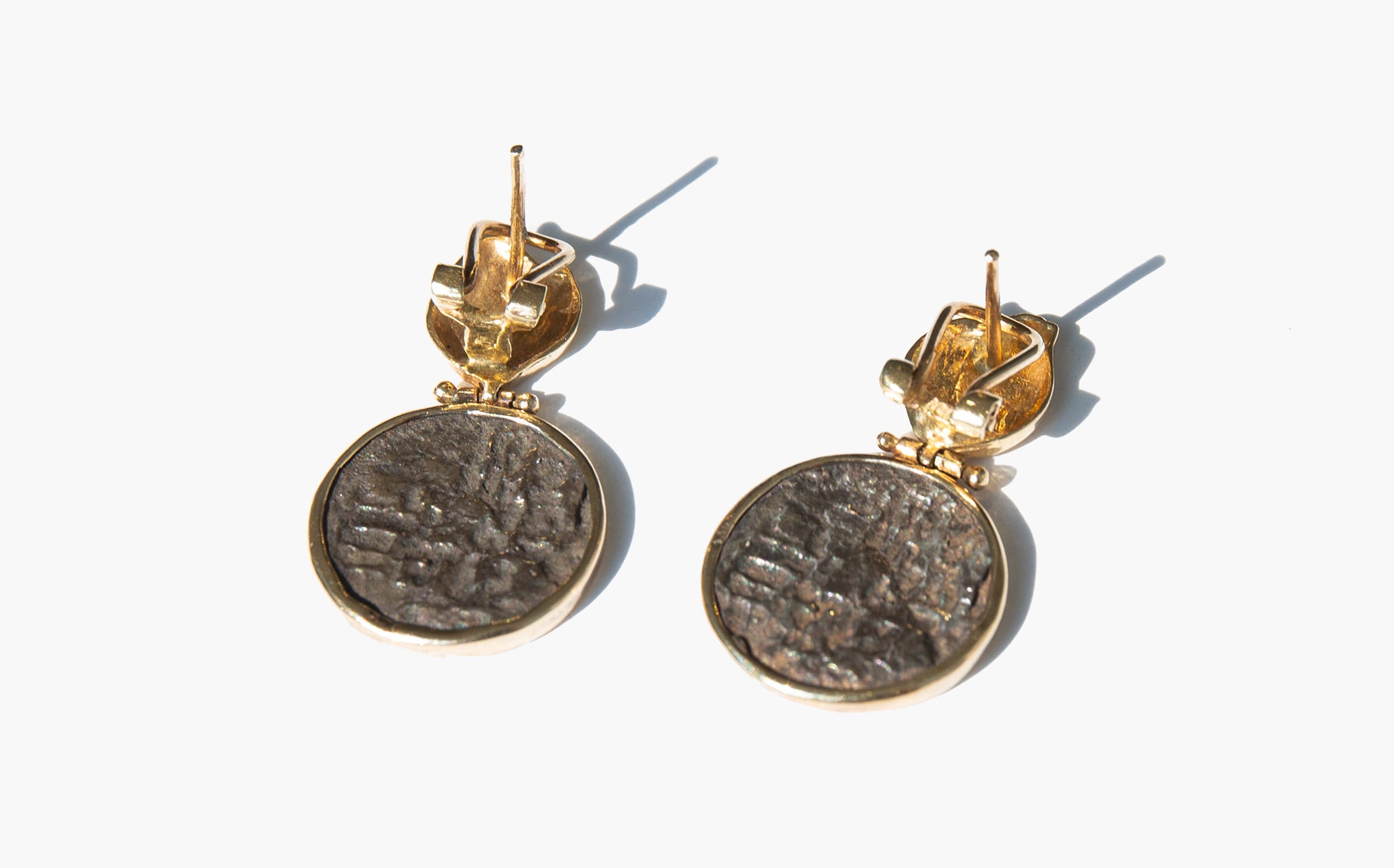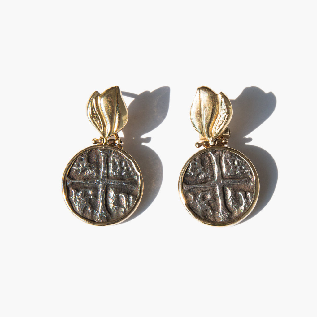 These earrings are ancient coins in vintage settings.