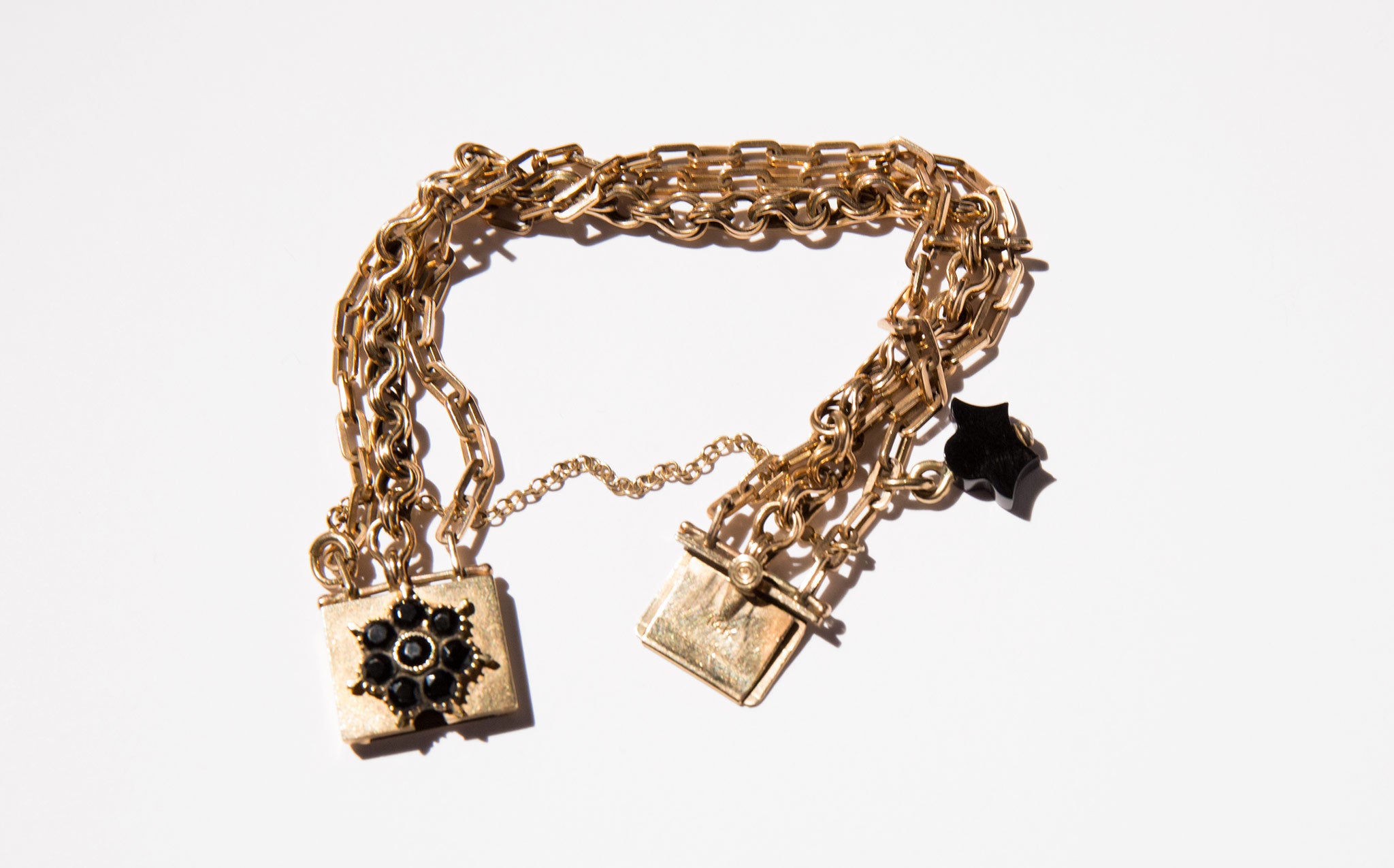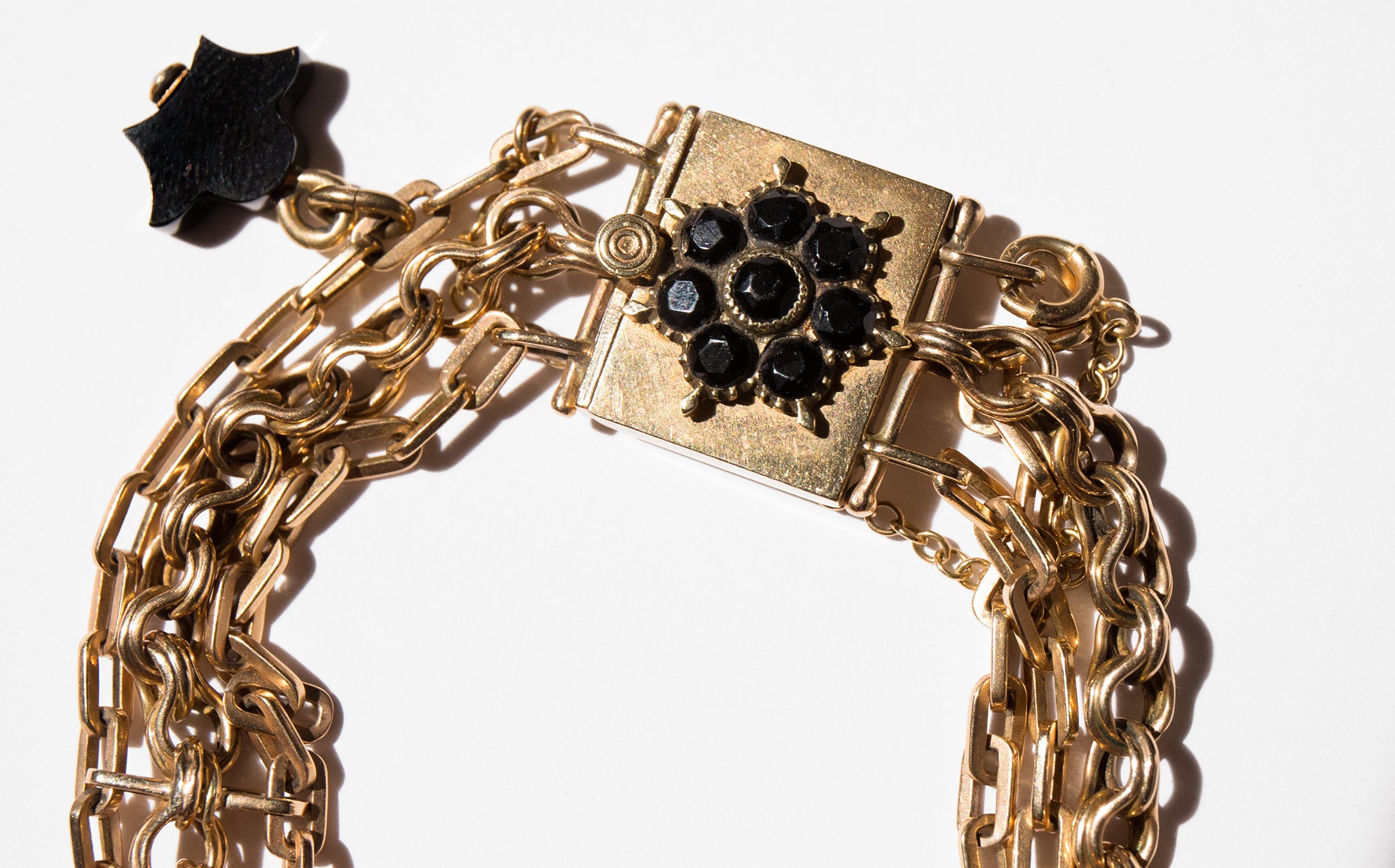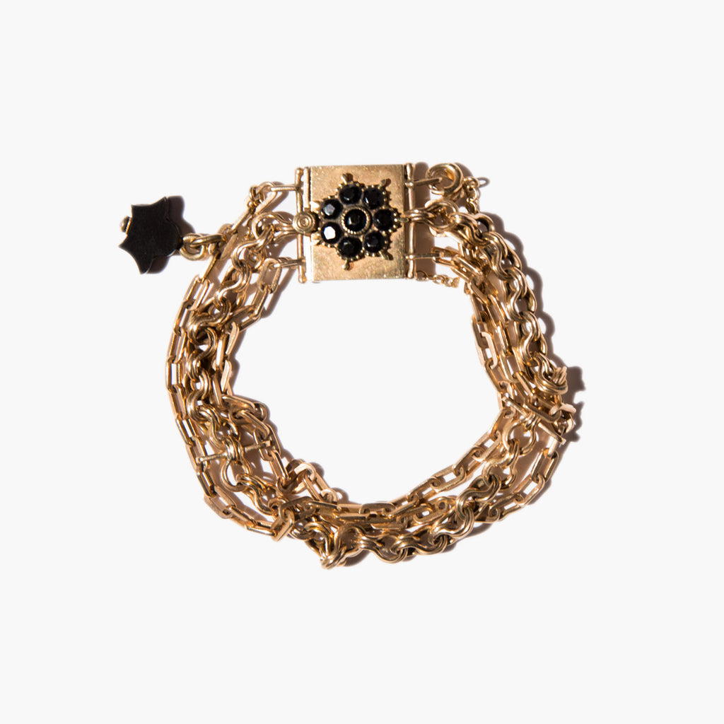 Exquisite Victorian 14k gold chain bracelet with jet accents.