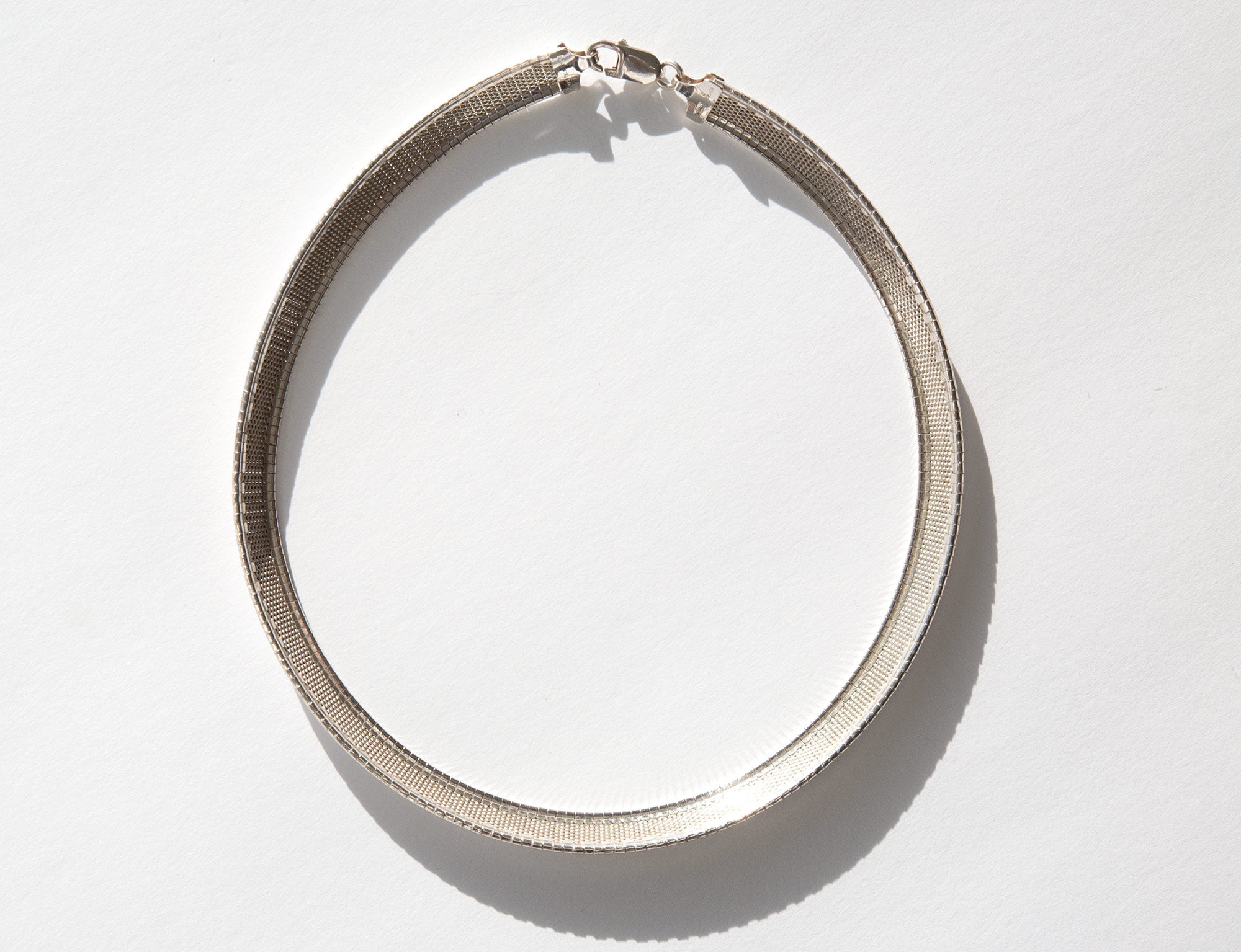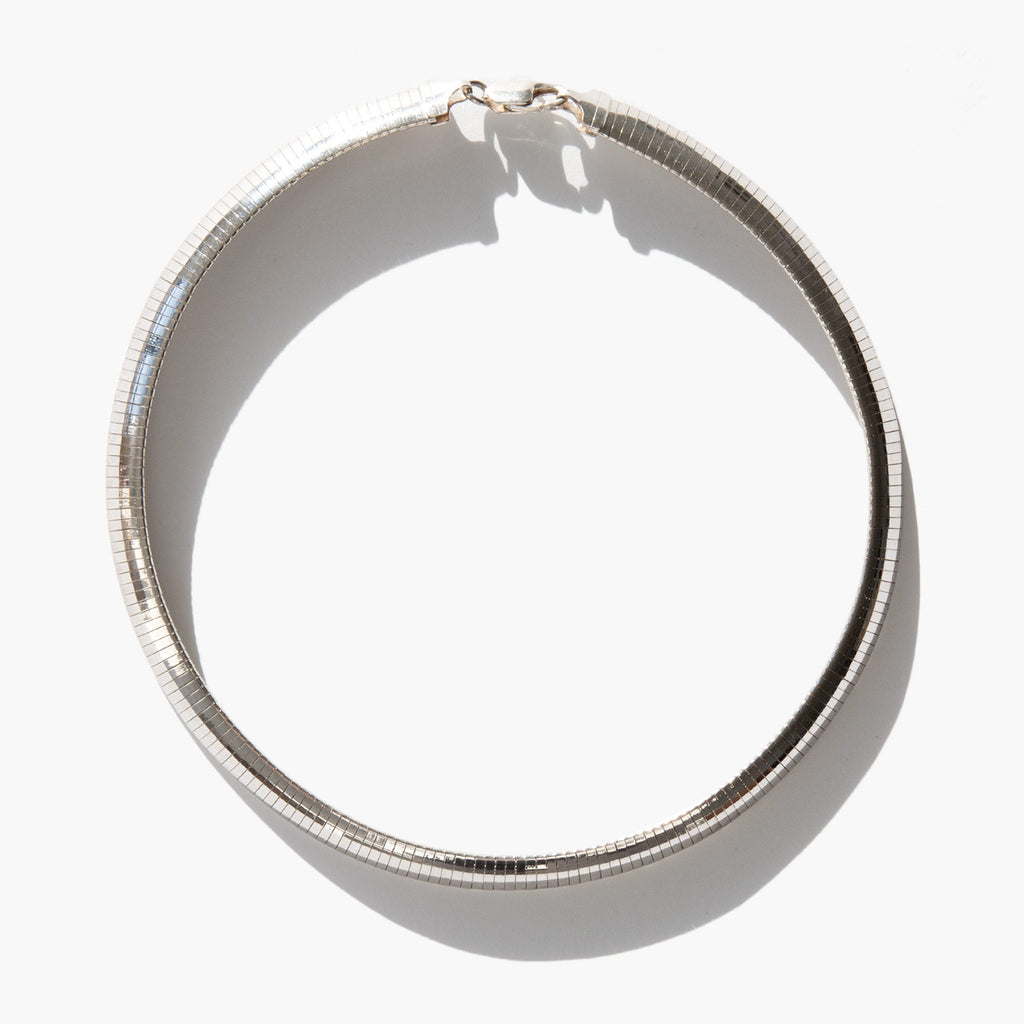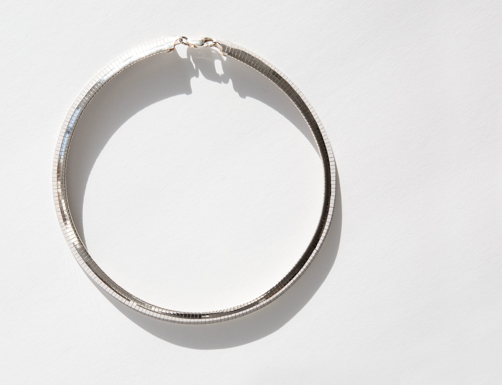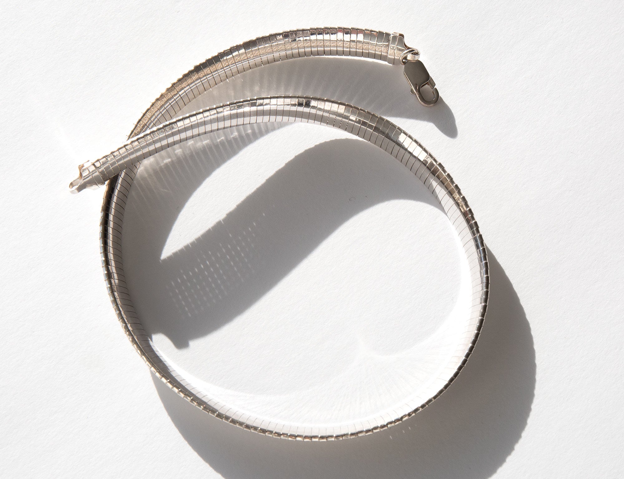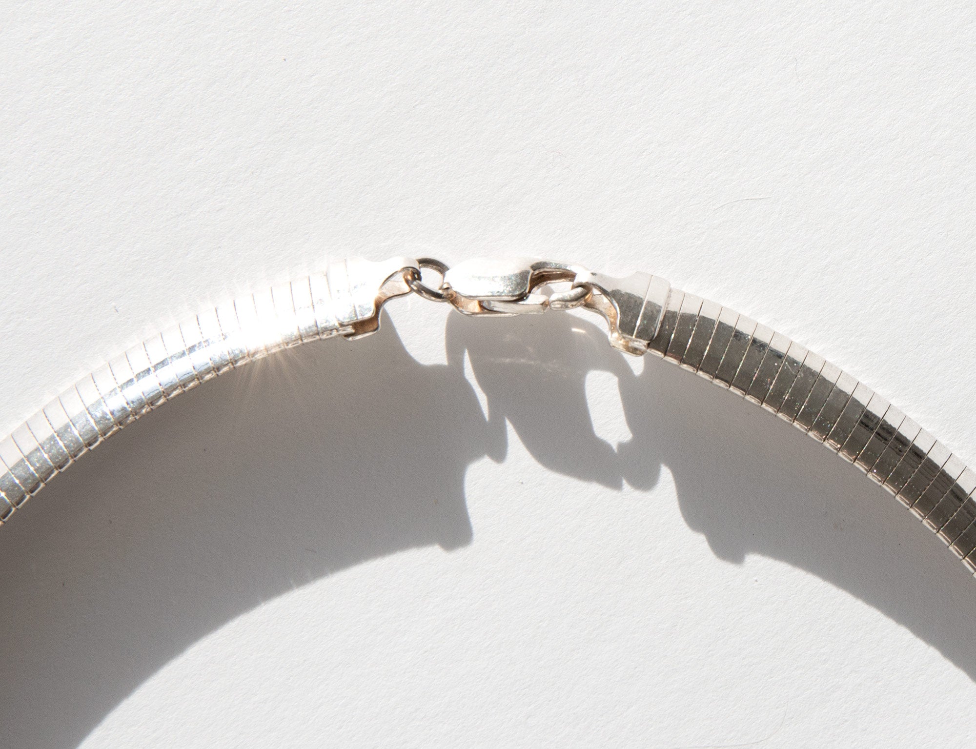 Shimmering sterling silver omega chain. A simple and chic piece to wear alone and a fabulous layering piece.