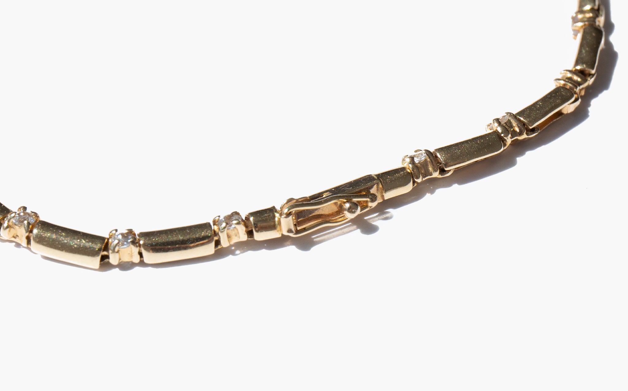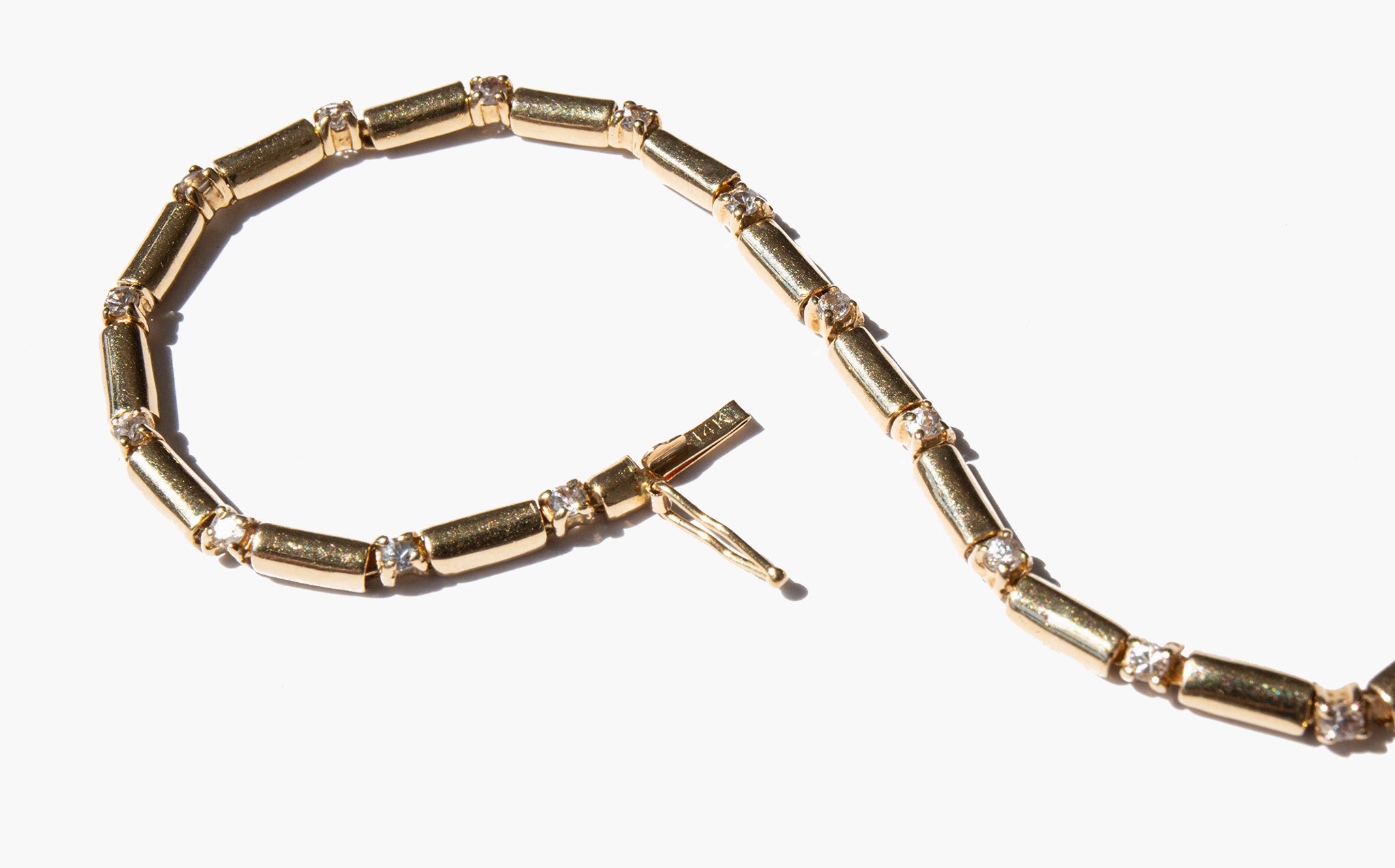 Sparkling 14k gold and diamond link bracelet.