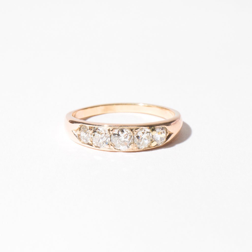 Old mine cut 1 ct diamond in an Edwardian era 14k peach gold setting.