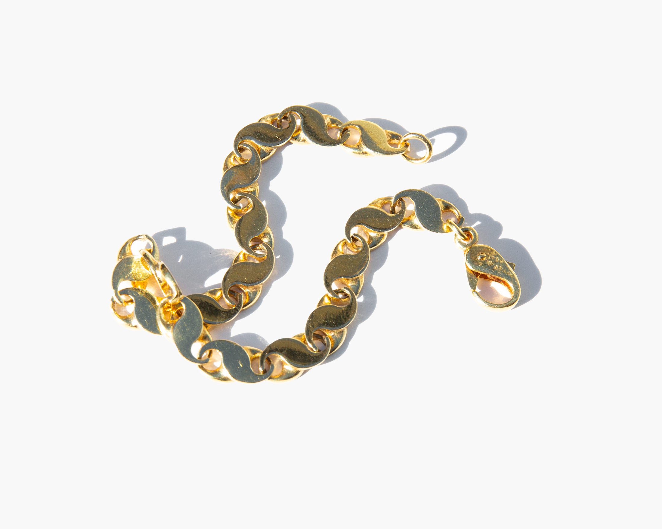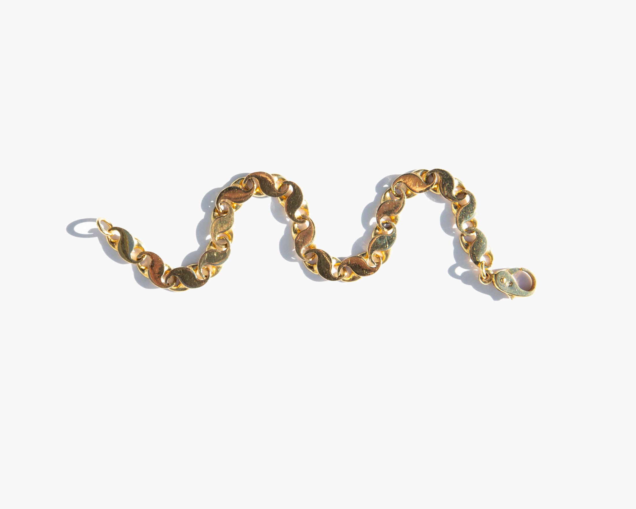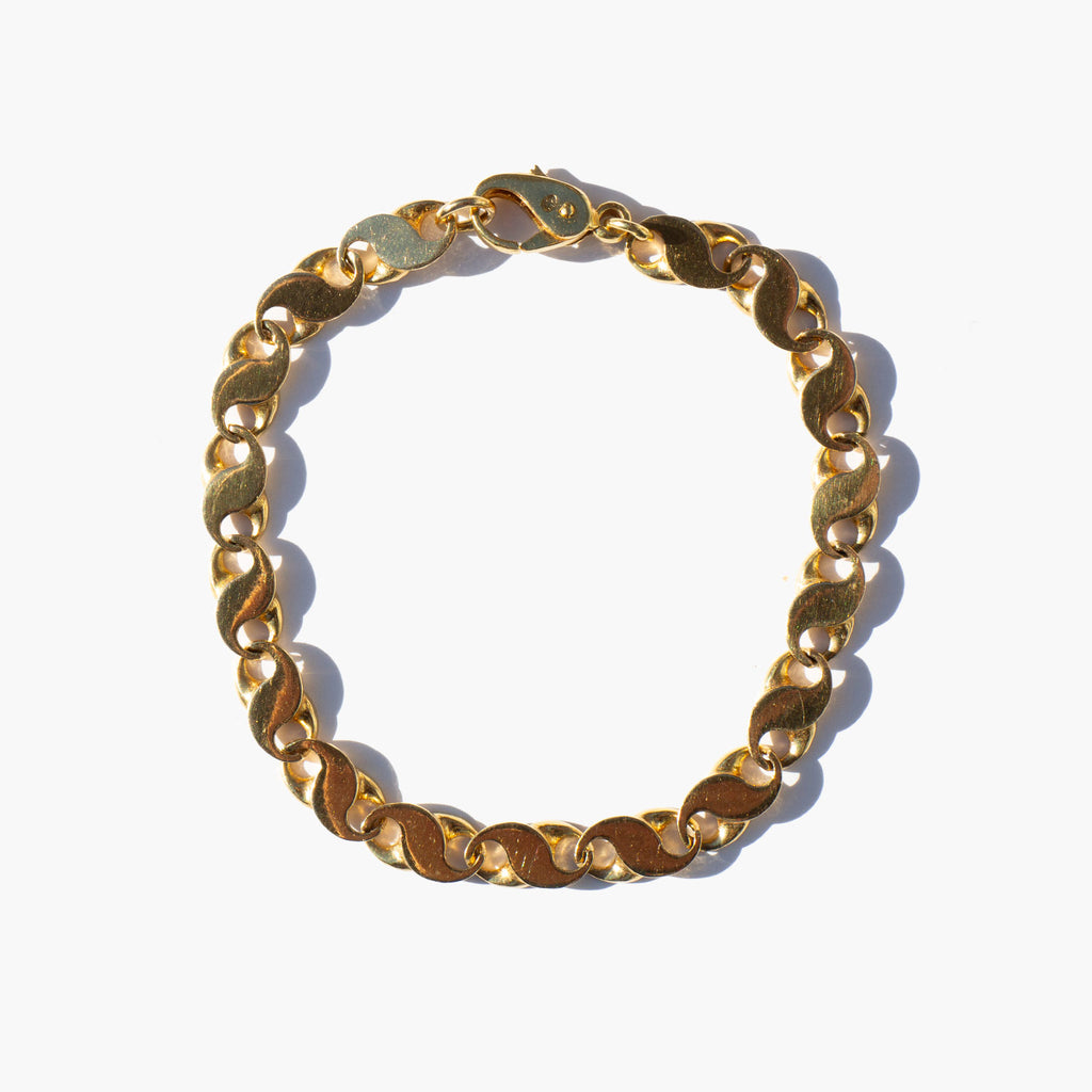 Solid 18k gold bracelet with an unusual link and lobster clasp closure. Made in Spain.