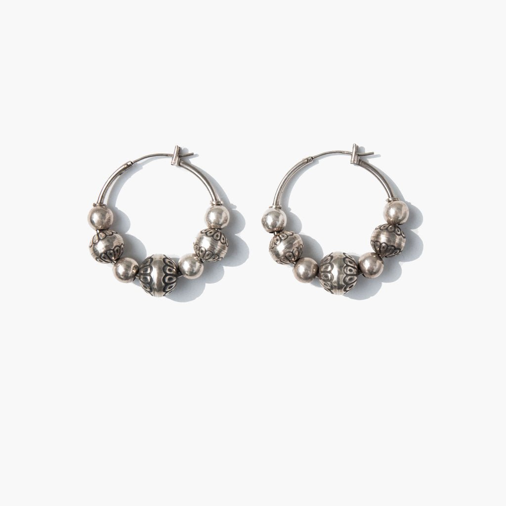 Southwestern sterling silver bead earrings with geometric detailing.