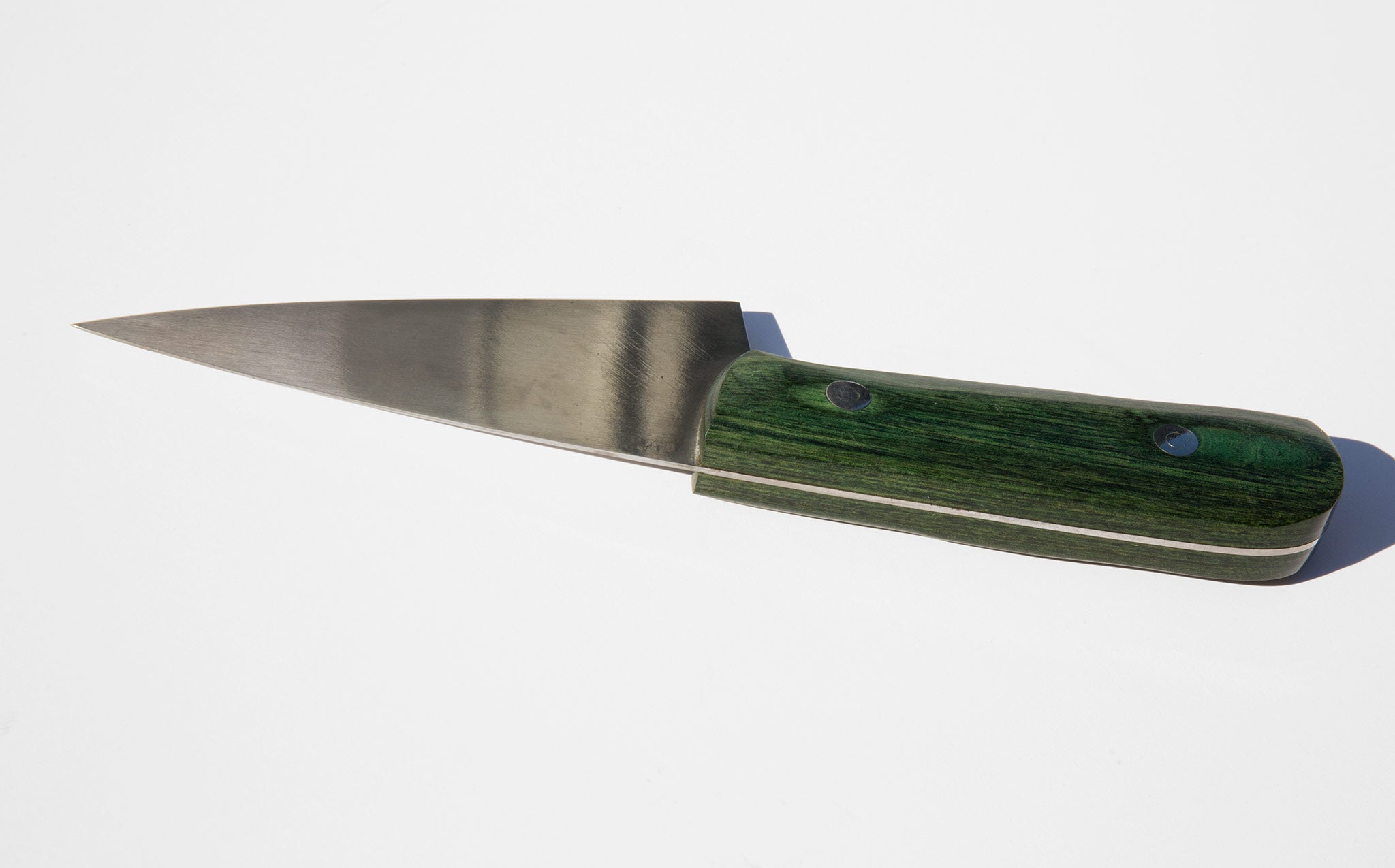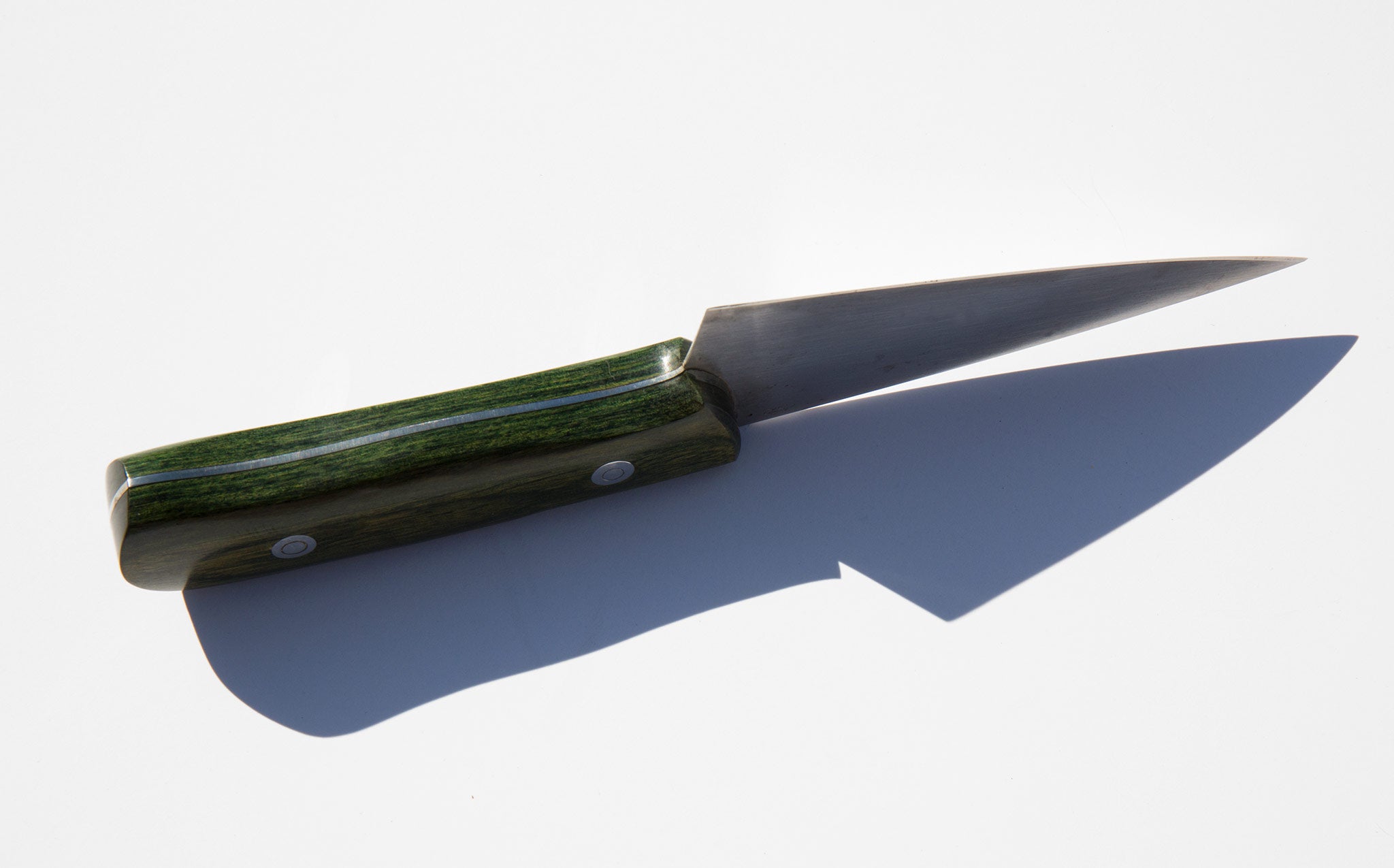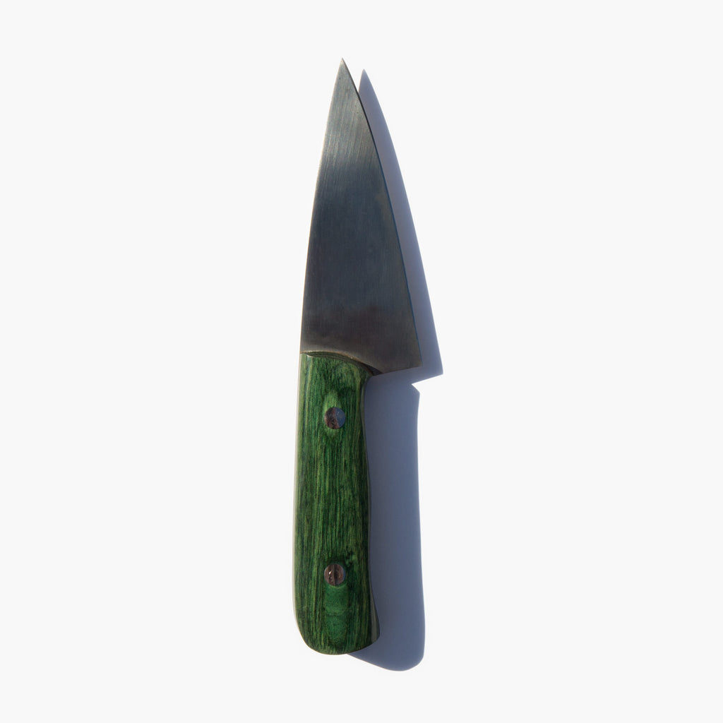 Small, useful, vintage kitchen knife with a smooth, dyed green handle.