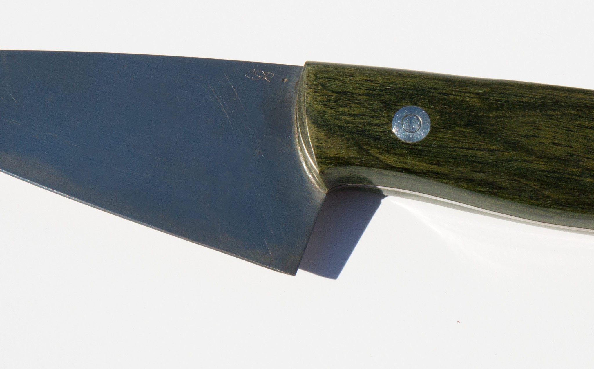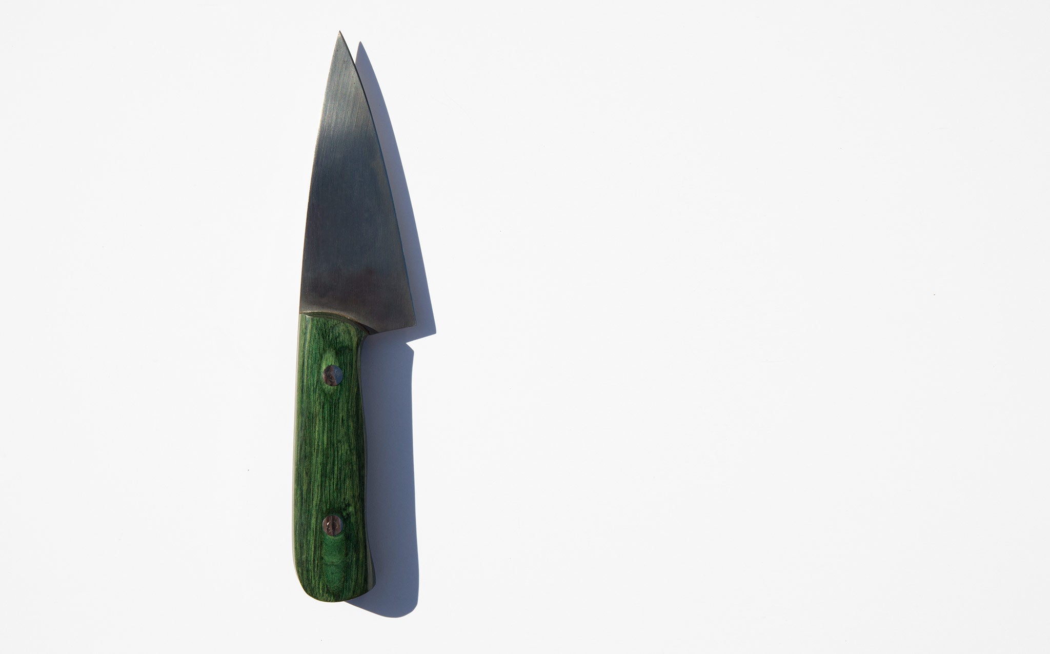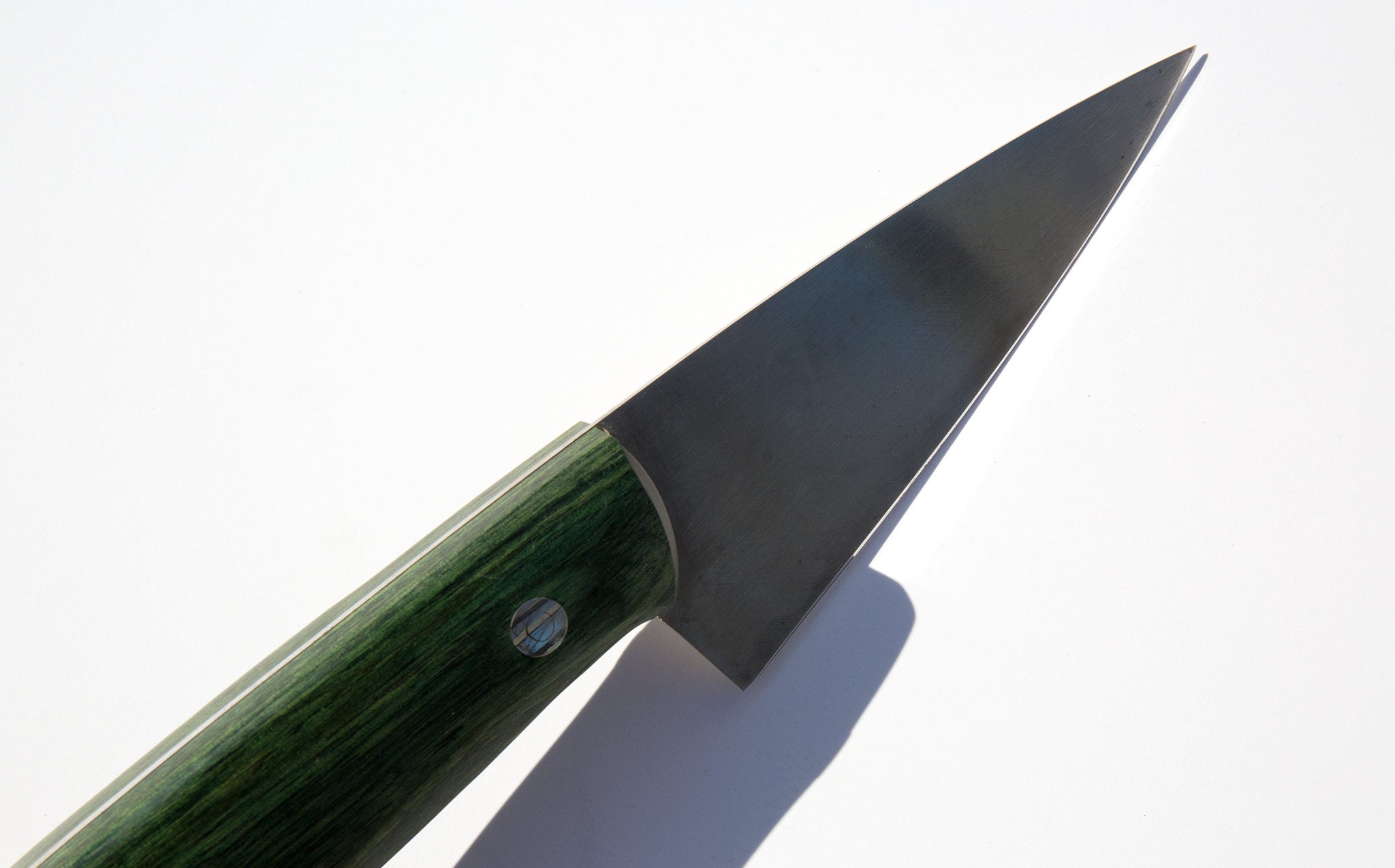 Small, useful, vintage kitchen knife with a smooth, dyed green handle.