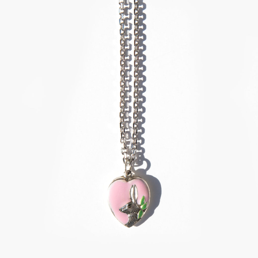 Sterling silver and enamel heart of a sterling chain. A moon goddess associated with rebirth and fertility, Ēostre is associated with the color pink and is said to transform herself into a hare during the full moon.