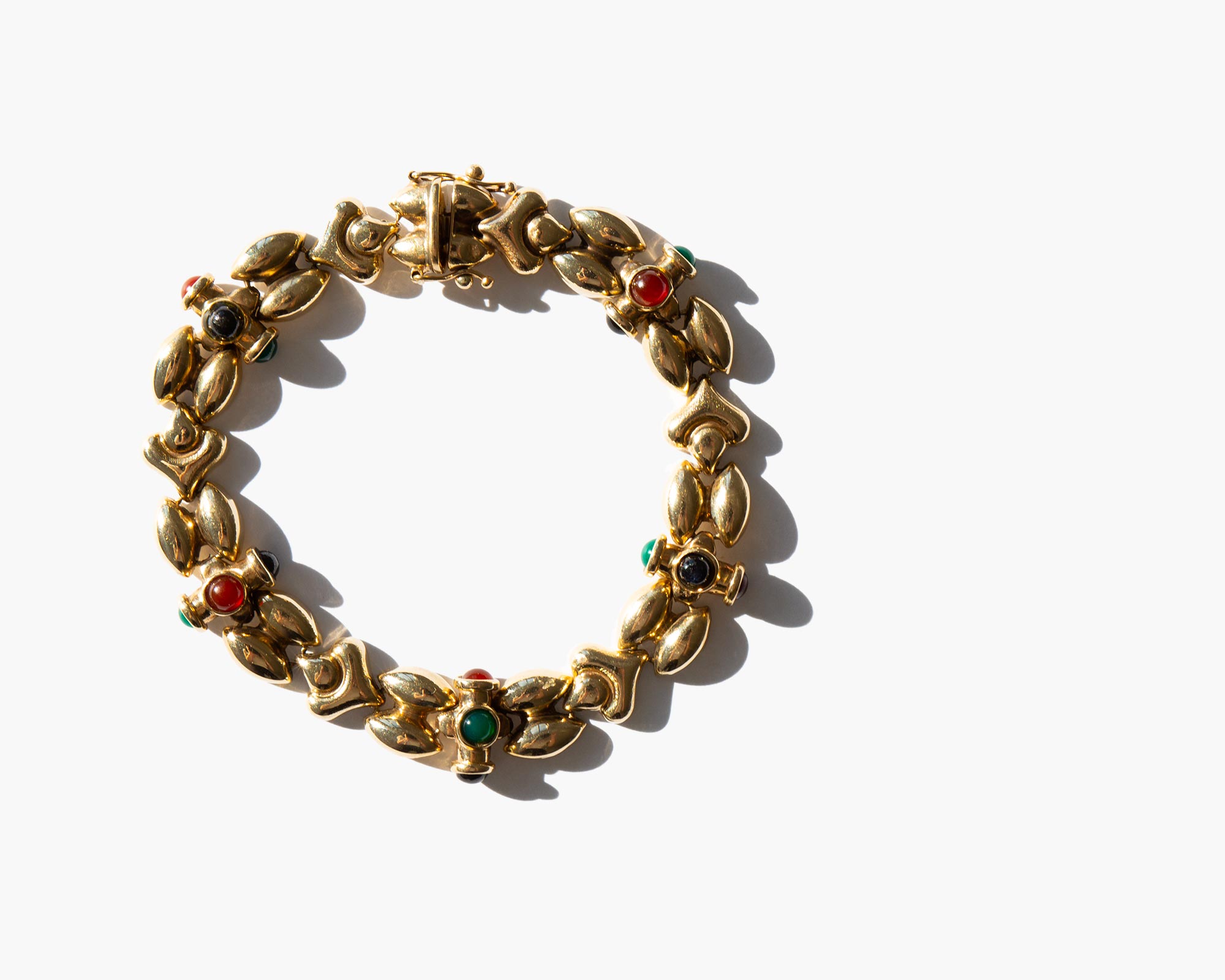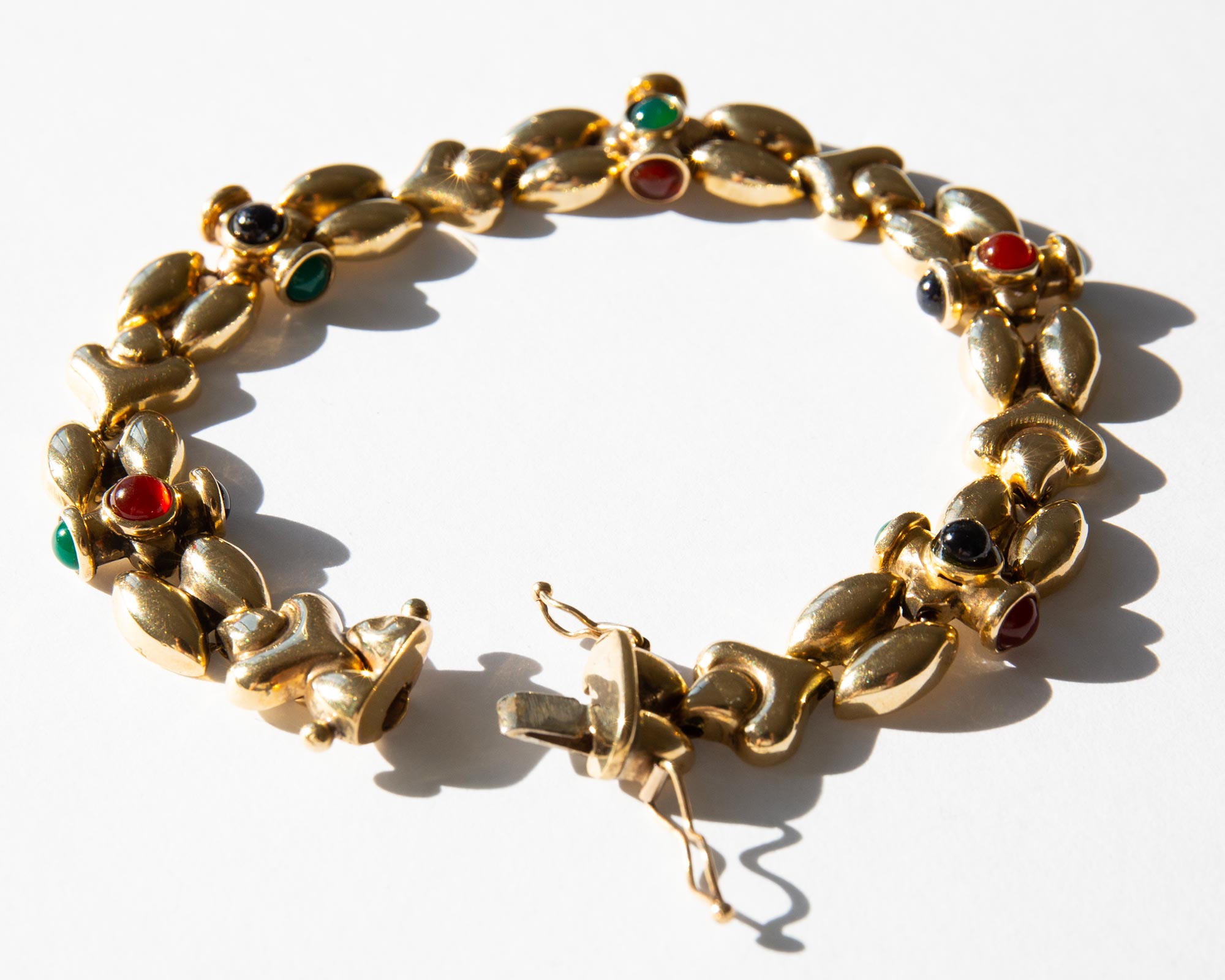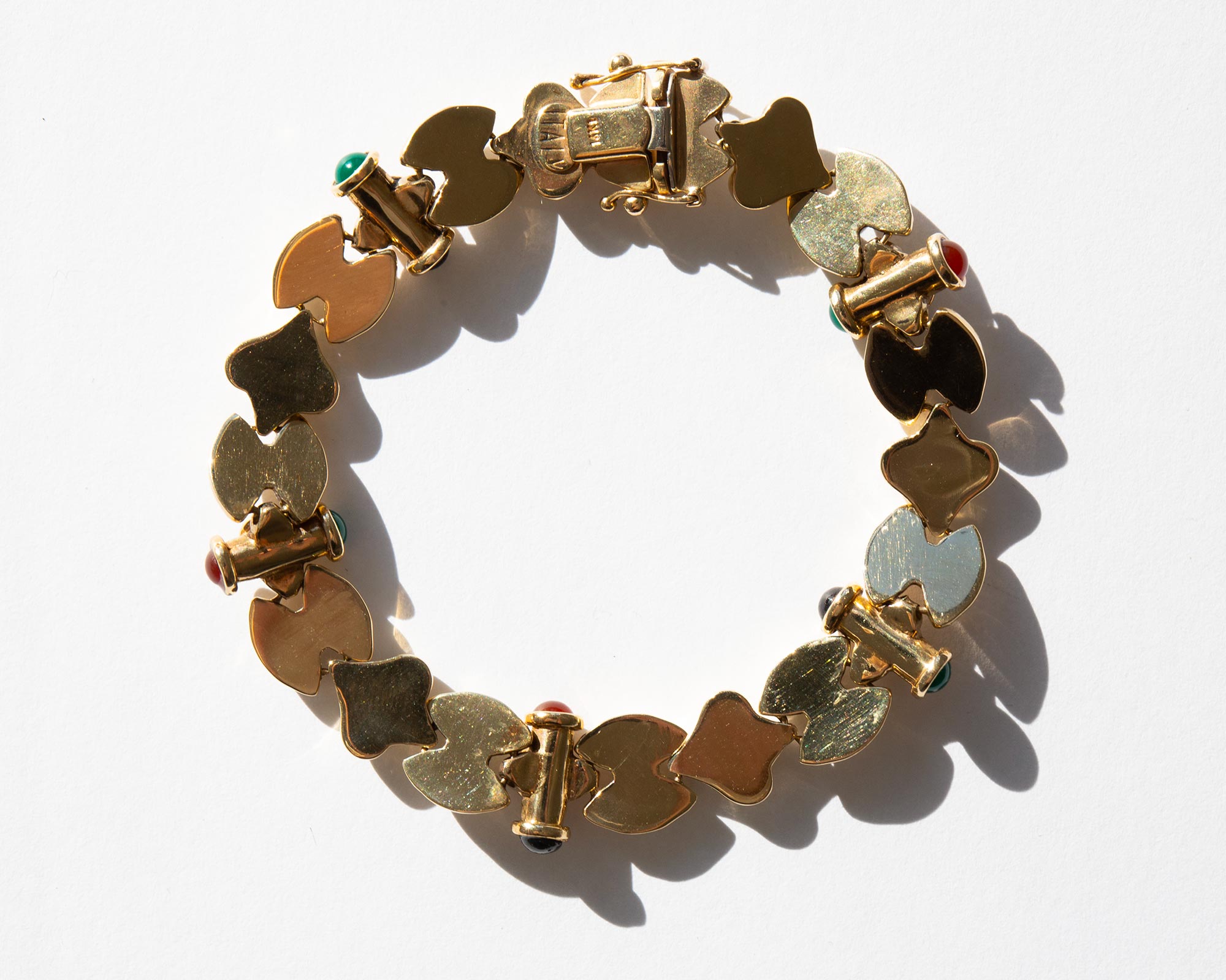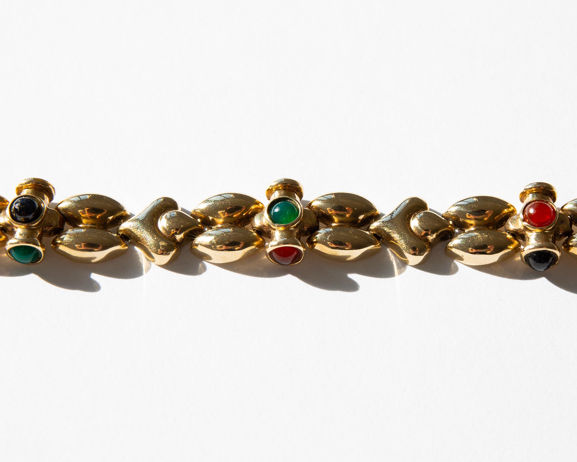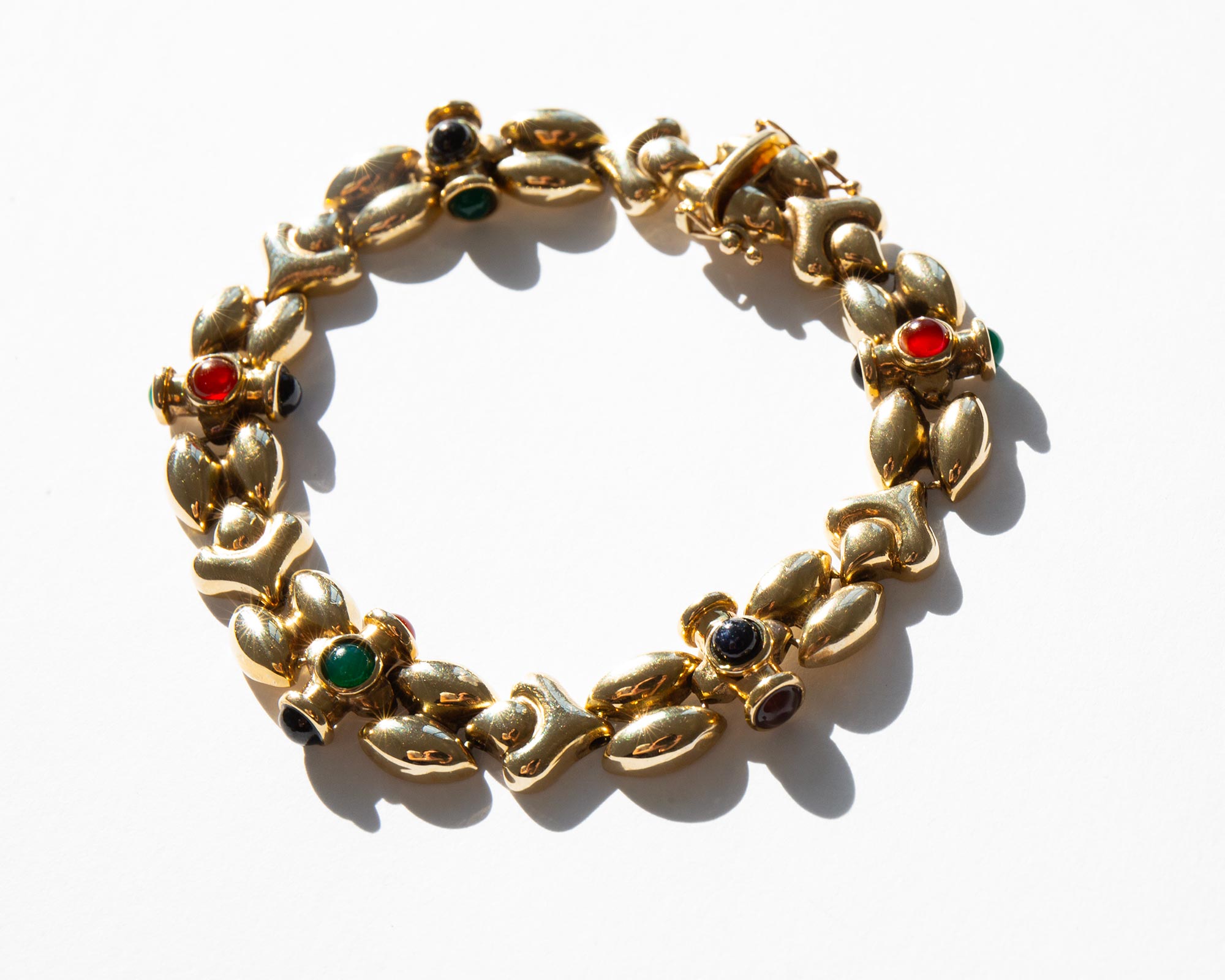 Italian 14k gold link bracelet with colorful semi-precious stones.