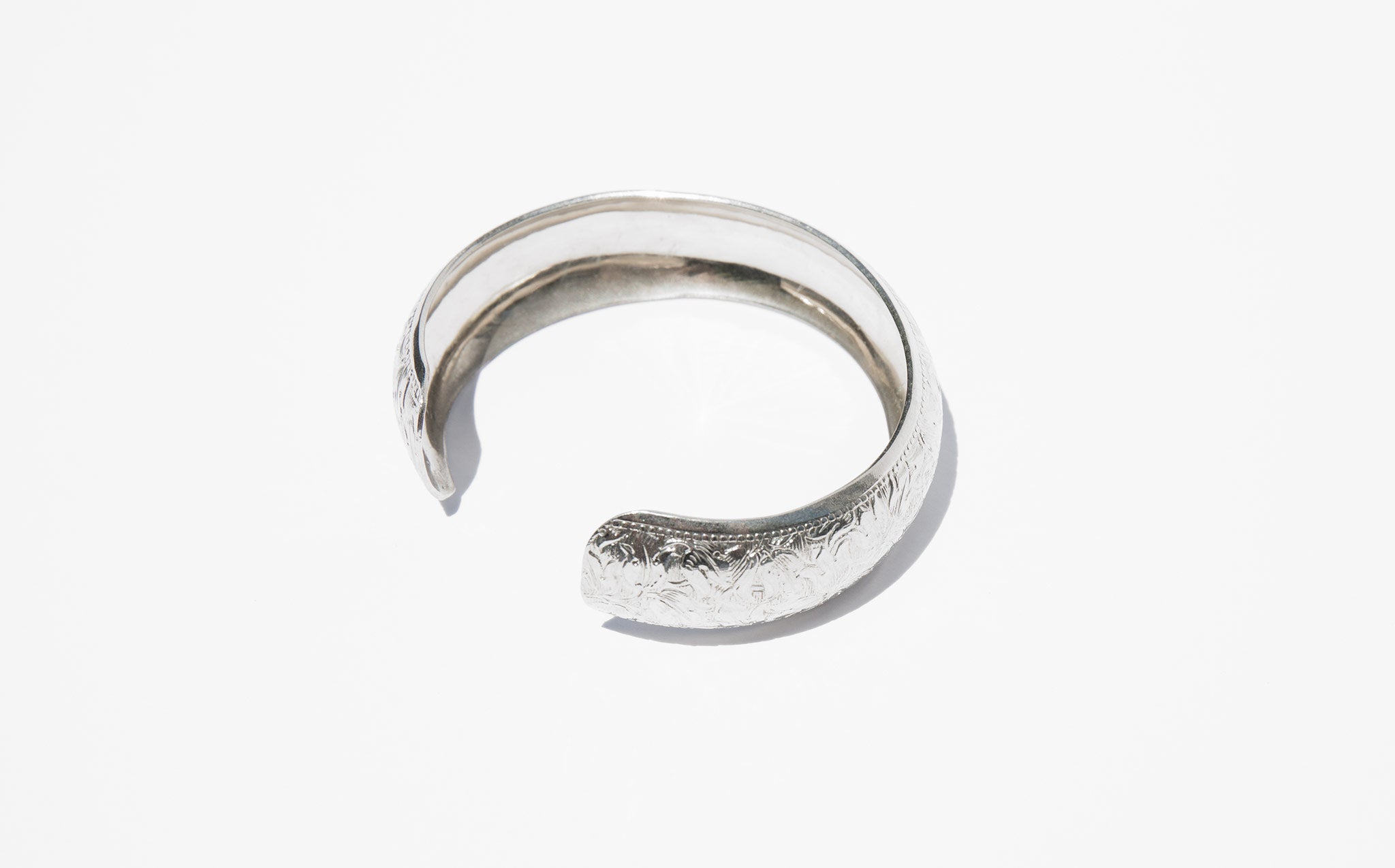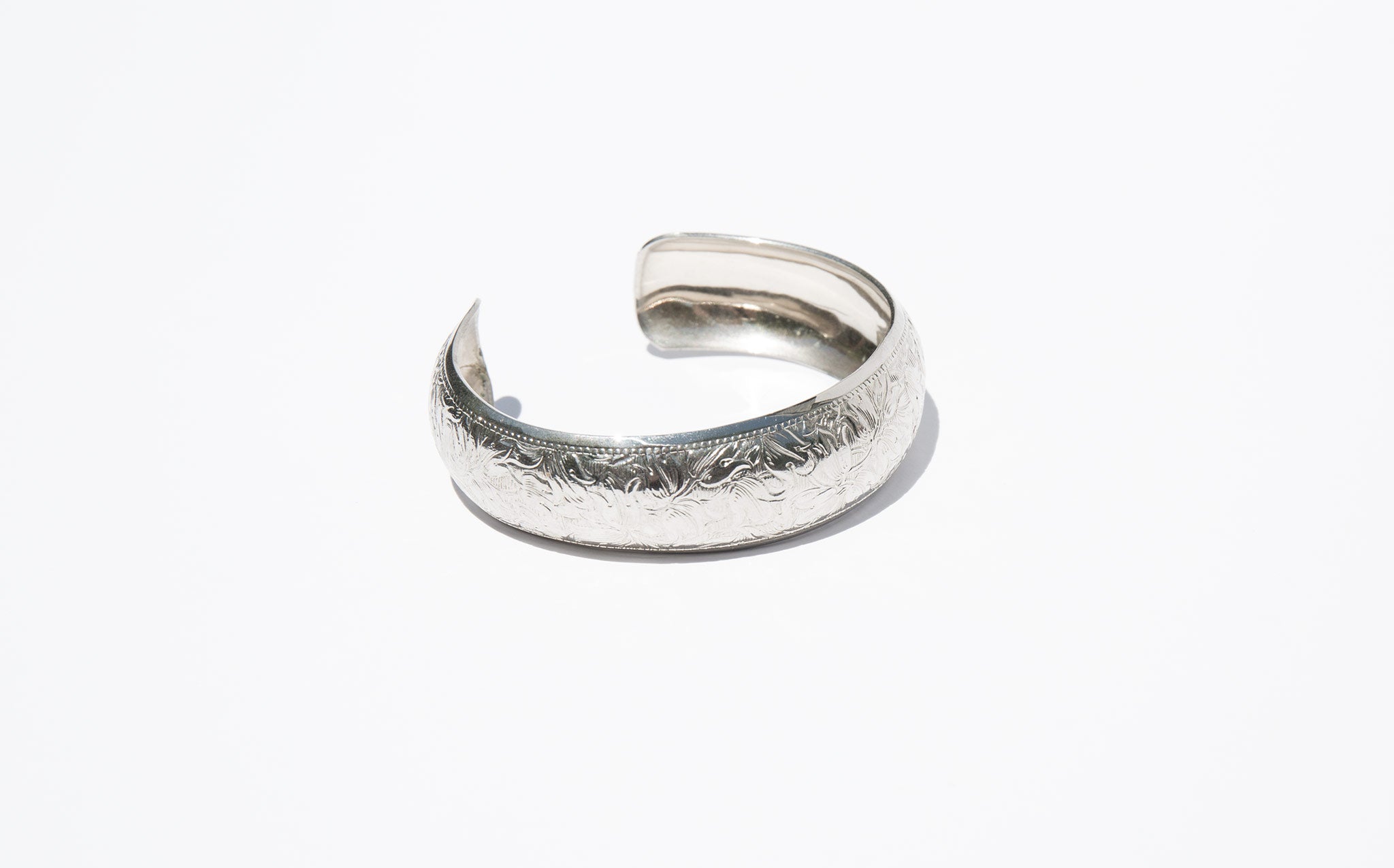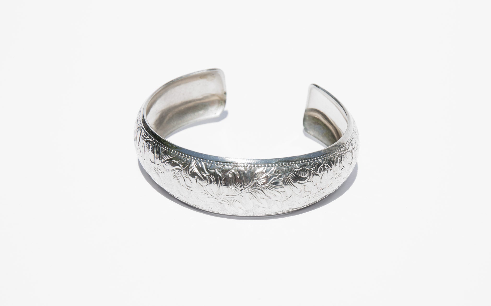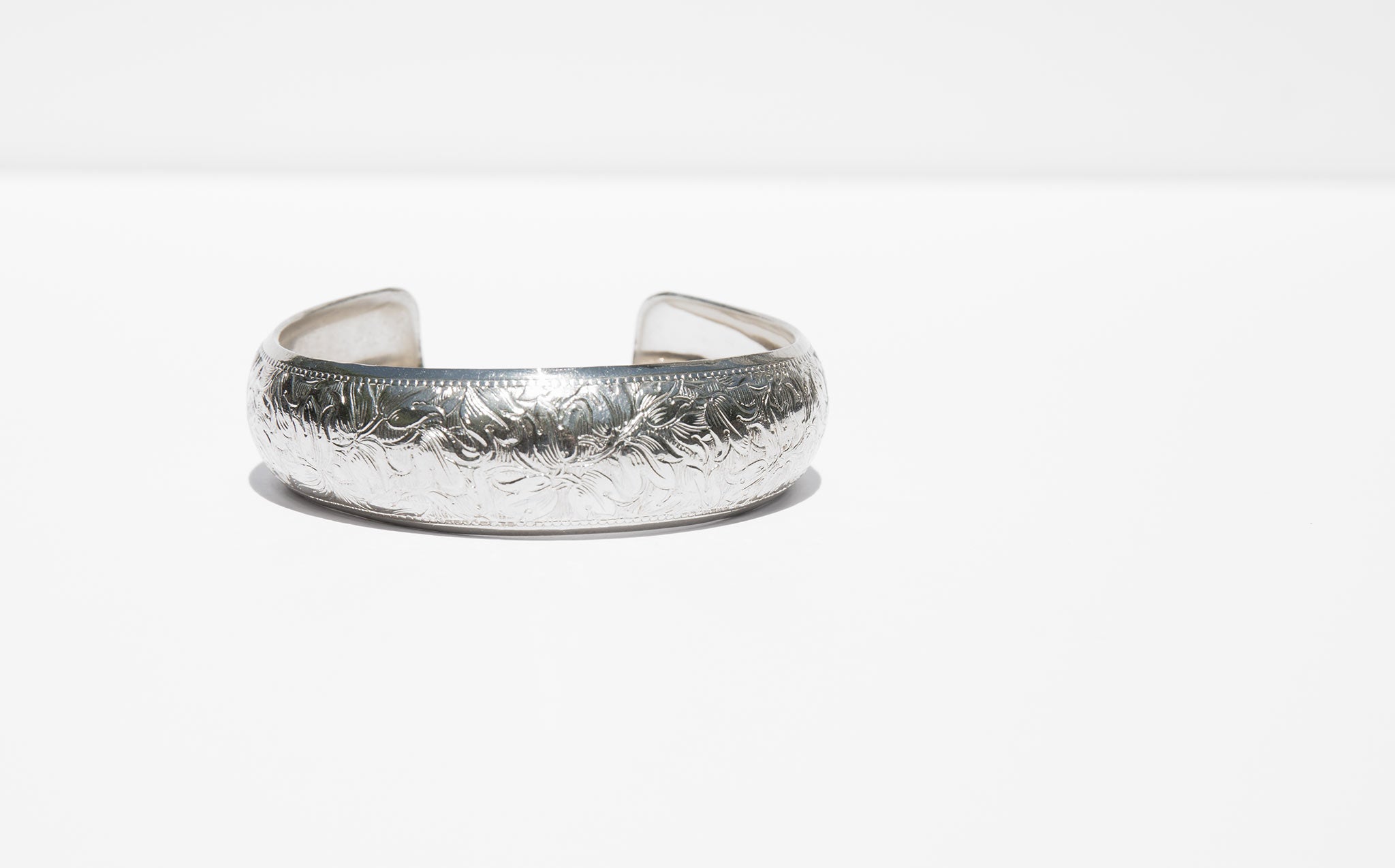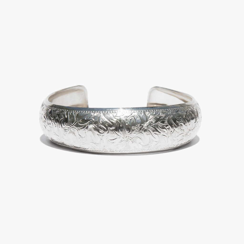 Sterling silver southwestern cuff bracelet etched with delicate vines and flowers.