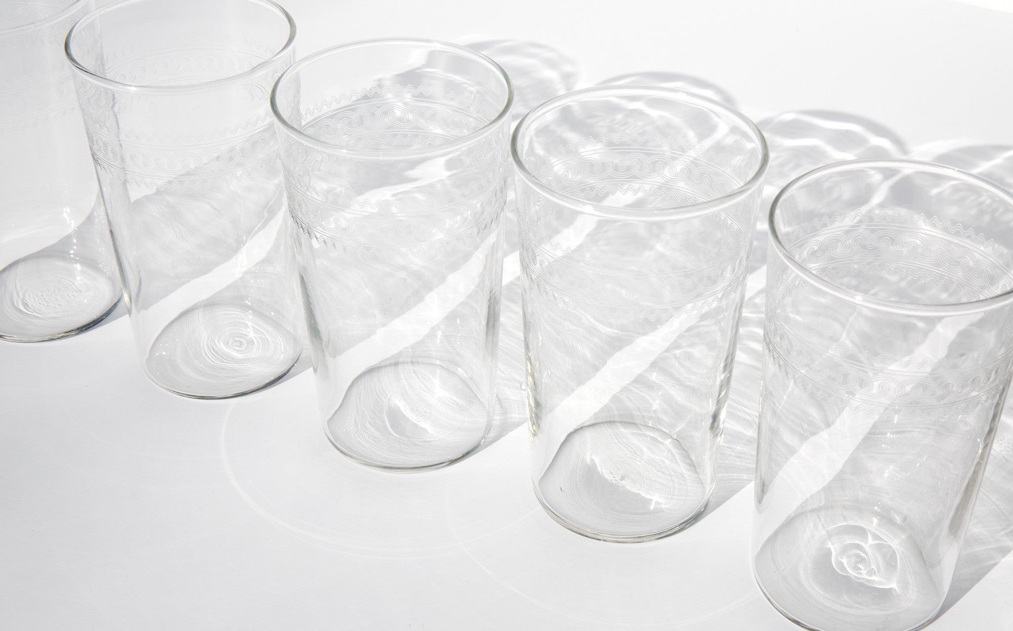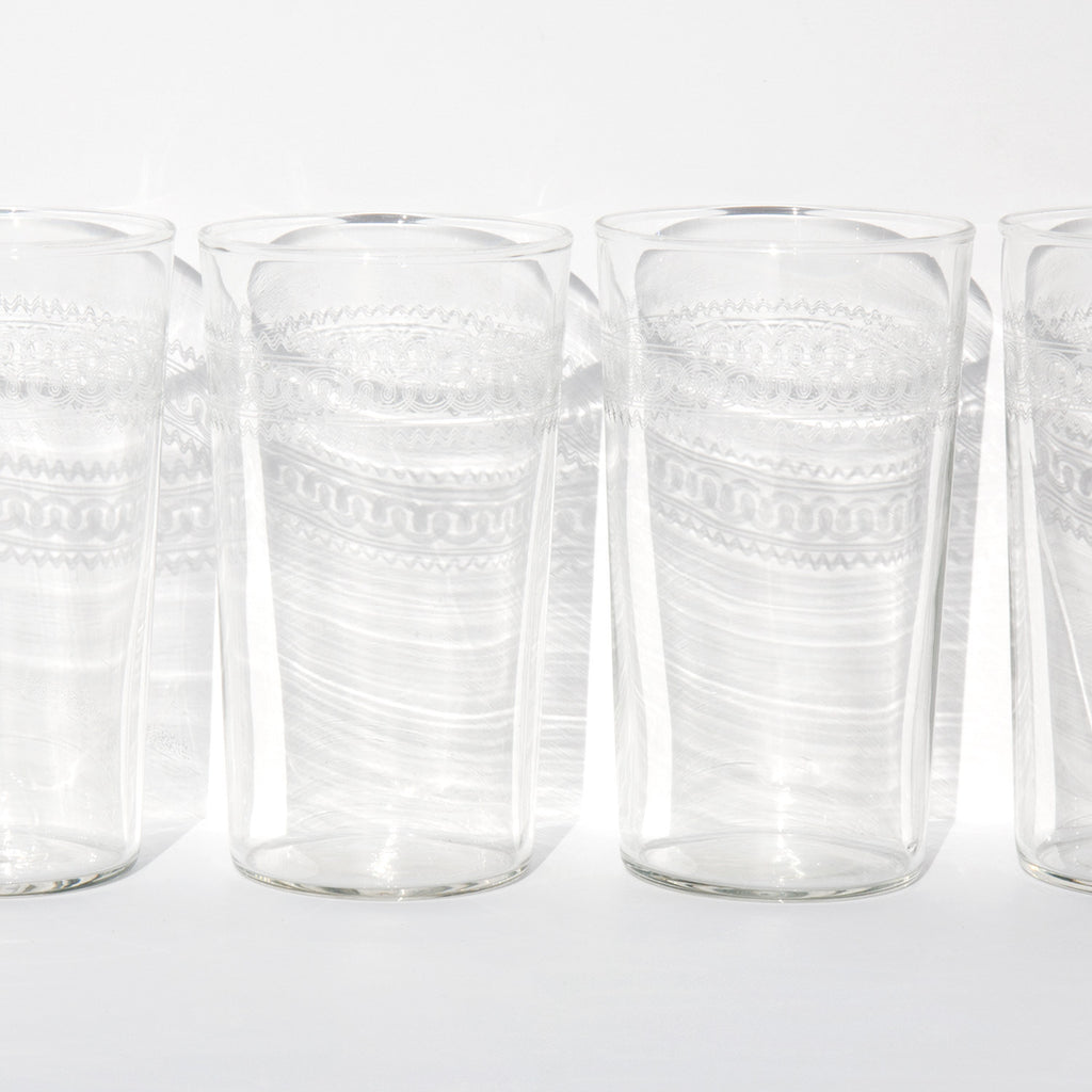 Delicate Moroccan style etched water tumblers.