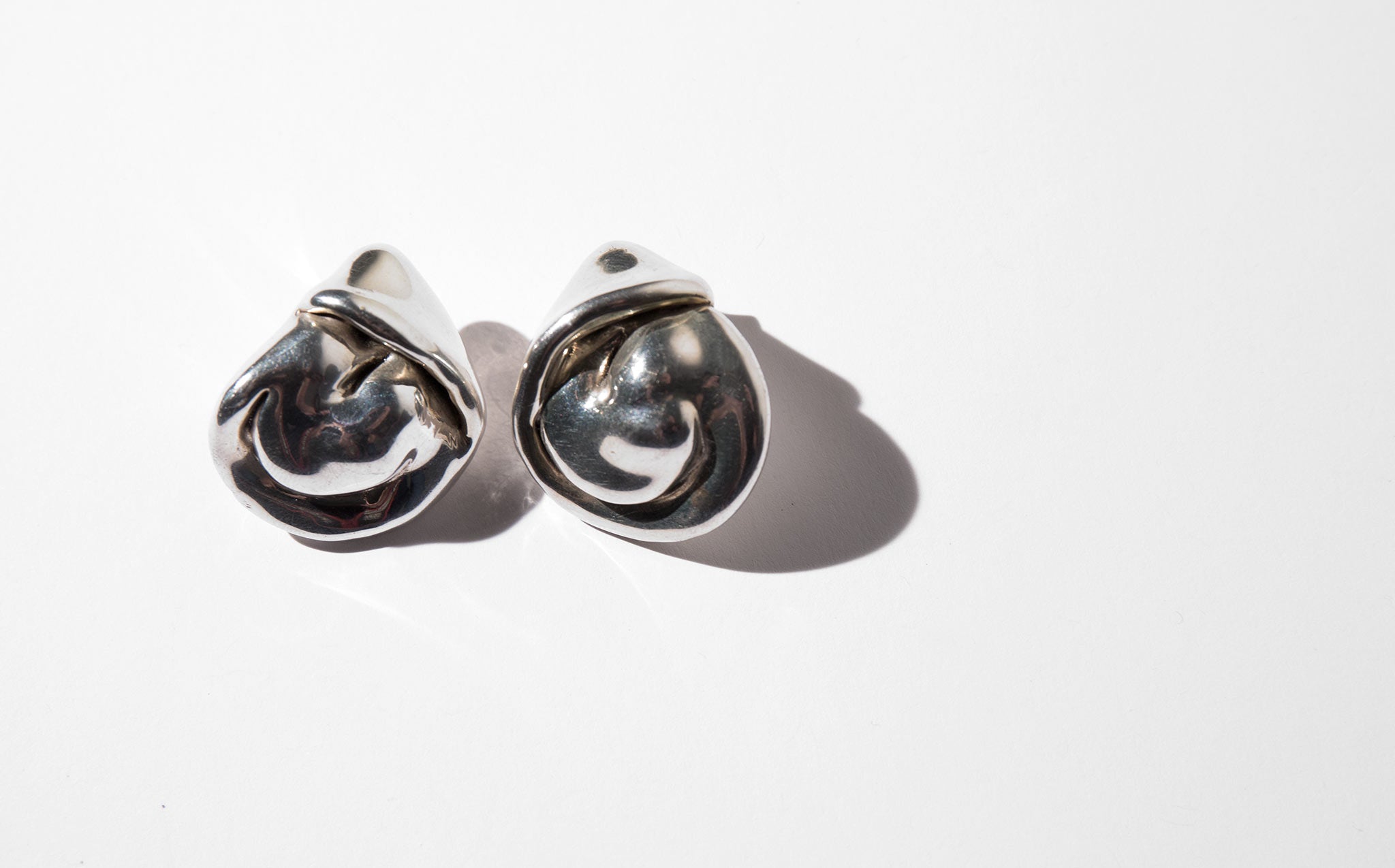 Organically shaped sterling silver earrings.