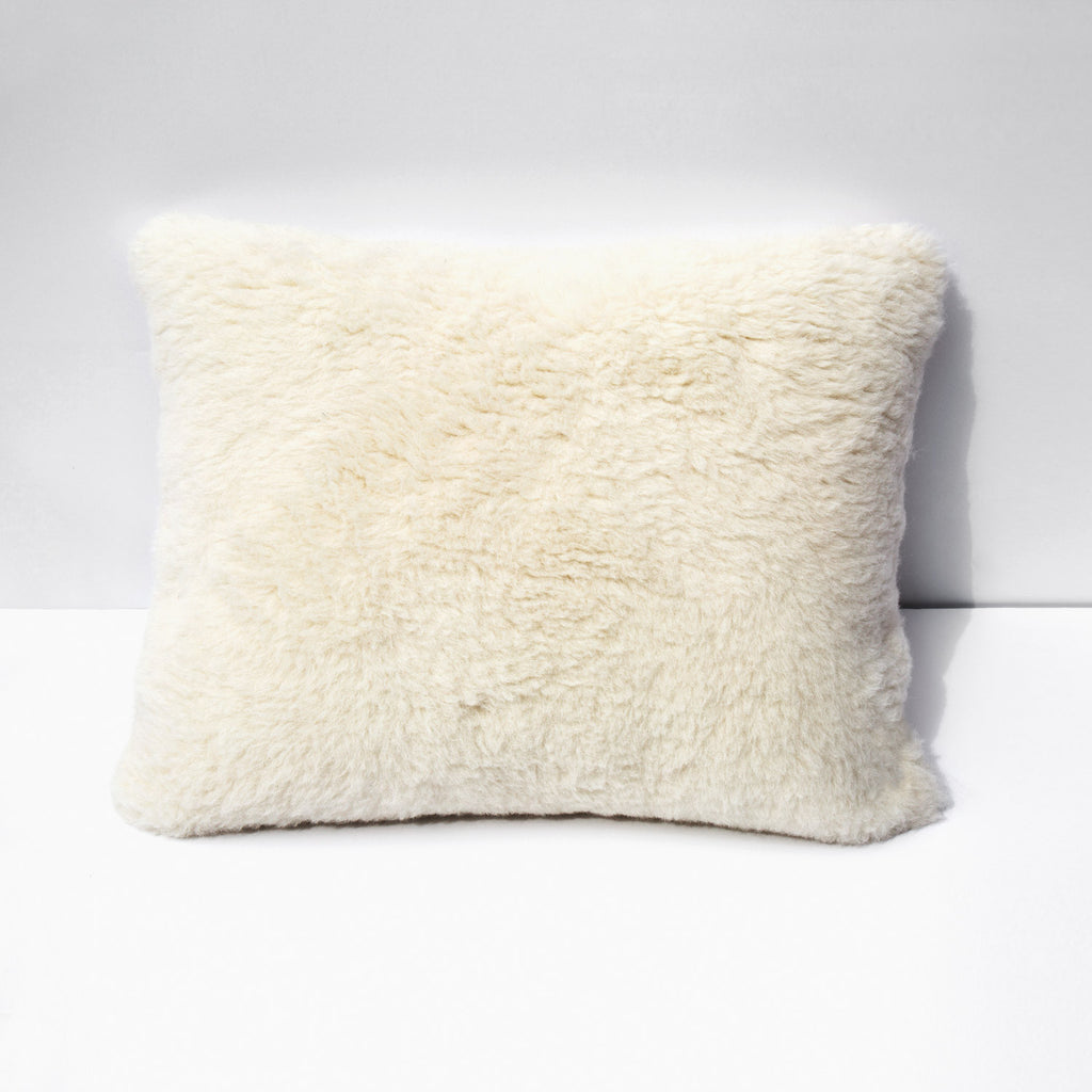 Luxurious and entirely cruelty-free Peruvian sheared alpaca fur throw pillow. Includes satin 'luft' pillow insert.