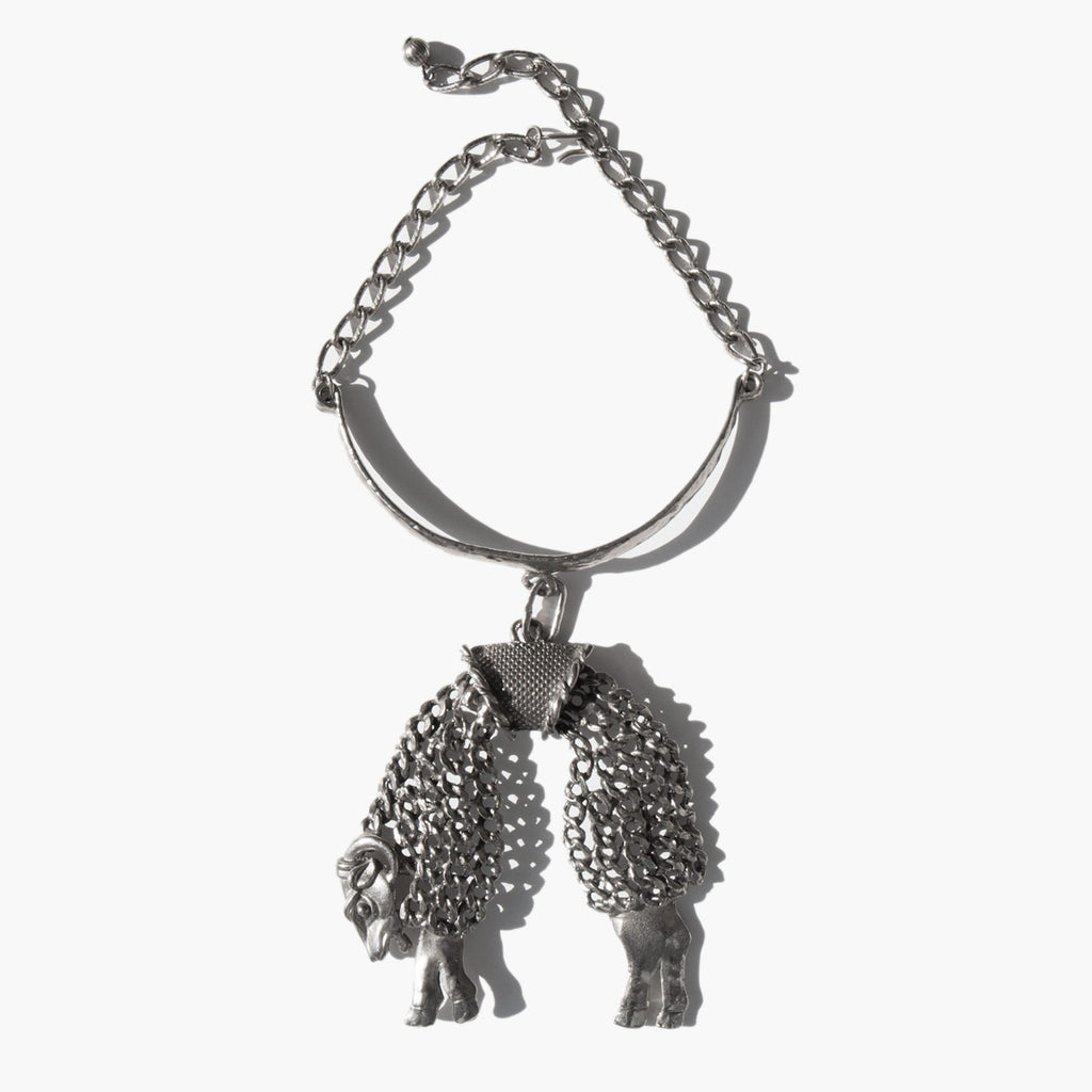 Incredible silver tone statement necklace. The Ram is a classic symbol of leadership, determination, and bold expressions of power.