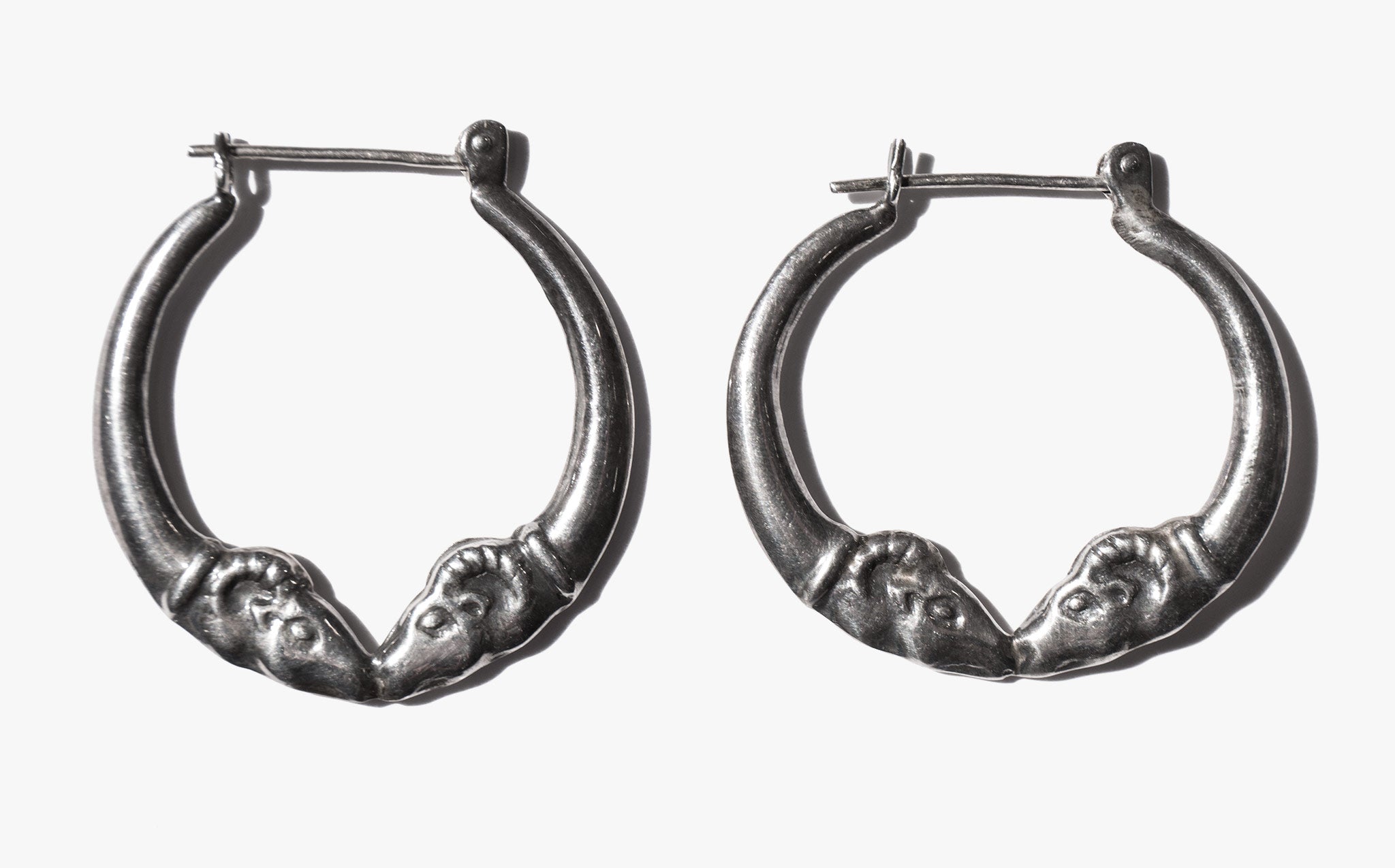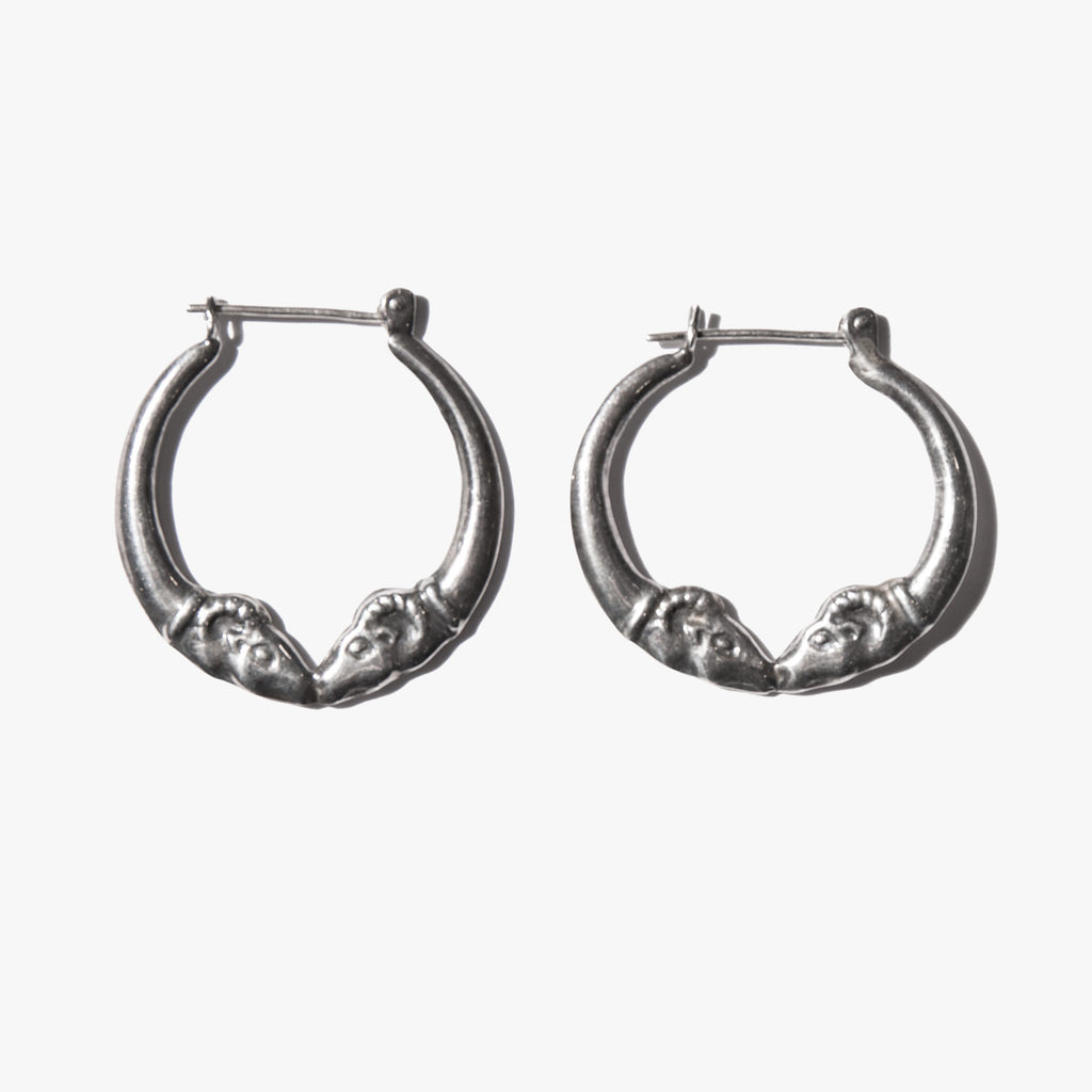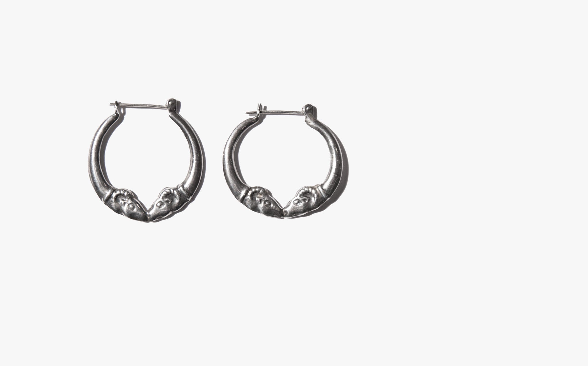 Sterling silver double rams head earrings – symbols of leadership and strength since ancient times.
