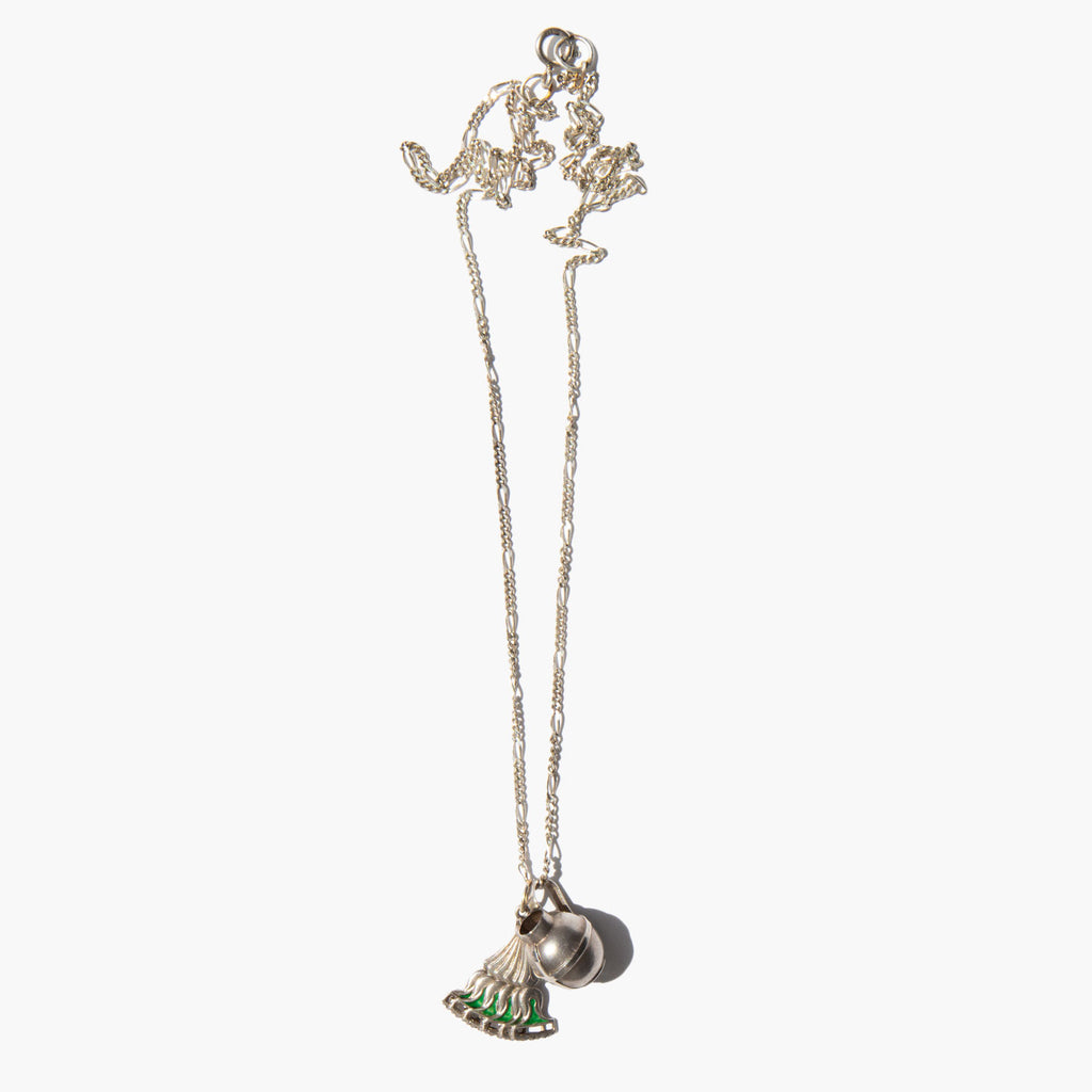 Pretty sterling silver link chain with charms of antiquity – a sterling silver and enamel fan charm and a sterling silver wine jug.