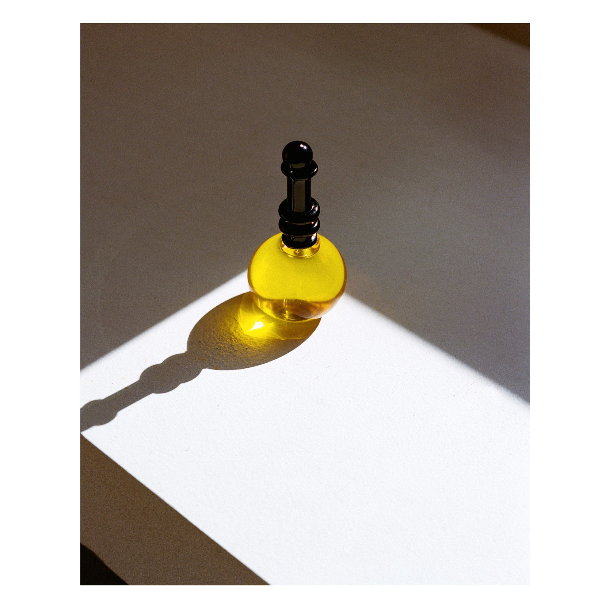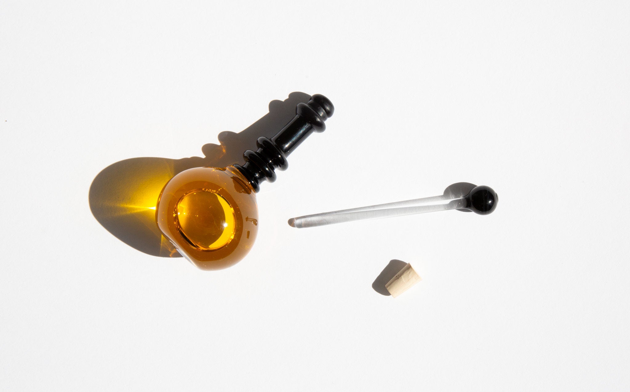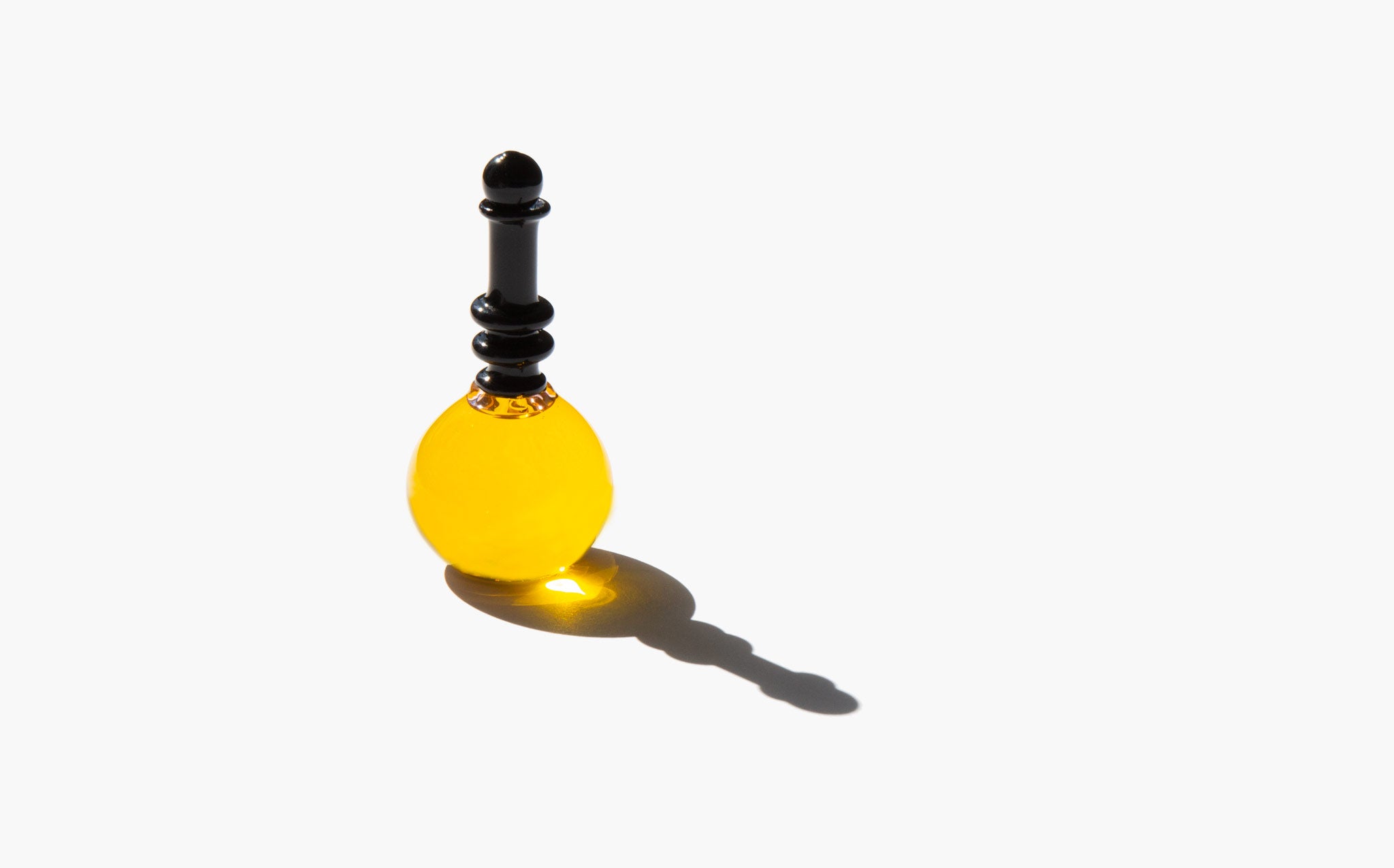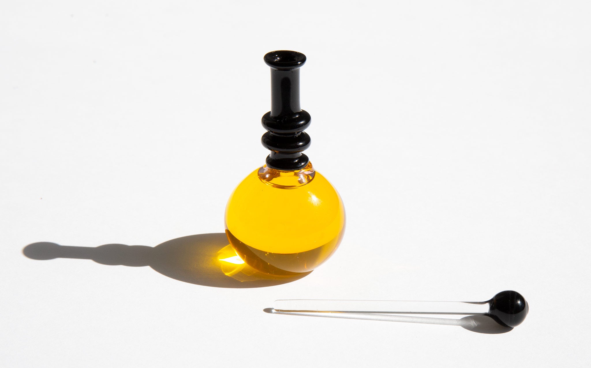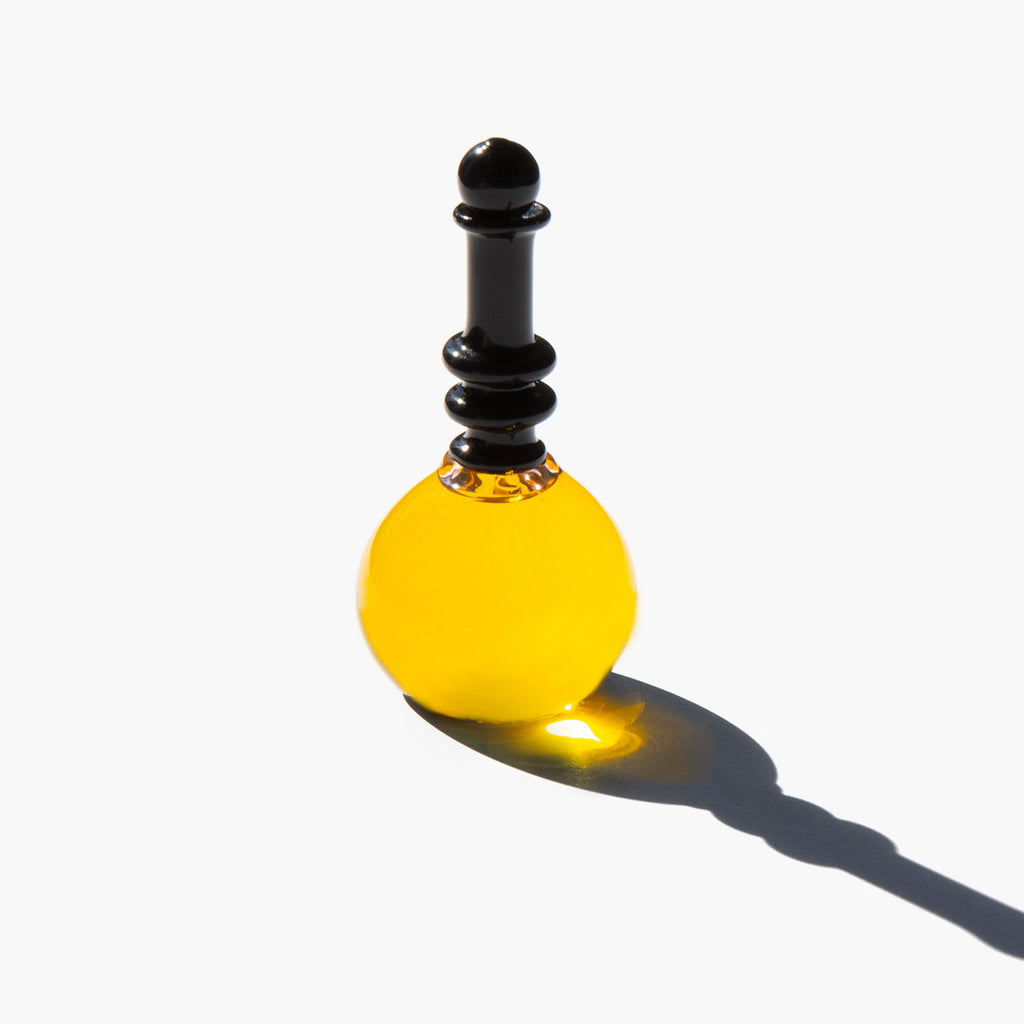 Approximately 30 ml / 1 oz vanity bottle is hand blown in Canada by a master glass artisan and is shipped wax and cork sealed.