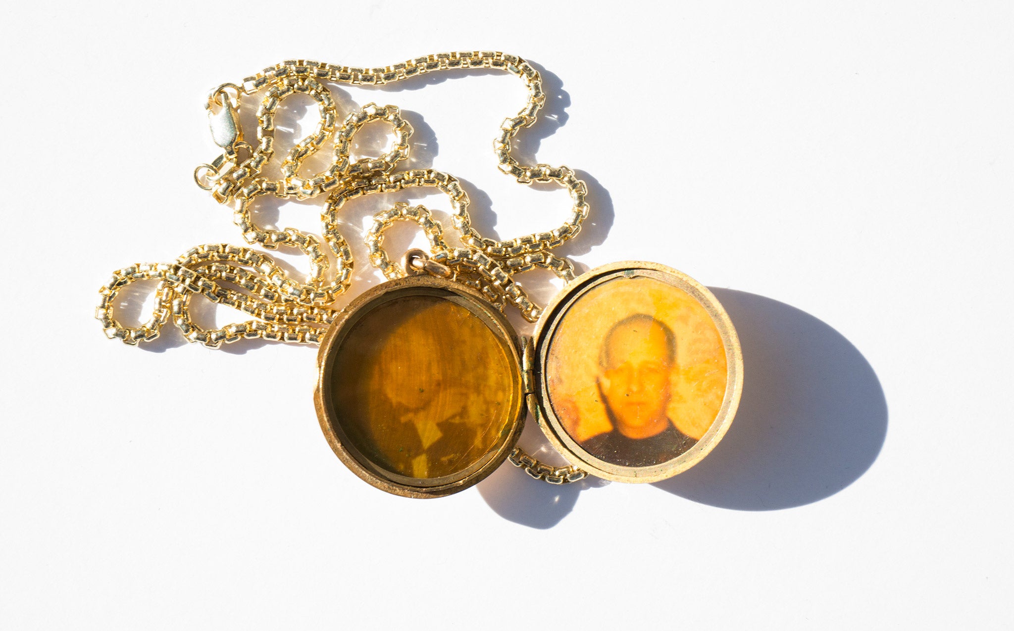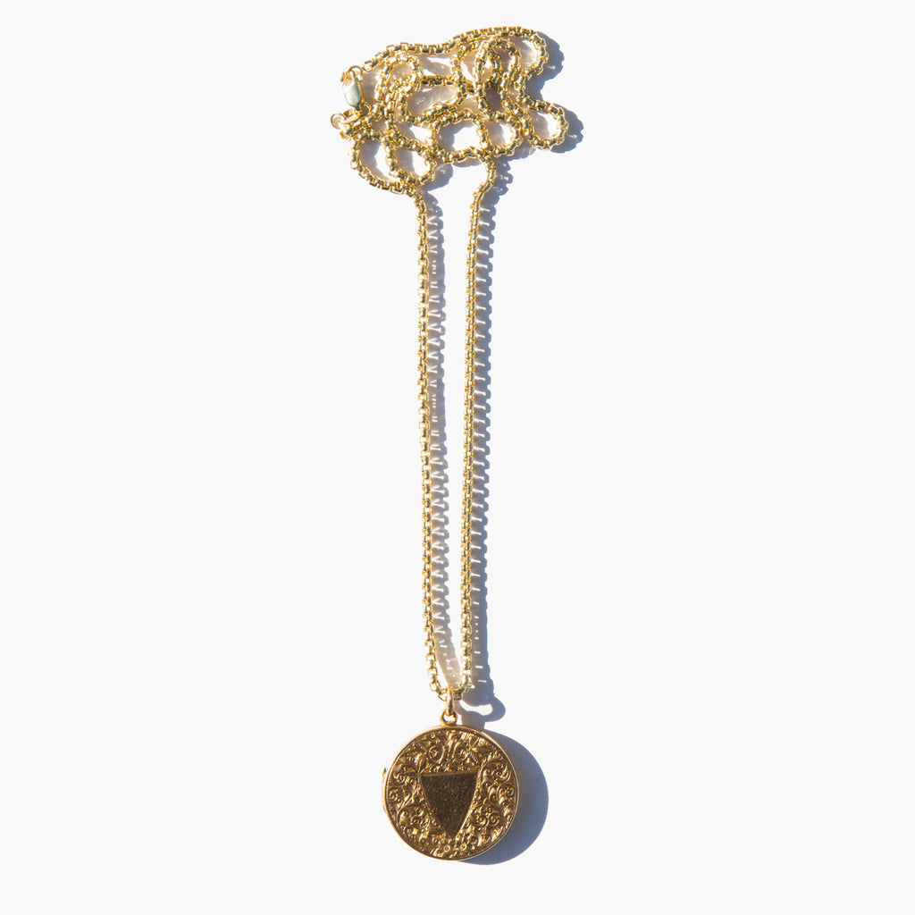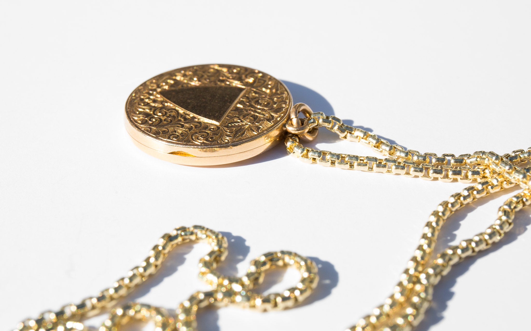 Detailed antique 15k gold locket on an interesting 14k gold round link chain.