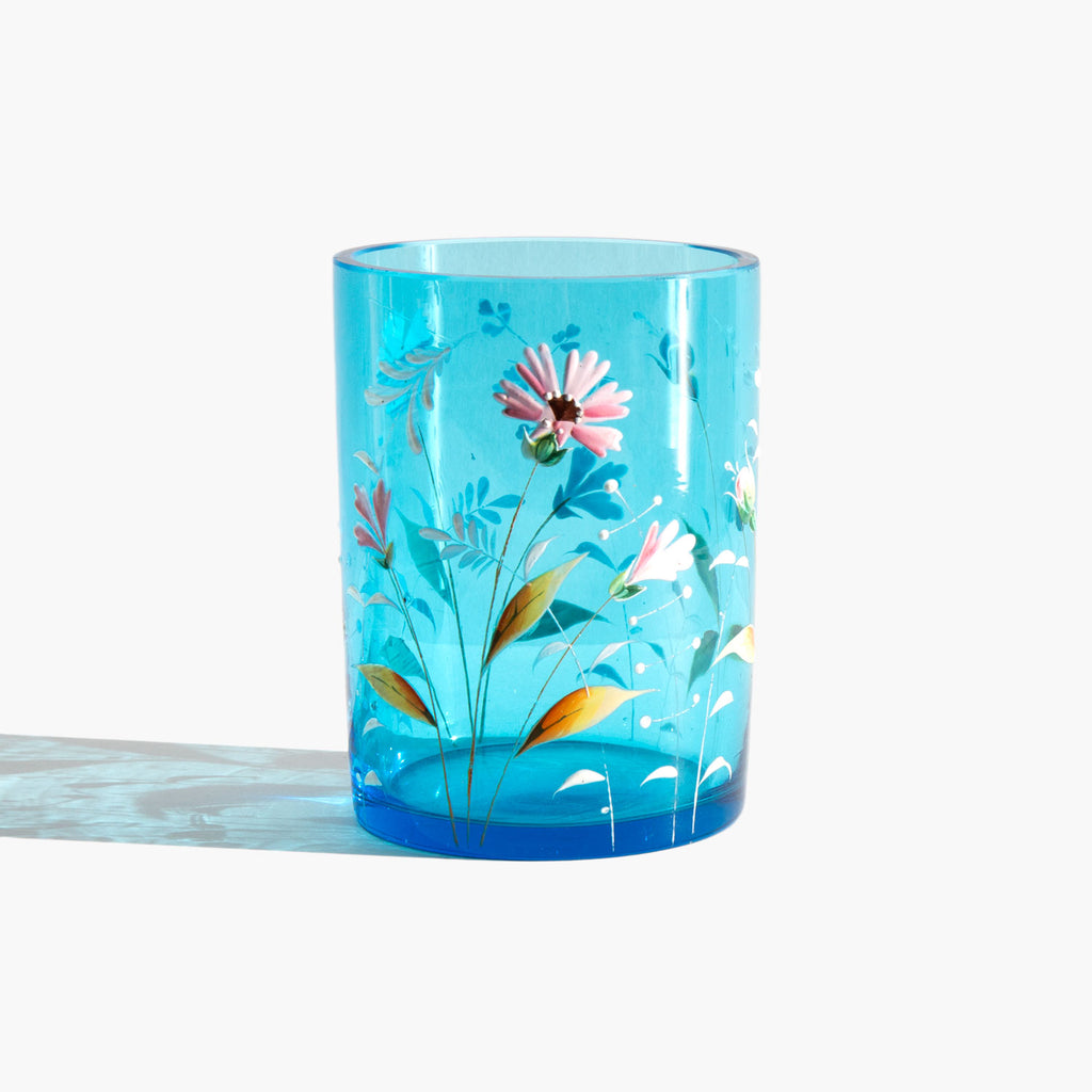 Beautifully hand painted antique 19th century vase or vanity vessel with french enamel on blown glass.