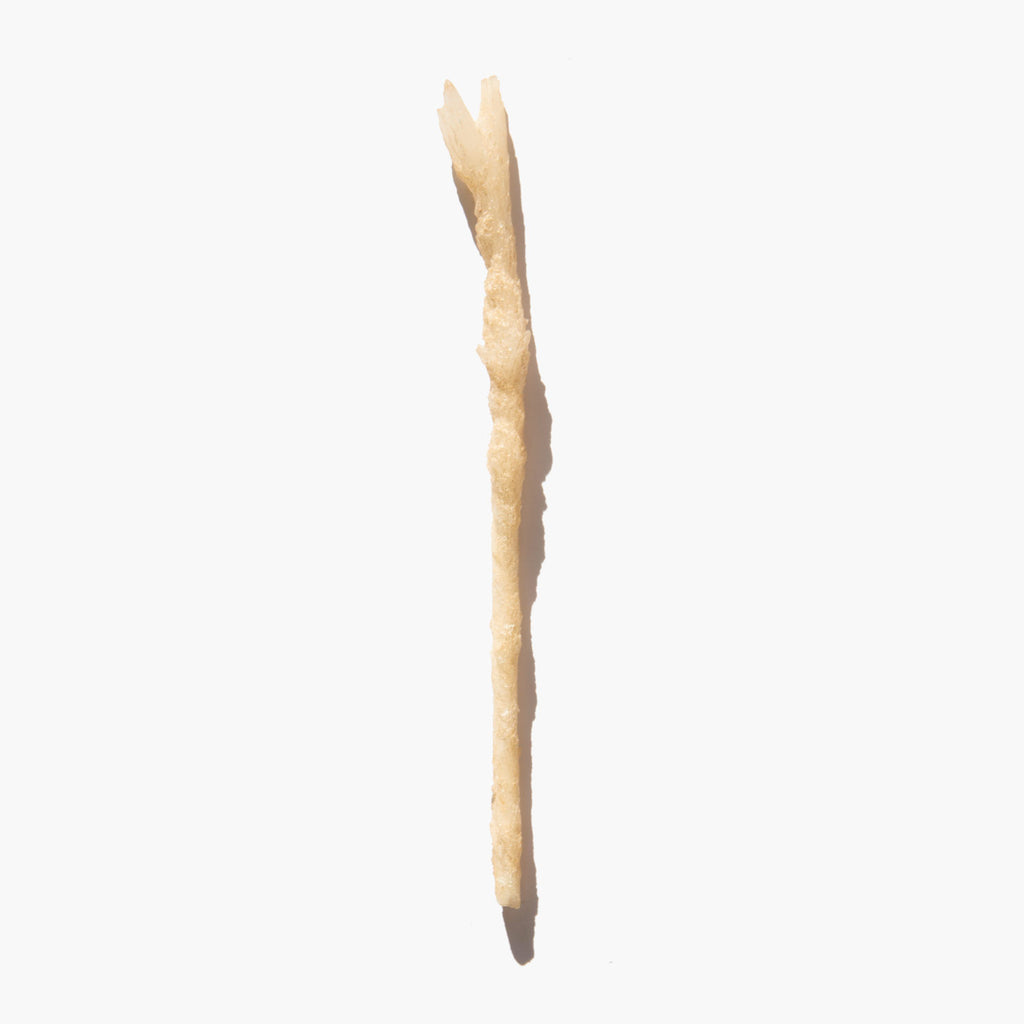Fragile fossilised lightning specimen. When a bolt of lightning hits sand, the extreme heat can melt and fuse the grains together to create a hollow tube of glass.