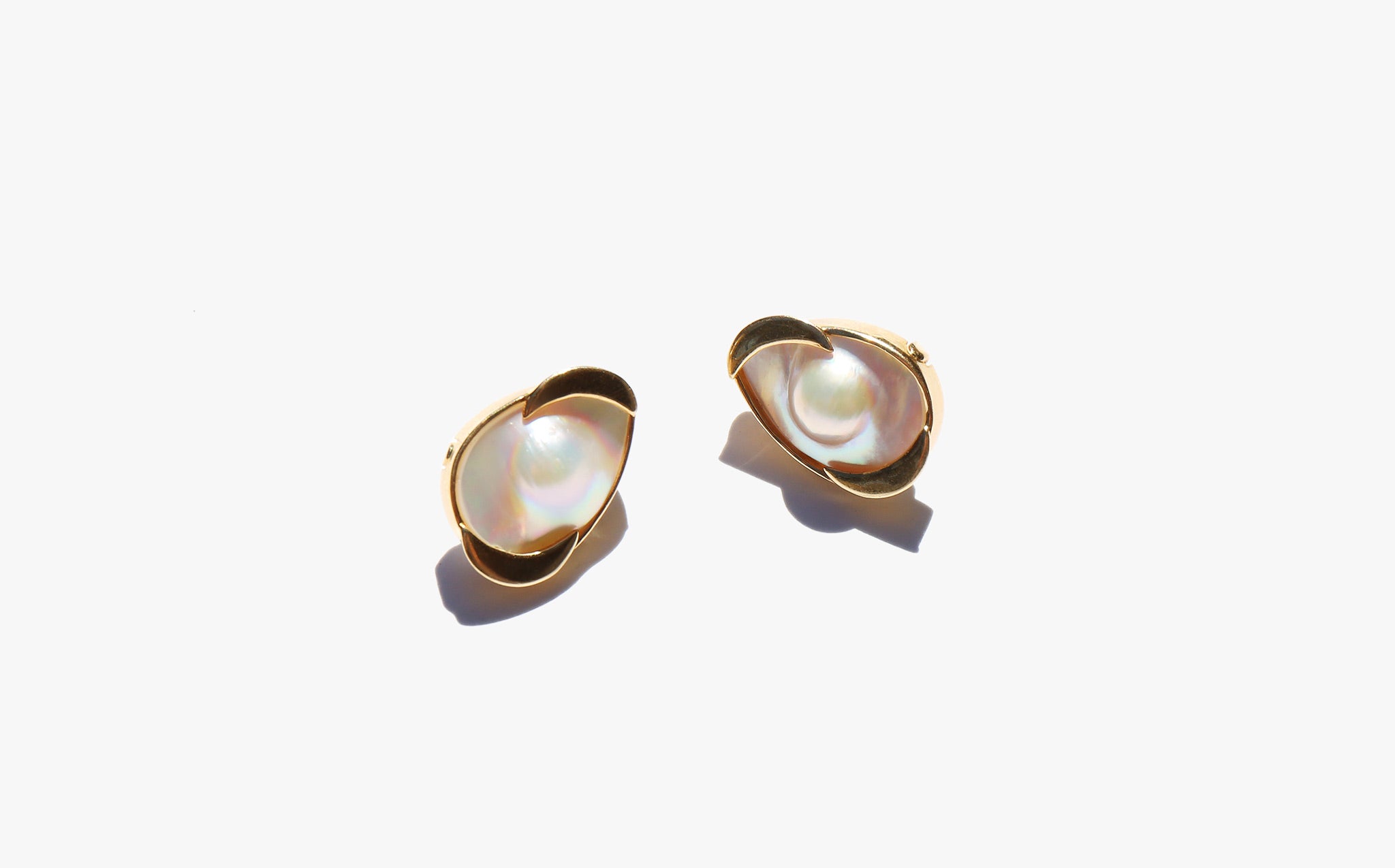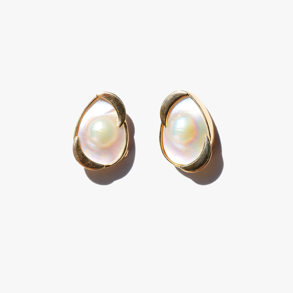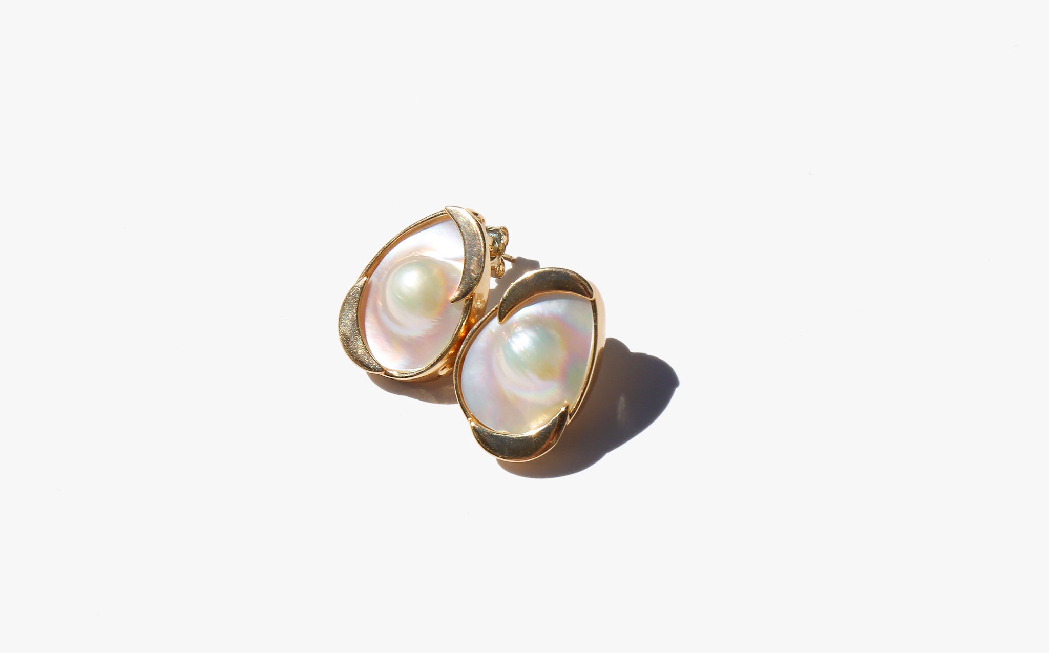 Graceful mabe pearl teardrops encircled in 14K gold.