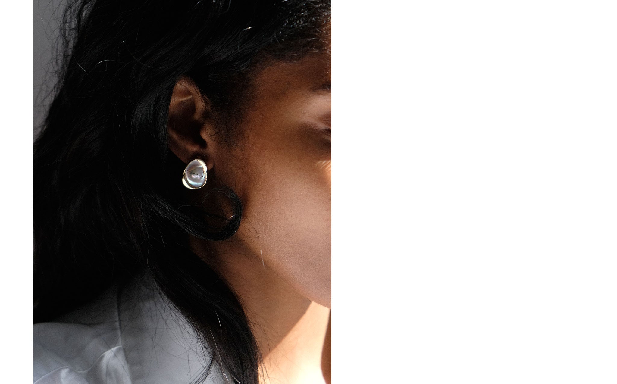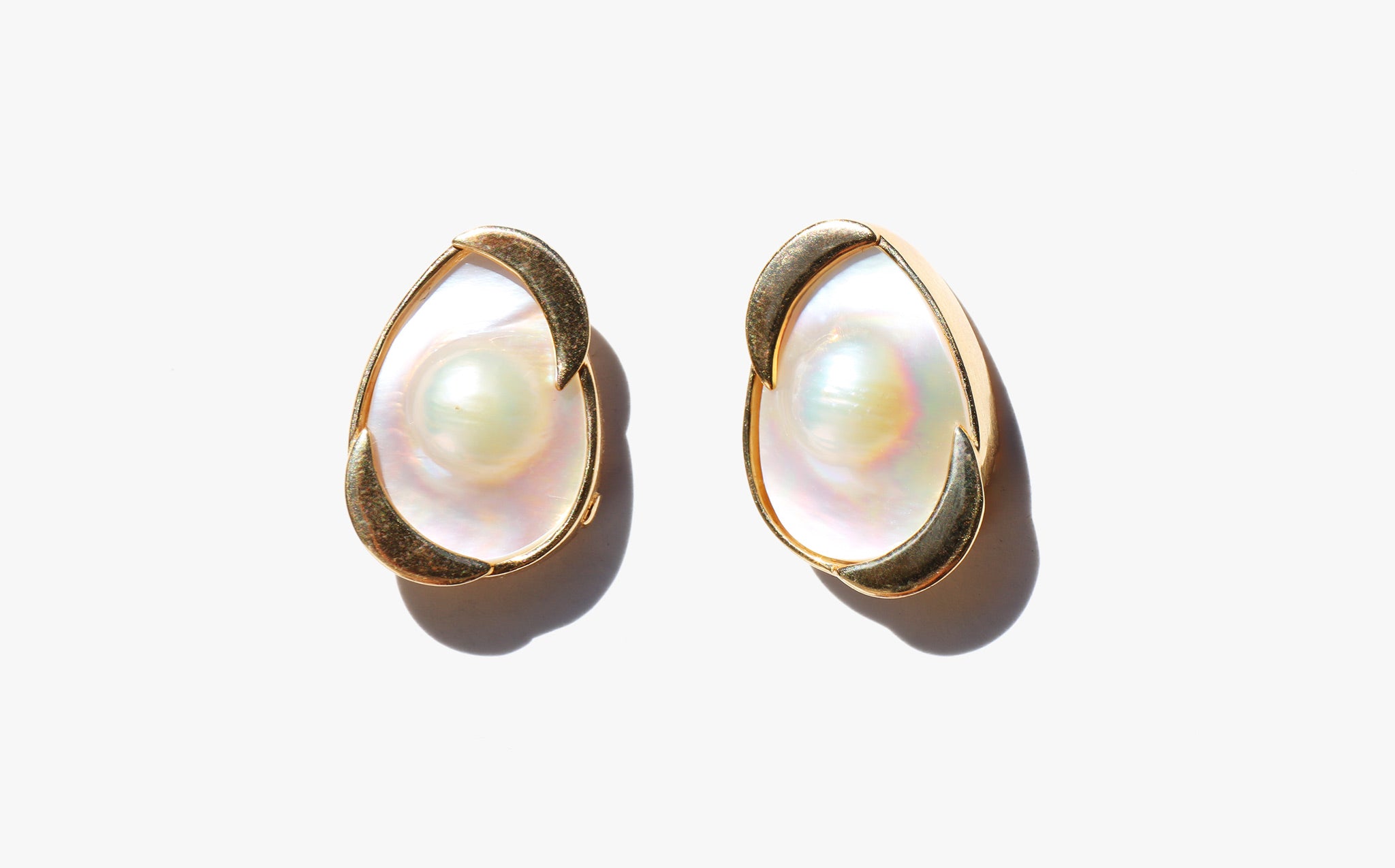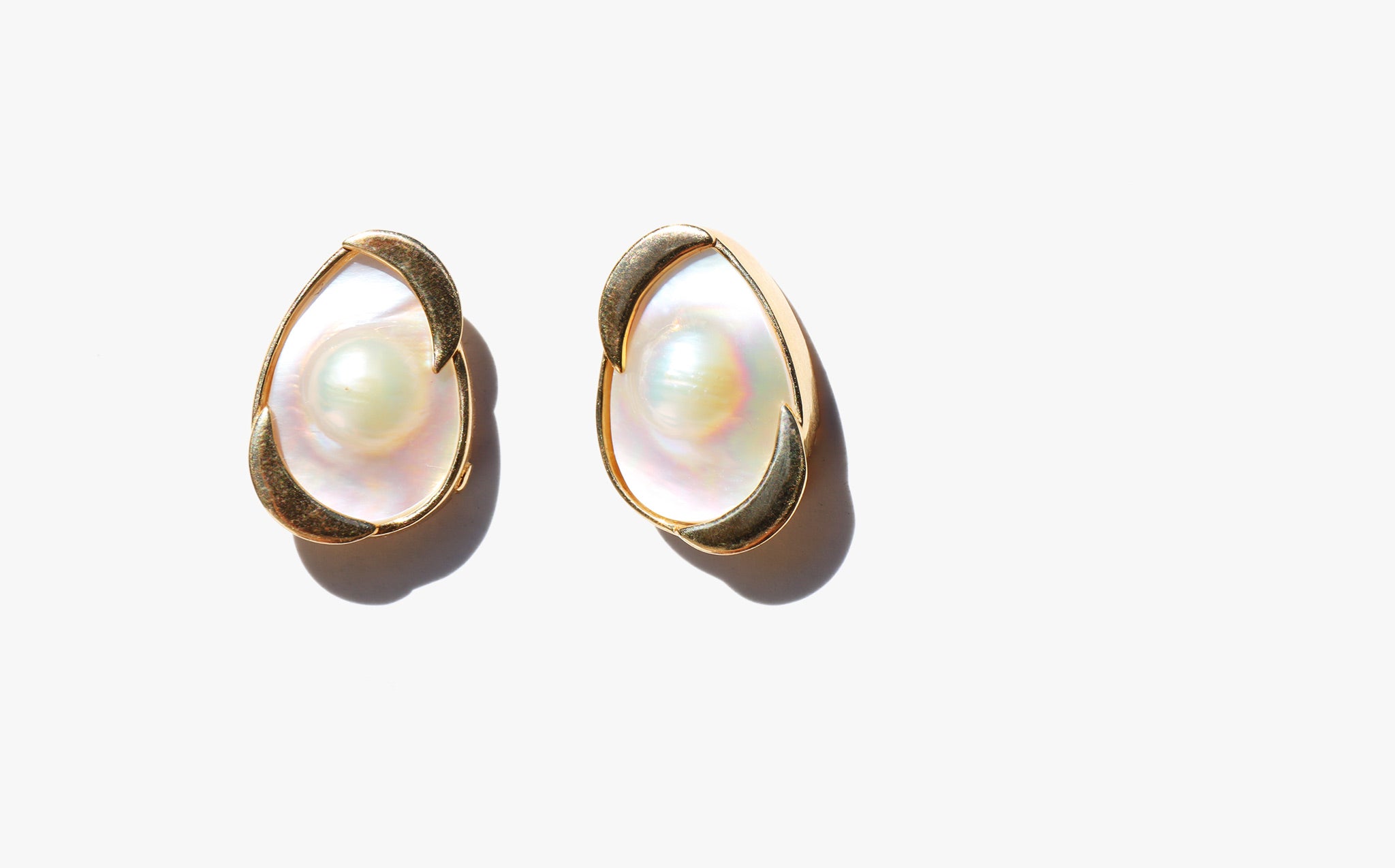 Graceful mabe pearl teardrops encircled in 14K gold.