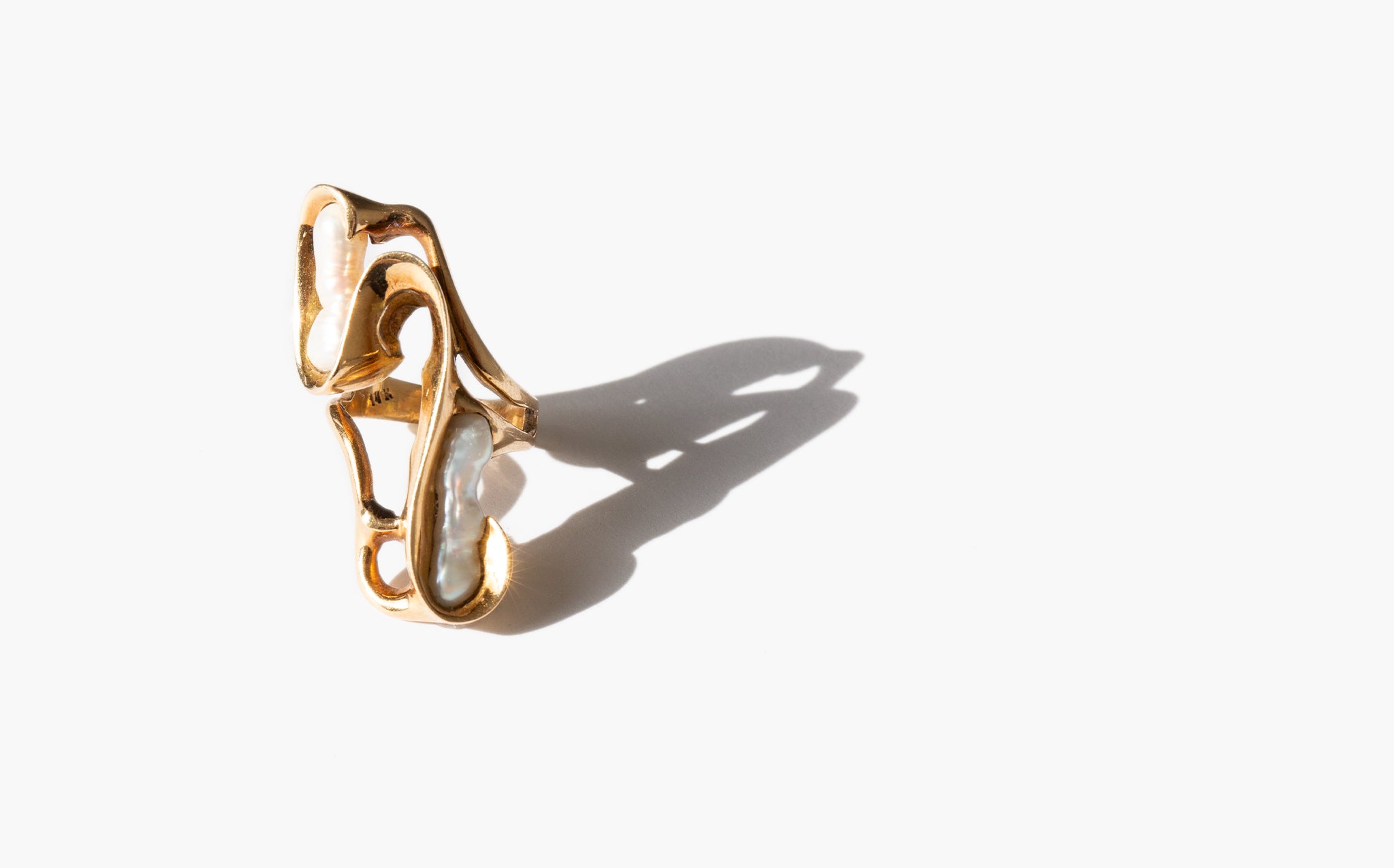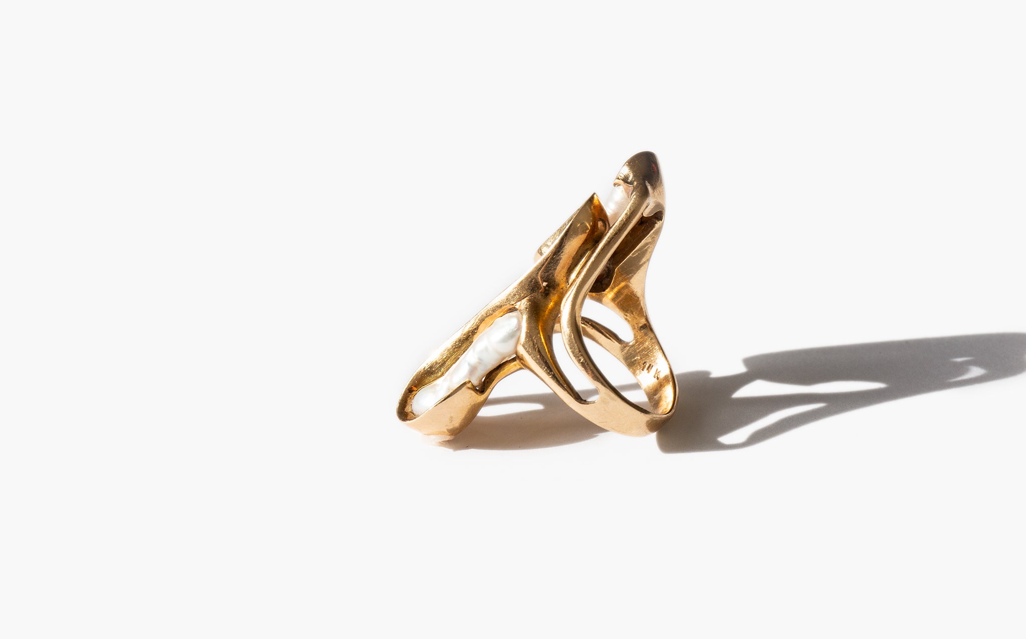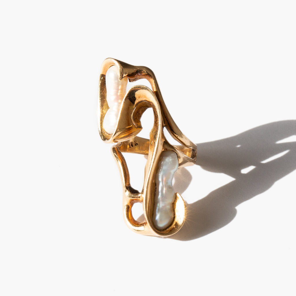 Spectacular and weighty 1970's 14k gold and freshwater pearl ring.
