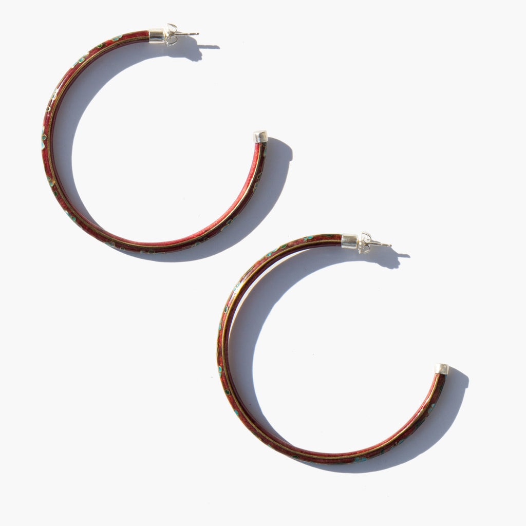 Falize Hoop earrings are handmade using re-purposed cloisonné bangles, and finished with sterling silver tips, posts, and backs.