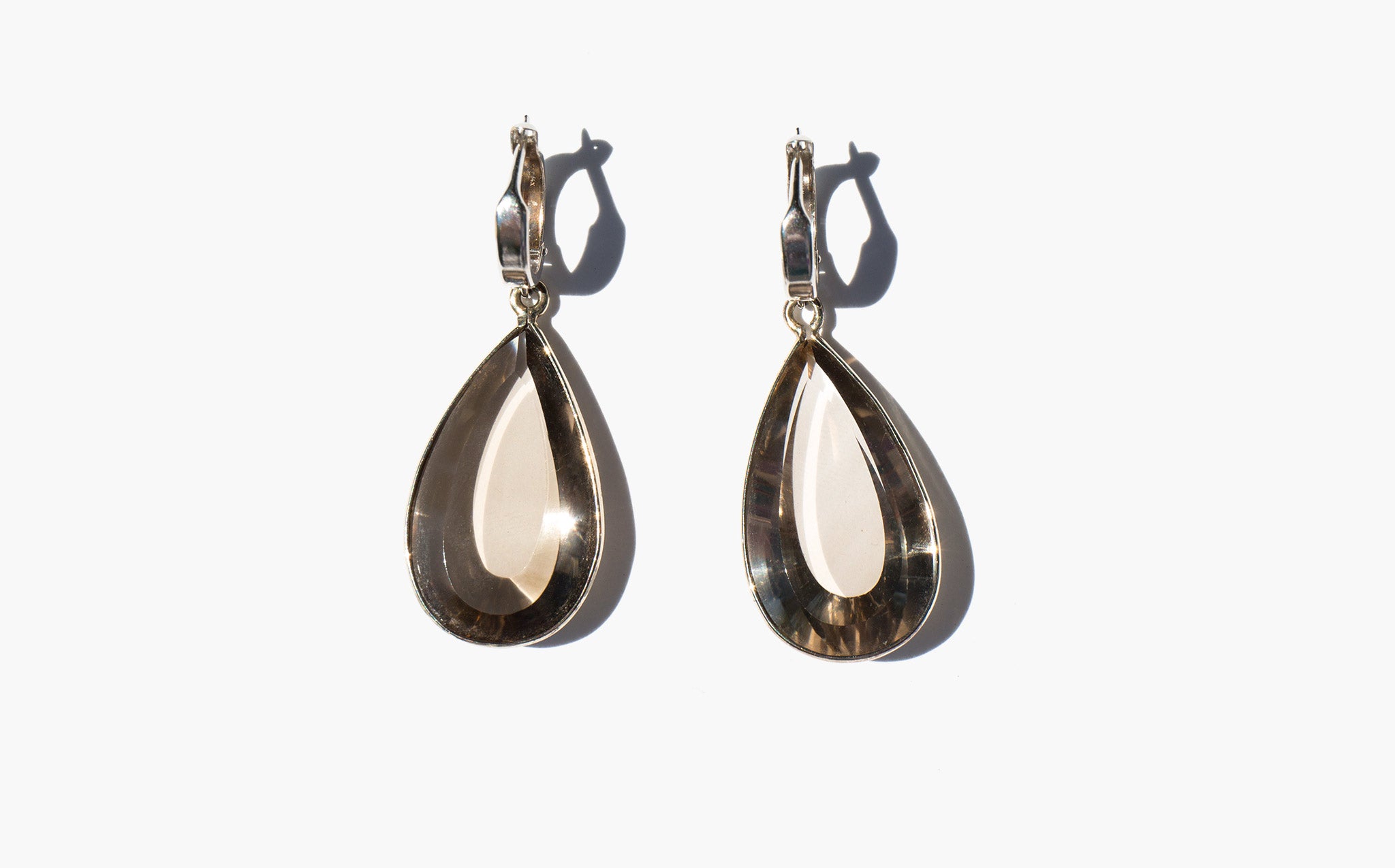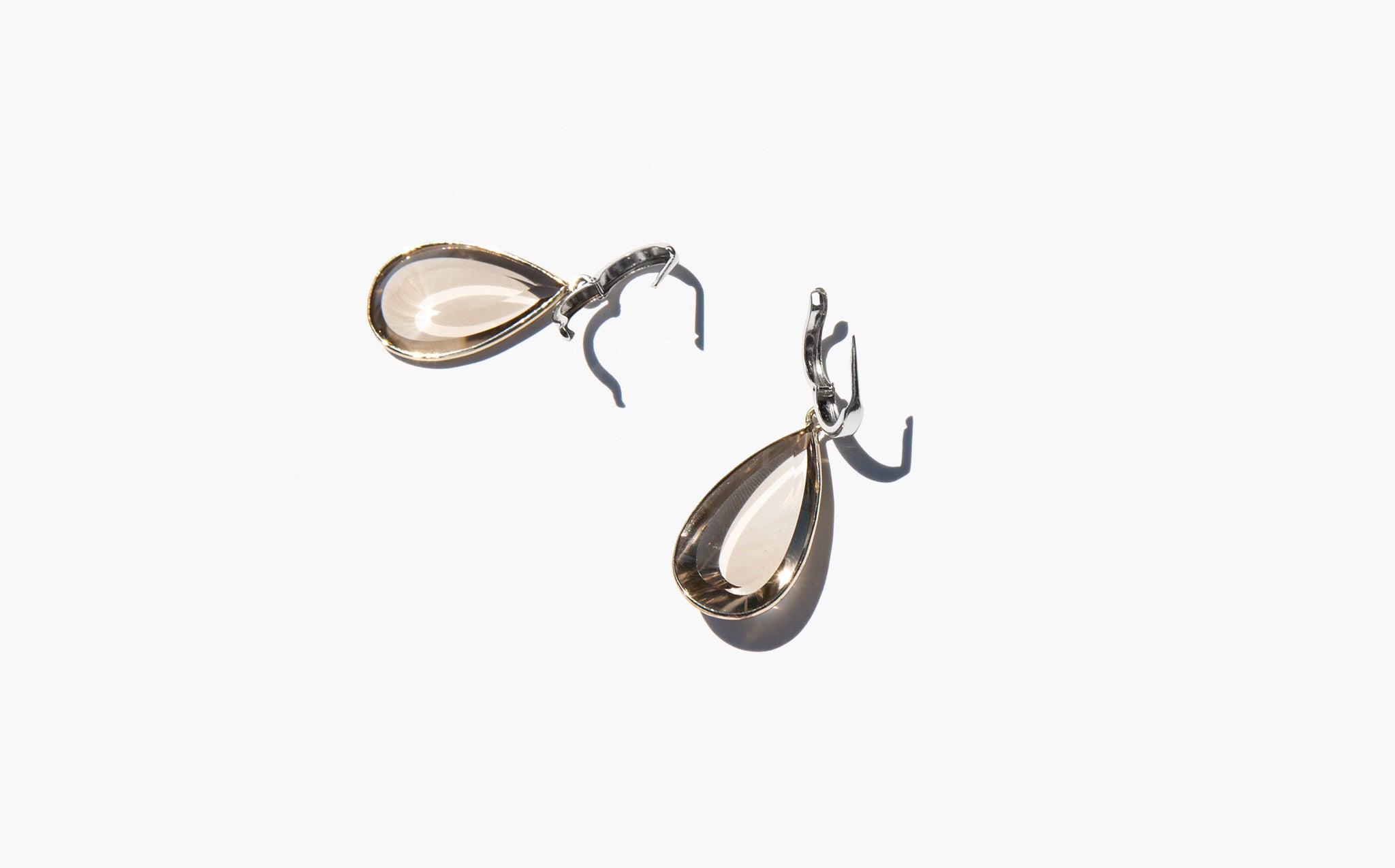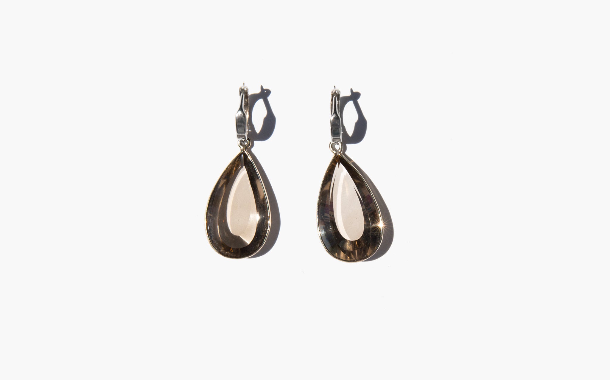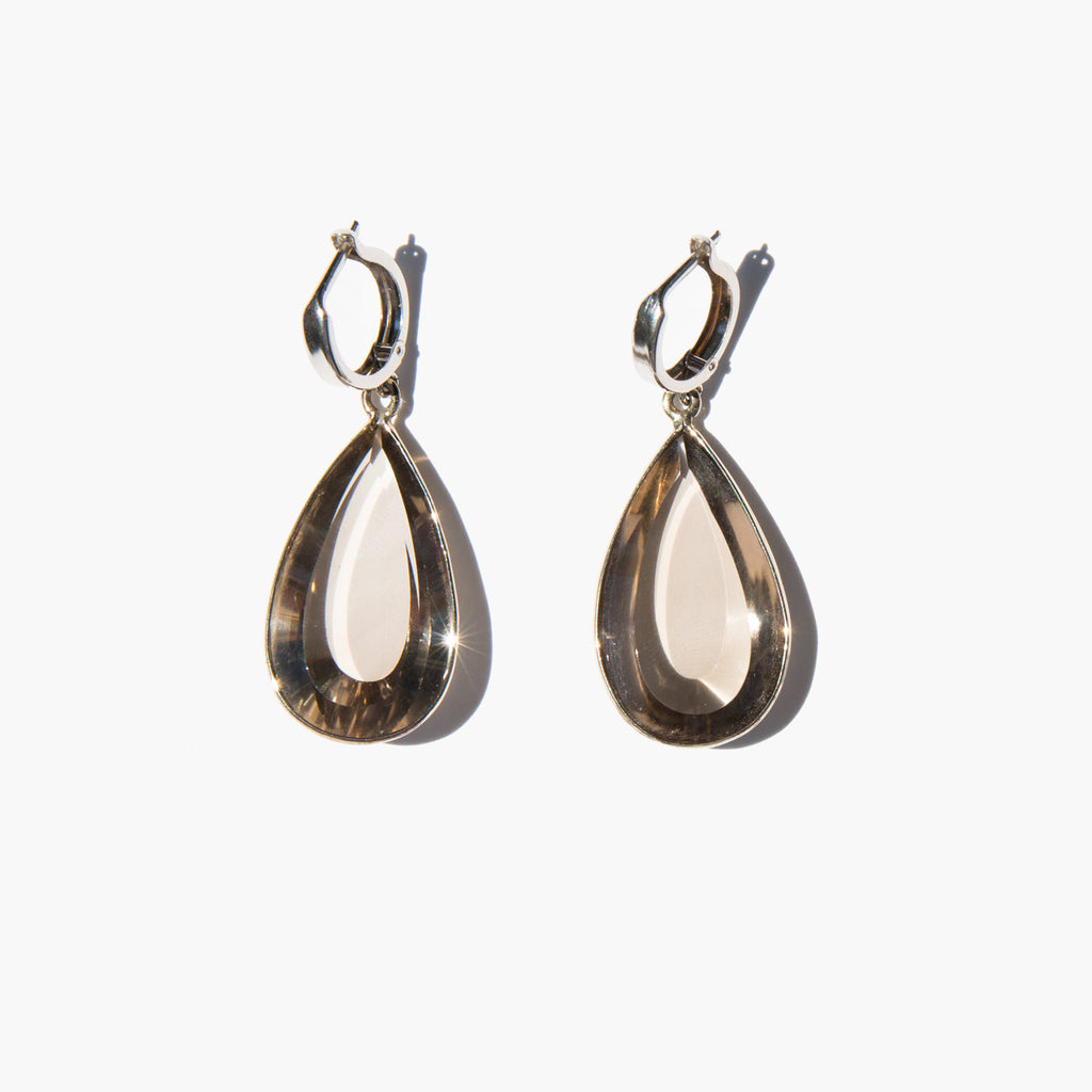 Beautiful, faceted smoky topaz and 14K white gold earrings.